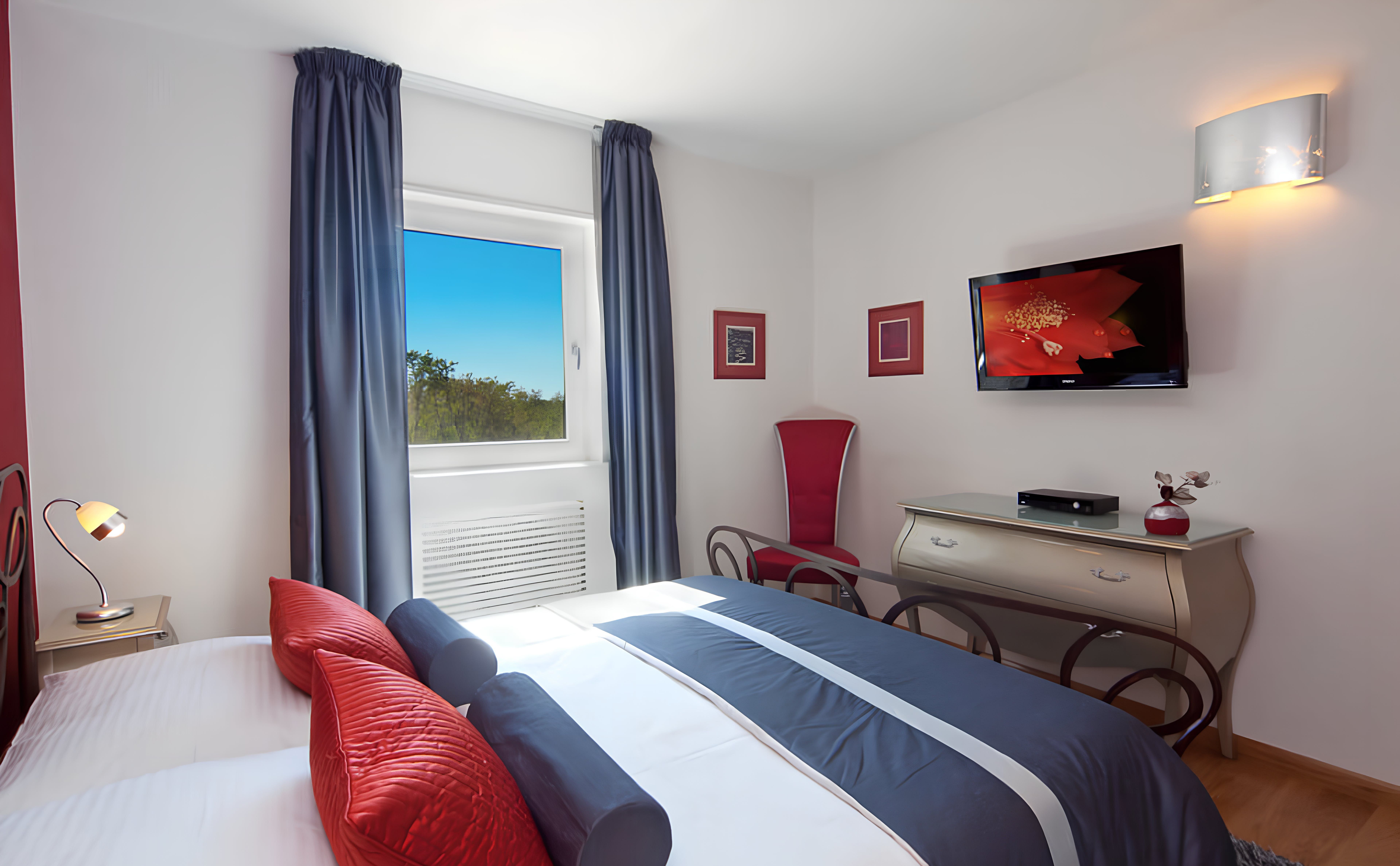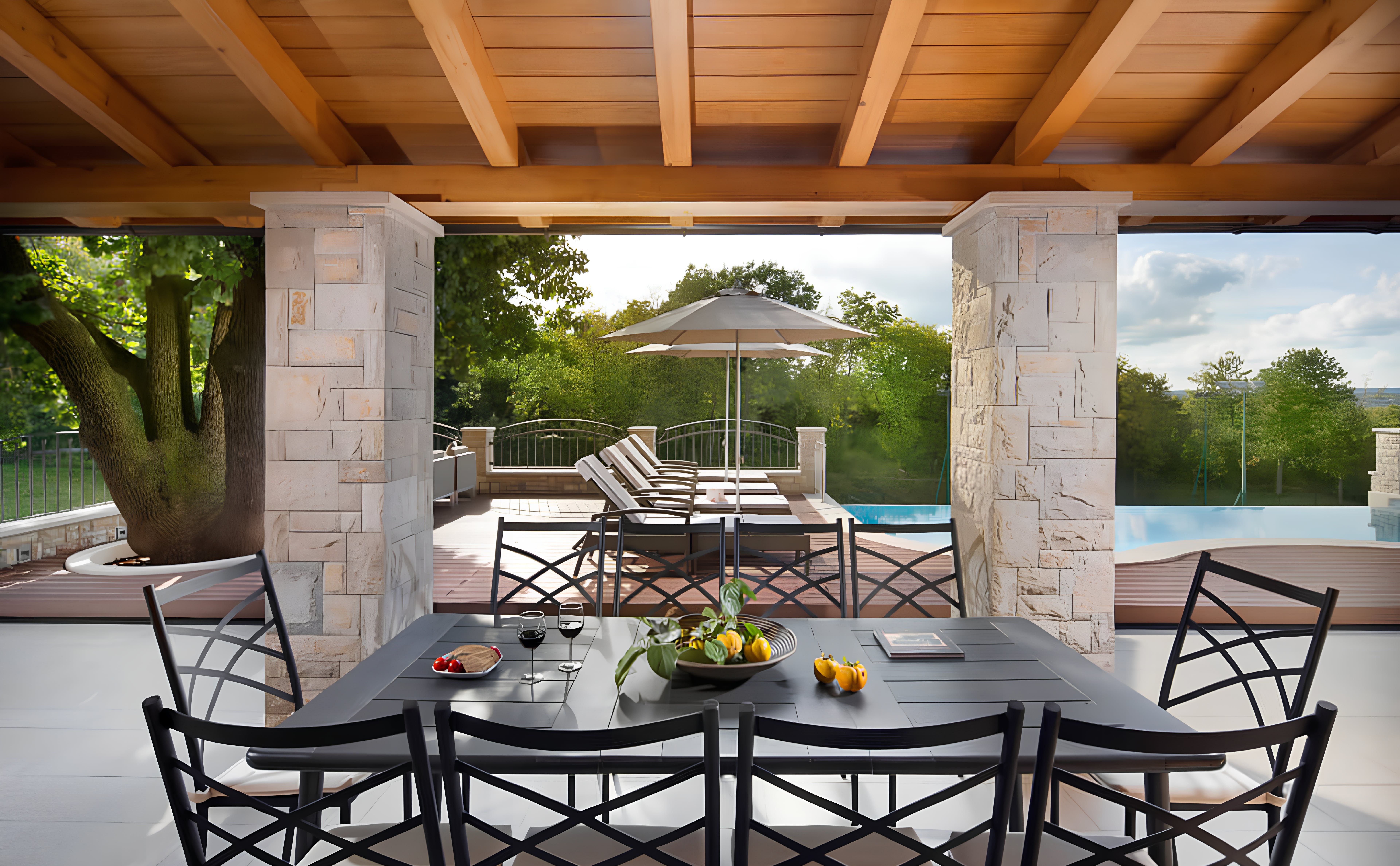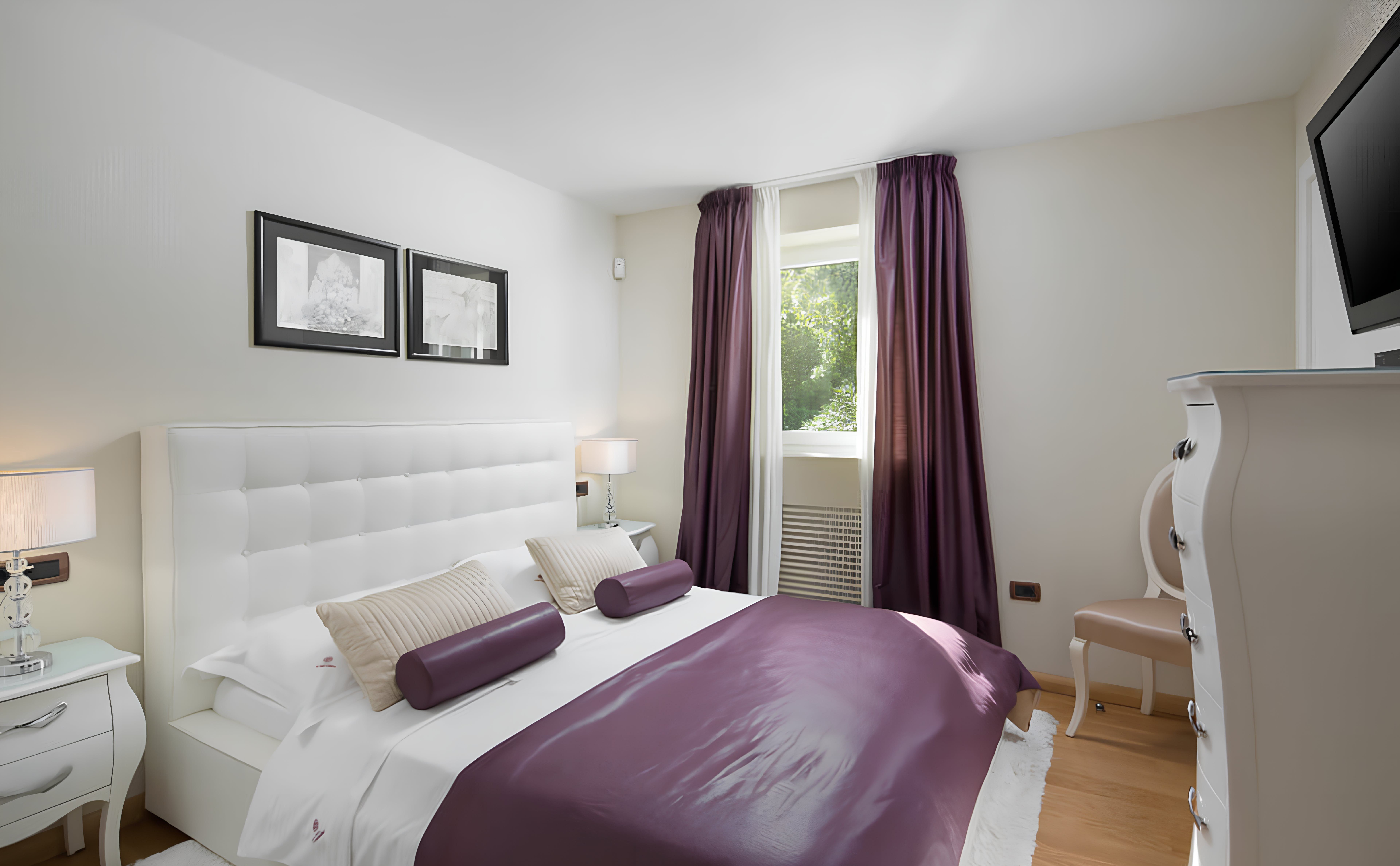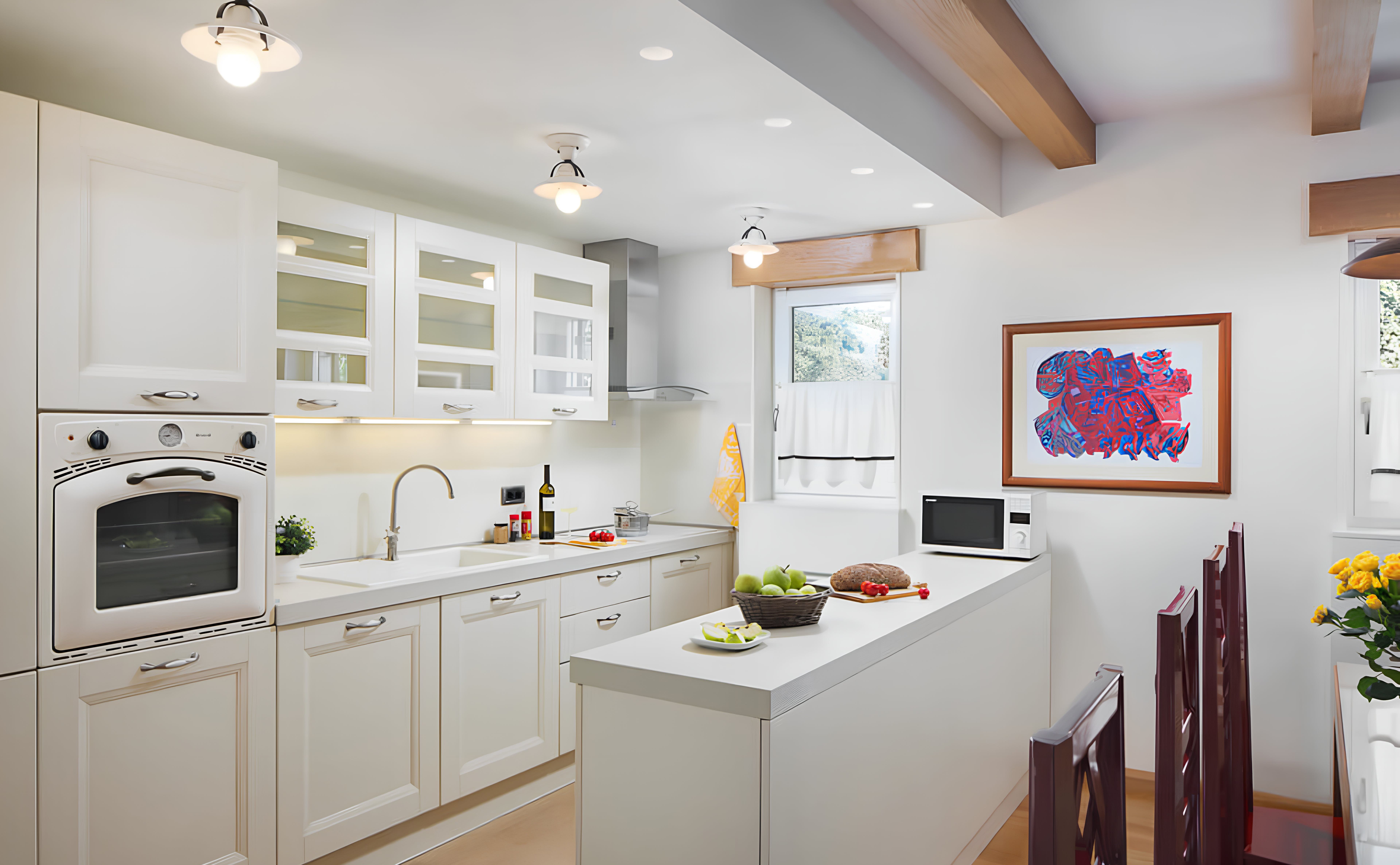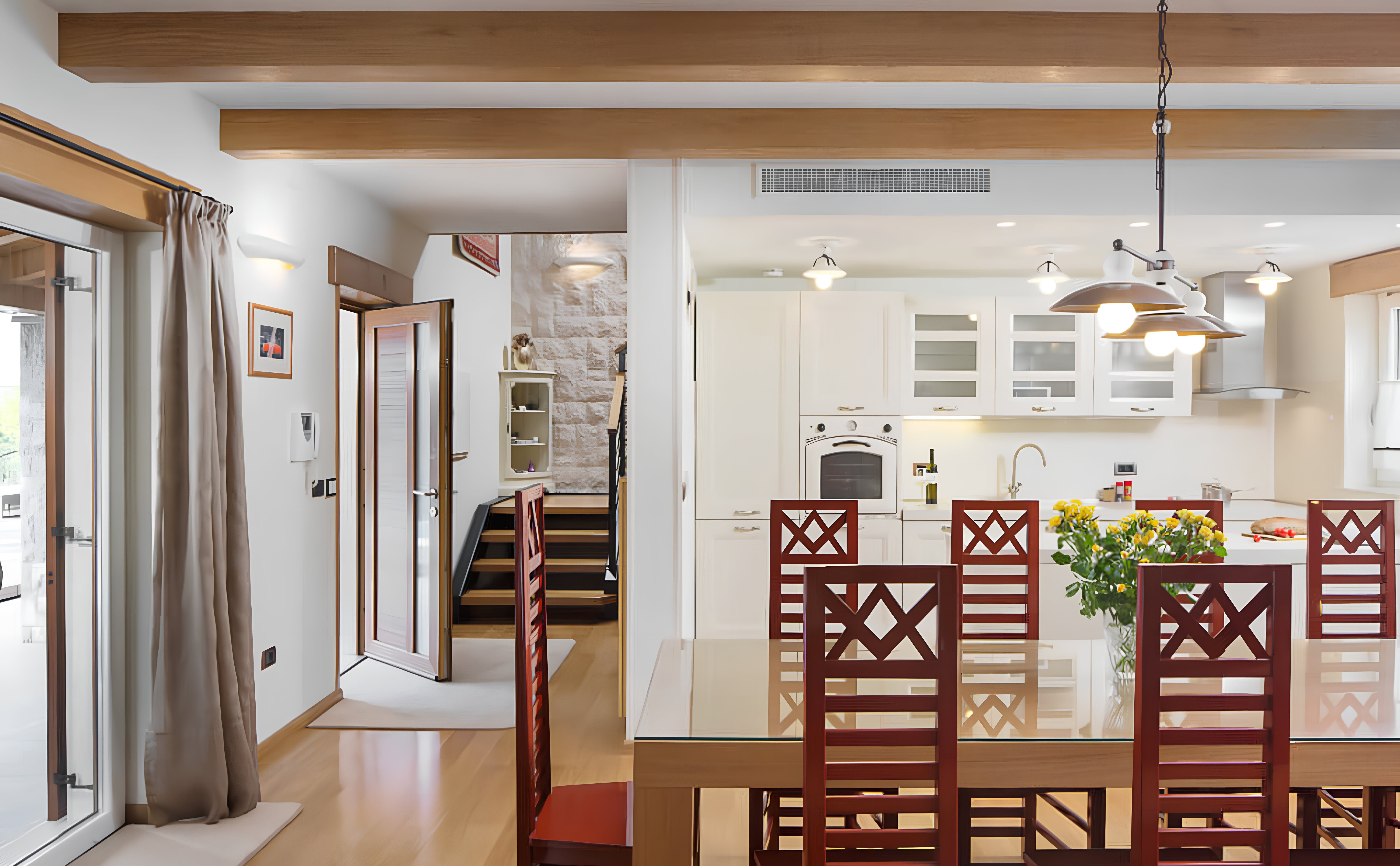 This is a luxurious Istrian estate that seamlessly blends tradition with modernity. The manor house was built in 1921 and renovated in 2011 to create a fabulous vacation home on an insanely beautiful estate that offers every luxury and comfort. The communal living areas are open and cosy with a high standard of furnishings and an open fireplace. The entire interior is decorated in beautiful earthy colors with natural materials like stone, wood, and artifacts from local artists. There is a large eat-in kitchen with a huge dining area and top-equipped appliances. The villa has four bedrooms, each with its own en-suite bathroom, TV, safe, air conditioning, underfloor heating, and balcony or terrace access. The outdoor area has a great shaped pool, private tennis court, small 7-hole practice golf course, covered terrace with outdoor fireplace/grill, and organic kitchen garden. The friendly owner lives next door and will be happy to give you advice and tips for excursions in the area or a fresh fruit plate of the fruits grown here. Labin is less than 1 km away while Rabac offers a wide range of gastronomy, sports, and entertainment.