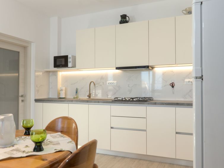 The apartment offered a lot of space, the kitchen was very well equipped, the balcony was very large with a beautiful sea view, the sea was within easy walking distance and we could swim well, the landlord is very friendly and helpful, we had a good rest, had many wonderful moments and would love to come back!