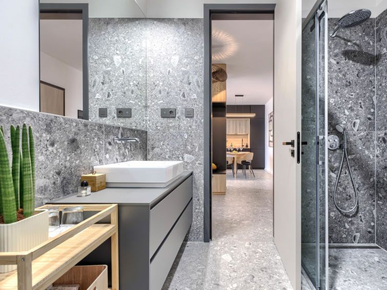 "Brnistra", 4-room apartment 65 m2 on 4th floor. Living/dining room with satellite TV (flat screen). Exit to the balcony. 1 room with 1 french bed (160 cm, length 200 cm). 1 room with 1 bed (120 cm, length 200 cm), 1 pull-out bed (length 190 cm). Open kitchen (oven, dishwasher, 4 induction hot plates, toaster, kettle, freezer, electric coffee machine).