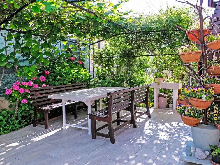 We were five adults and two children. Enough space for everyone. Very satisfied. Some of the furniture has been replaced. Excellent quality. Clean. We used the upstairs terrace with its pool and spacious sofa every evening. The beach was just a short walk away. Very nice landlords. We had a great week. Worth more than 3 stars. We'd love to come back.
