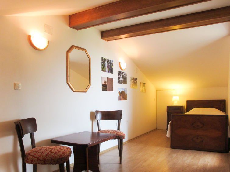 Ema house is a spacey, very nicely and practically furnished, you can find there anything you need from dishwasher, hairdryer, air-condition on both floors to big airer with pegs. There’s a big dressing room, which is better than wardrobes, you unpack everything in one place. Two large terraces are equiped with tables and chairs and shady bloomy garden is full of trees, which is fine for kids, as they can kick the ball, or swing on a seesaw. The best holiday house we’ve been to.