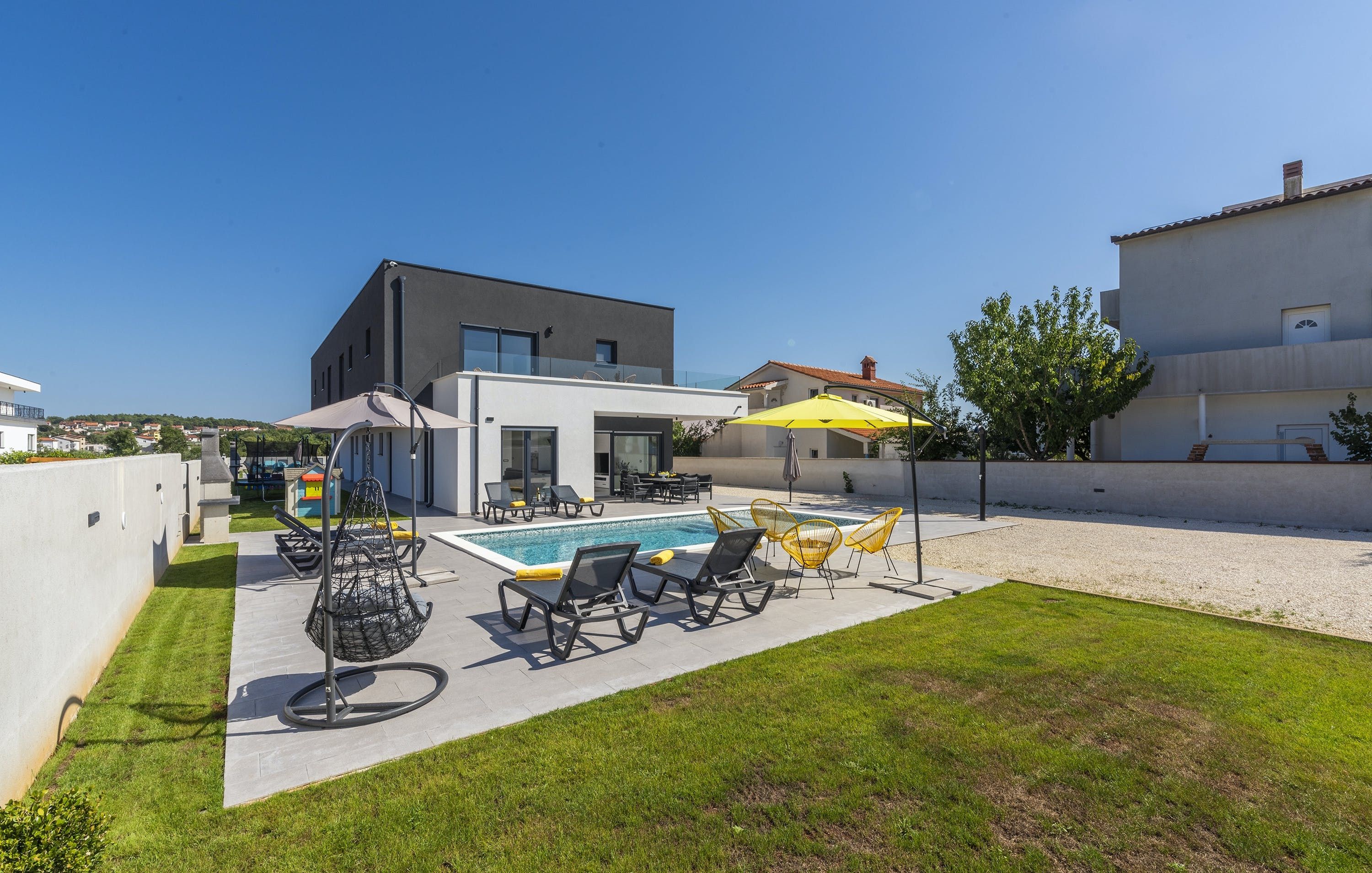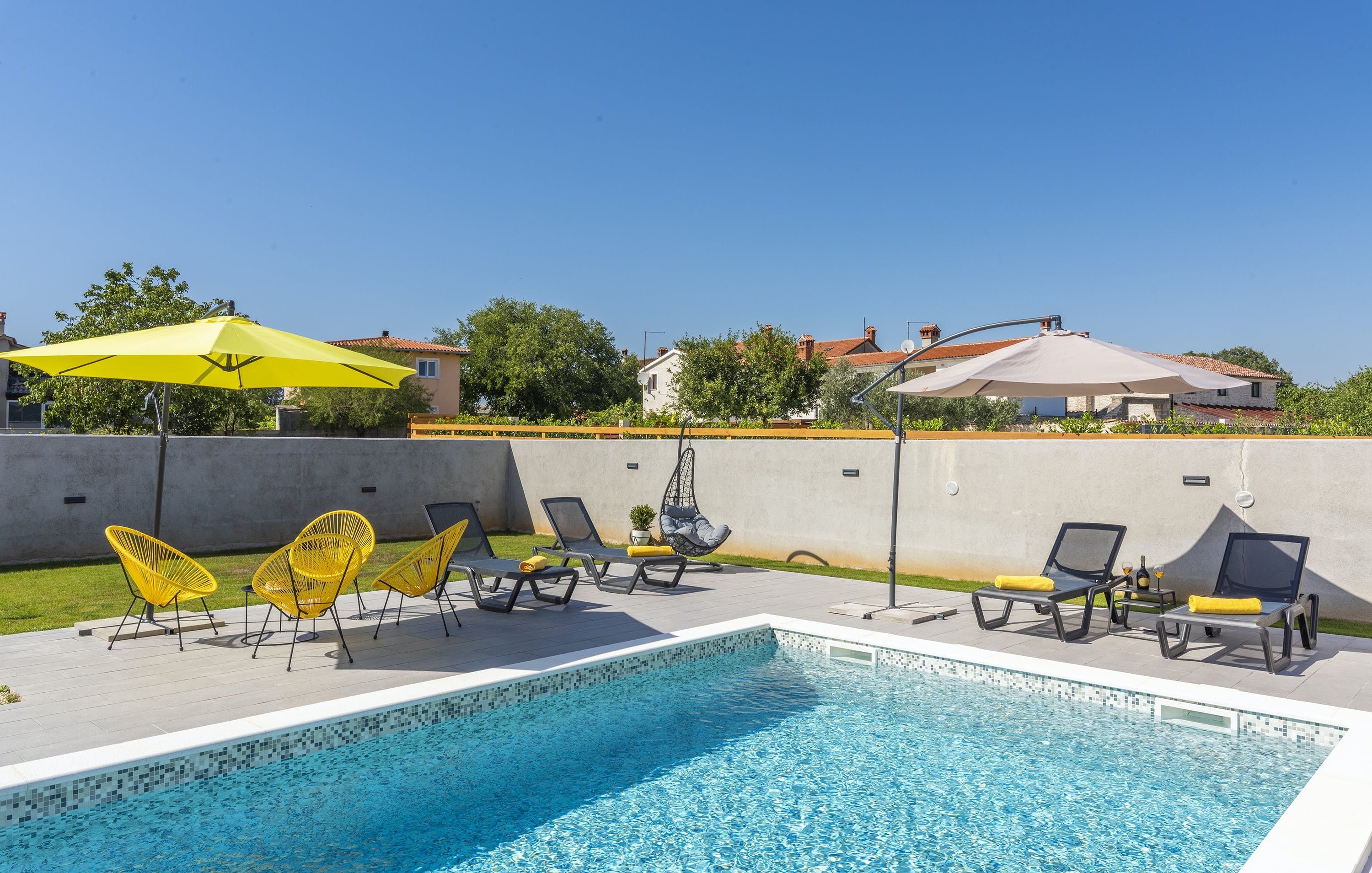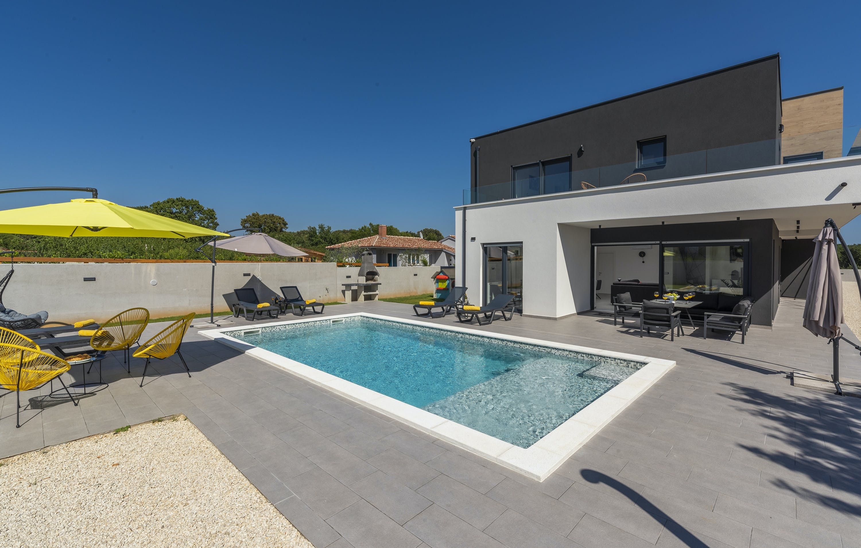 This modern villa is located in a quiet suburb of the popular city of Pula in Istria. The villa has a private pool, a terrace with a lounge area and a barbecue, and four bedrooms. The villa is perfect for a family or group of friends looking for a relaxing holiday in Istria.