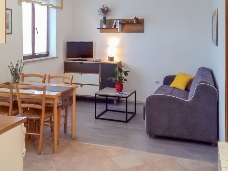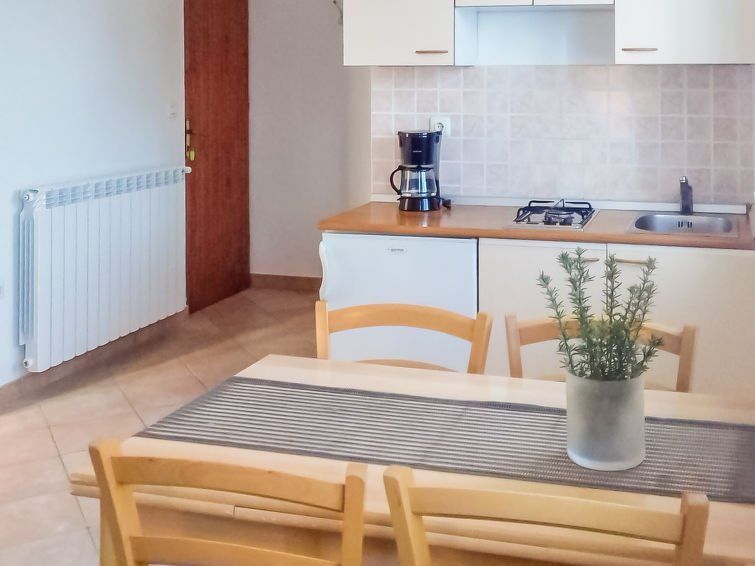 The apartment has two bedrooms, a kitchen and a small bathroom with a shower. The furnishings and the equipment of the apartment are old and worn. Clean is different and the terrace is behind the house. One searches in vain for attention to detail. The only positive thing is the nice, but also outdated pool area.