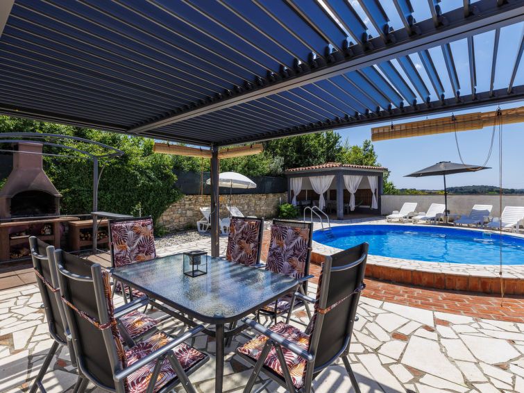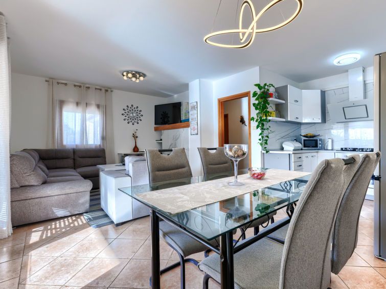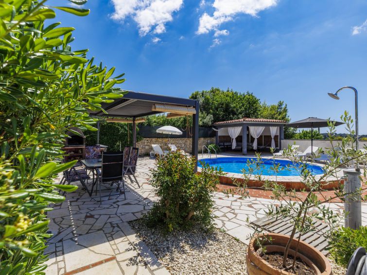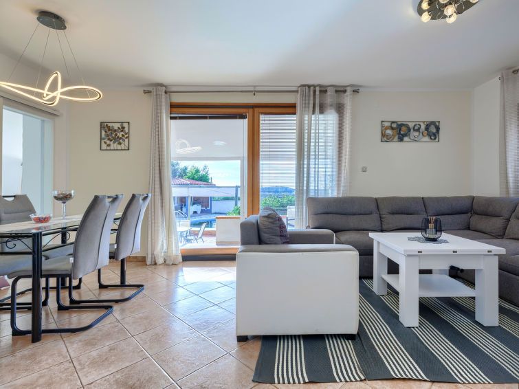 4-room house 140 m2, on the ground floor. Living/dining room with satellite TV (flat screen), air conditioning. Exit to the terrace, to the swimming pool. 1 room with 2 beds (80 cm, length 200 cm). 1 room with 1 double bed (2 x 80 cm, length 200 cm), satellite TV (flat screen). 1 room with 1 french bed (180 cm, length 200 cm), shower/WC and satellite TV (flat screen), air conditioning.