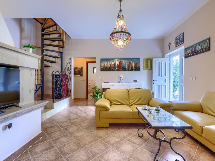 5-room villa 150 m2 on 2 levels, west facing position. Beautiful furnishings: living/dining room 65 m2 with open-hearth fireplace, satellite TV, DVD and air conditioning. Exit to the terrace. 1 room with 1 double bed (160 cm, length 200 cm). 1 room with 1 french bed (2 x 90 cm, length 200 cm).