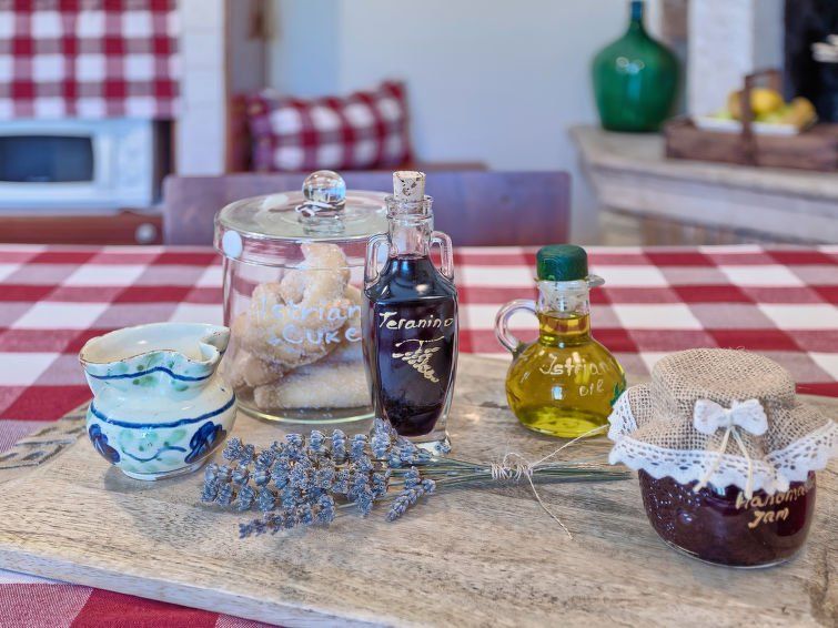 Lovingly furnished apartment in which nothing is missing. XXX really takes care of everything. Thank you for the delicious olive oil, the homemade jam, the fruit and the scent of lavender in the apartment. We especially liked the shady seating area right in front of the apartment with a wonderful view of the garden. And the short way to go swimming in the morning directly at the youth hostel. Otherwise, the bathing area directly at Hotel Park XXX is recommended and eating at XXX.