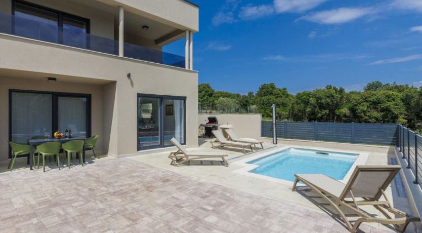 Beautiful, new villa in a good location (with car). Great pool and grill available. The rooms and bathrooms are spacious and S. is a nice host. Only the beds were a bit uncomfortable (some too hard, some a bit soft), which is of course subjective. The sea is about 10 minutes' walk away and there are some shops a short drive away. We would book again.