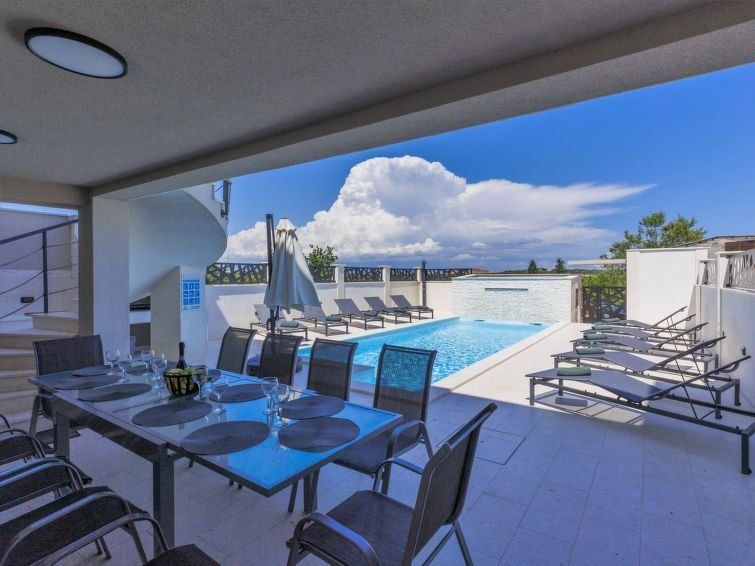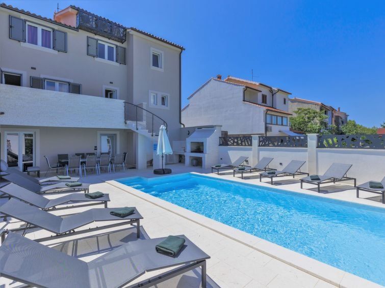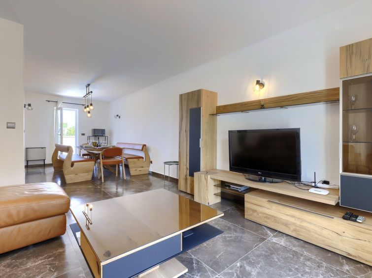 8-room semi-detached house 208 m2 on 3 levels. Renovated in 2022, comfortable and cosy furnishings: living/dining room with satellite TV and air conditioning. Exit to the balcony. 1 room with 1 double bed (160 cm, length 200 cm), air conditioning. Living/dining room with kitchen corner and satellite TV.