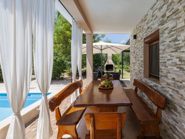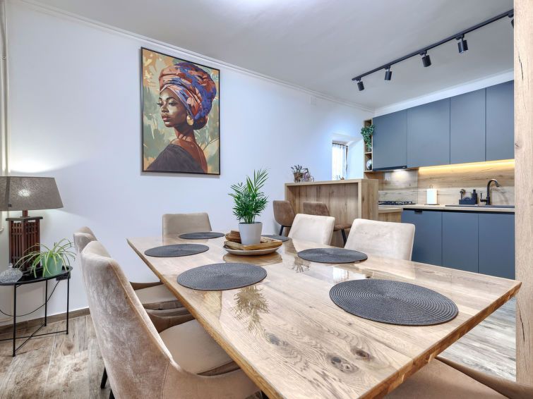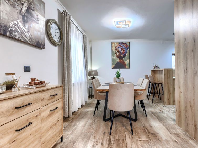 4-room house 120 m2 on 2 levels. Living/dining room with satellite TV (flat screen), air conditioning. Exit to the garden, to the swimming pool. Open kitchen (oven, dishwasher, 4 gas rings, toaster, kettle, microwave, freezer, electric coffee machine). Bath/bidet/WC. Upper floor: 3 rooms, each room with 1 french bed (160 cm, length 200 cm), satellite TV (flat screen), air conditioning.