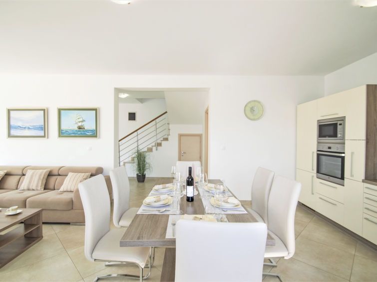 4-room villa 170 m2 on 2 levels. Spacious, cosy furnishings: living/dining room with satellite TV (flat screen), air conditioning. Exit to the terrace, to the swimming pool. Open kitchen (oven, dishwasher, 4 ceramic glass hob hotplates, toaster, kettle, microwave, freezer, electric coffee machine).