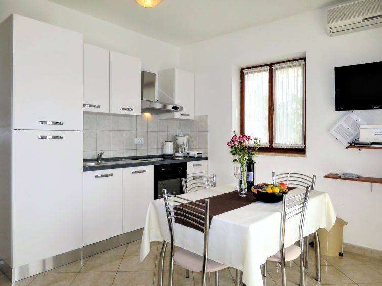 "Danica", 3-room apartment 55 m2, on the ground floor. Living/dining room with 1 sofabed (120 cm, length 190 cm), satellite TV and air conditioning. Exit to the balcony. 1 room with 1 french bed. Exit to the balcony. 1 room with 2 beds. Open kitchen (oven, 4 ceramic glass hob hotplates, toaster, kettle, electric coffee machine).