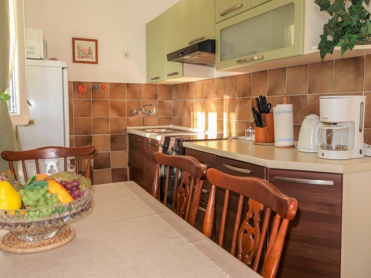 "Neda", 3-room apartment 55 m2, on the ground floor. Living/dining room with satellite TV and air conditioning. Exit to the terrace. 1 room with 2 beds. 1 room with 1 double bed. Open kitchen (1 hot plate, oven, 3 gas rings, toaster, kettle, microwave, freezer, electric coffee machine).