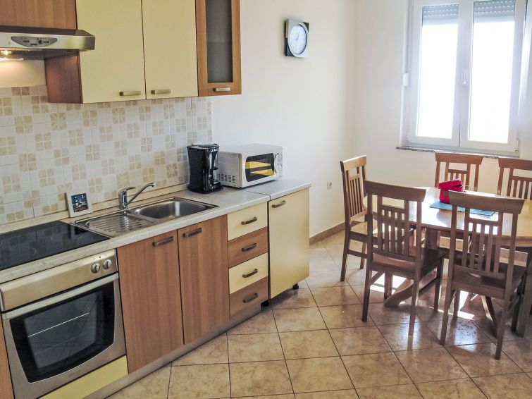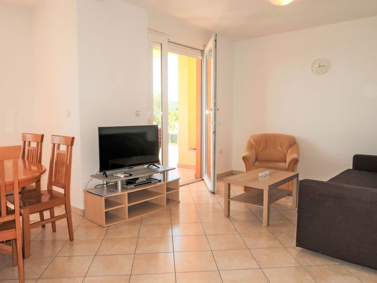 "Orhideja", 3-room apartment 60 m2, on the ground floor. Living/dining room with 1 double sofabed (150 cm, length 200 cm), satellite TV and air conditioning. Exit to the balcony. 1 room with 1 french bed (160 cm, length 200 cm). 1 room with 1 x 2 bunk beds. Open kitchen (oven, dishwasher, 4 ceramic glass hob hotplates, toaster, kettle, microwave, electric coffee machine).