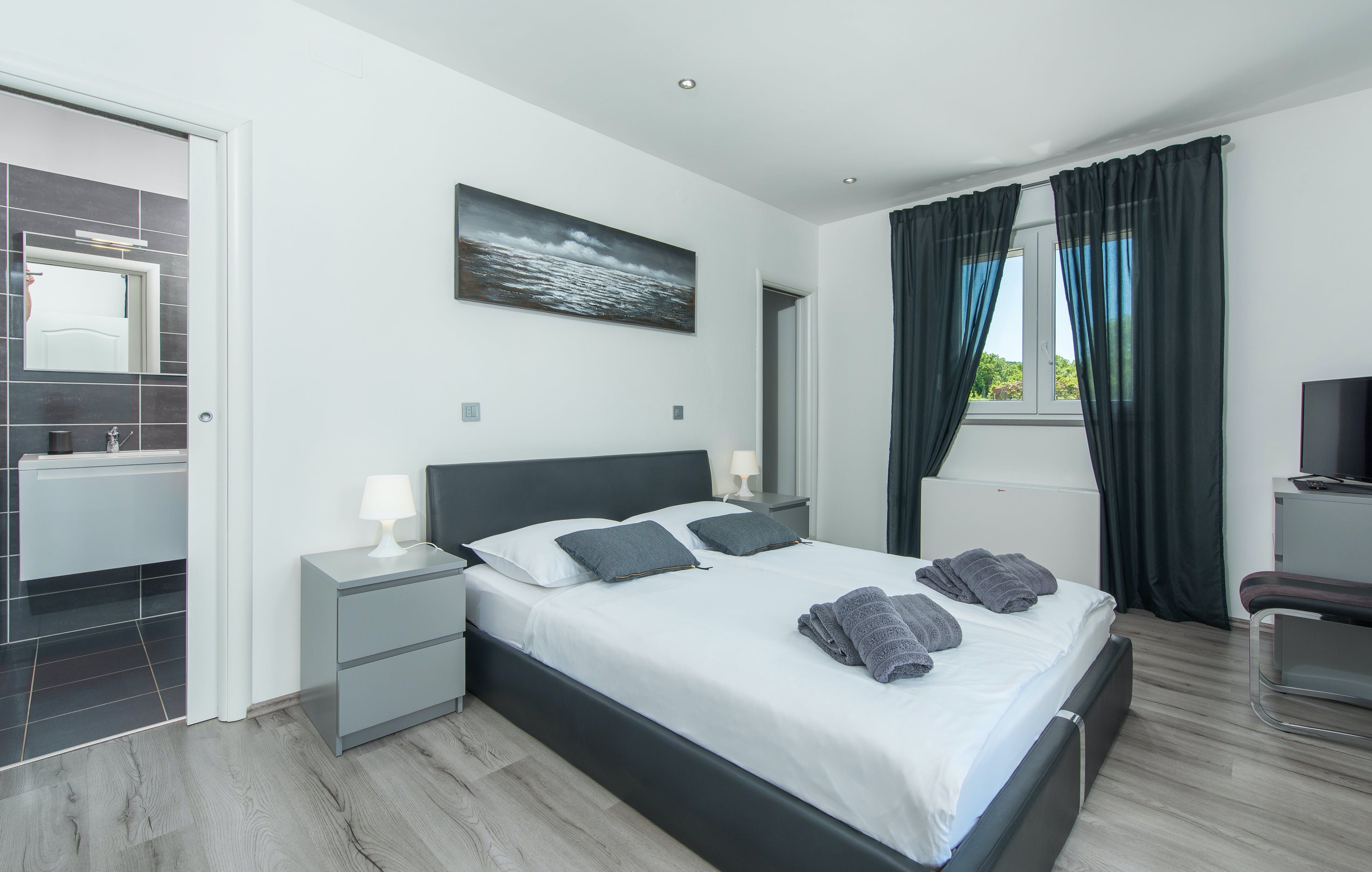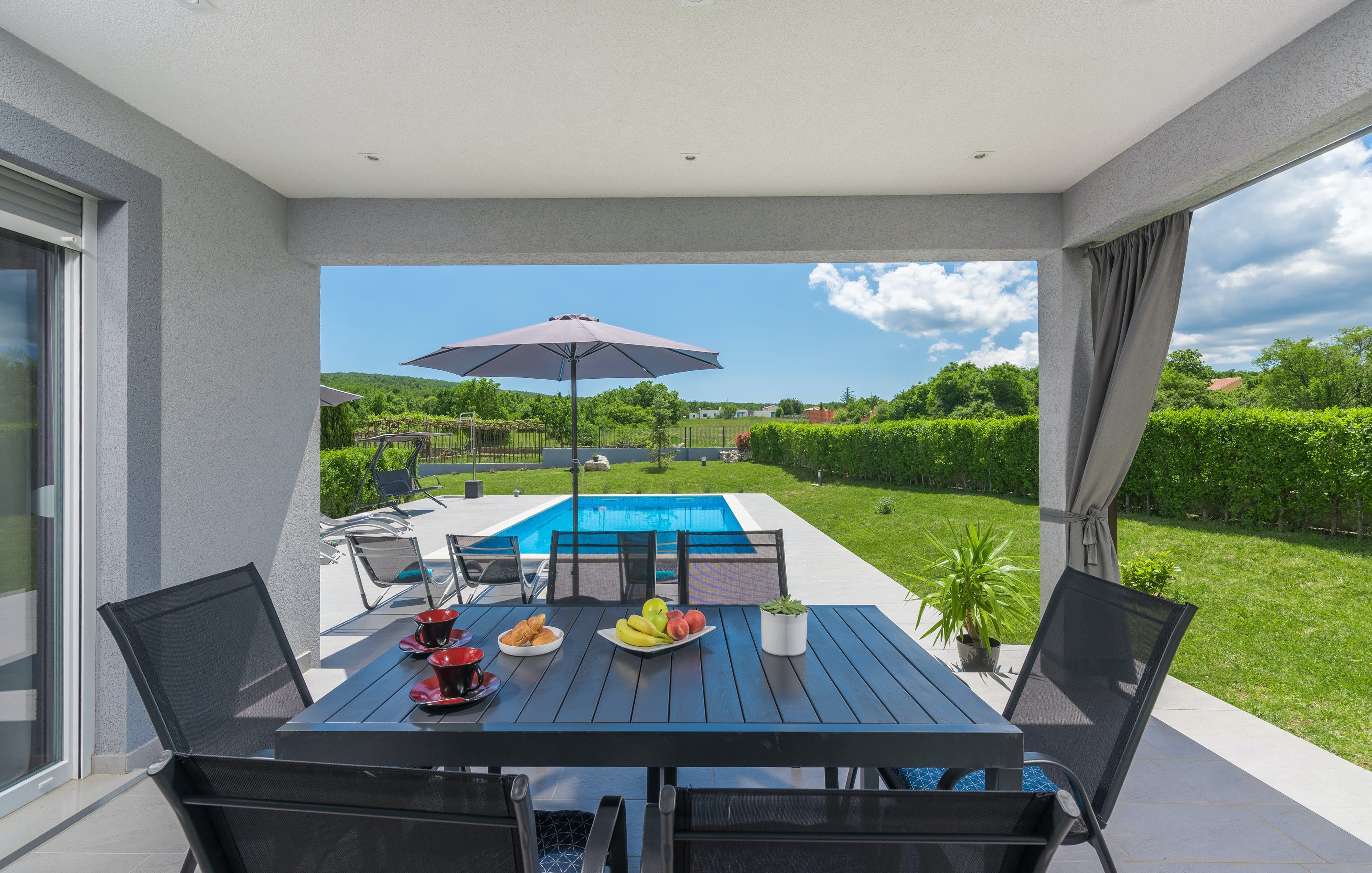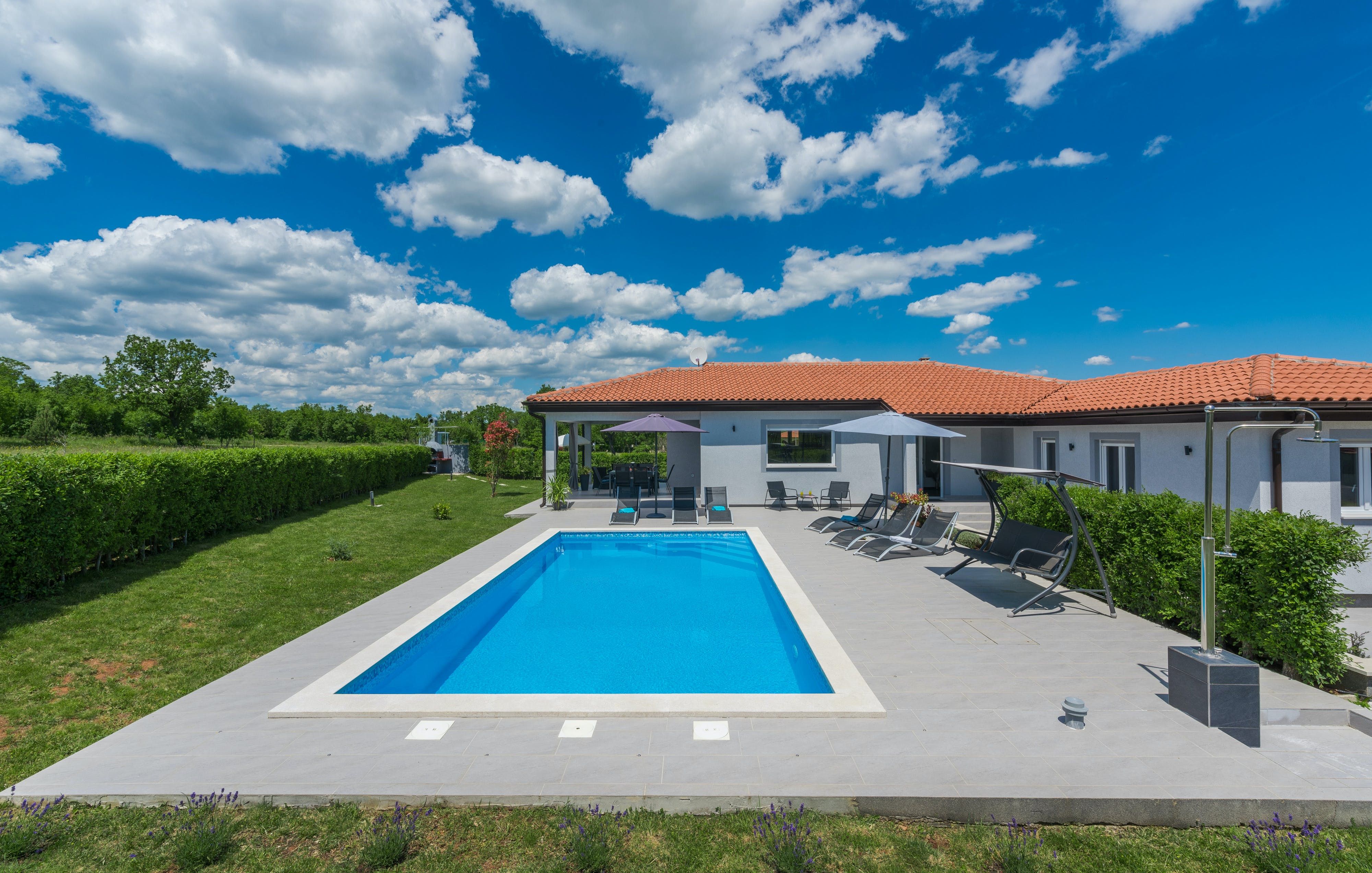 With rolling views across Istria’s countryside and your own sun-drenched swimming pool, this is the perfect place to switch off. The fenced garden and shaded terrace invite outdoor living – with enough room for little ones to run about while you relax. Inside, the interiors are simple yet modern, with everything you need for a comfortable stay. From here, it’s a short drive to the historic town of Labin and the beaches of Rabac – perfect for swimming, coastal walks, and relaxed dinners by the sea.