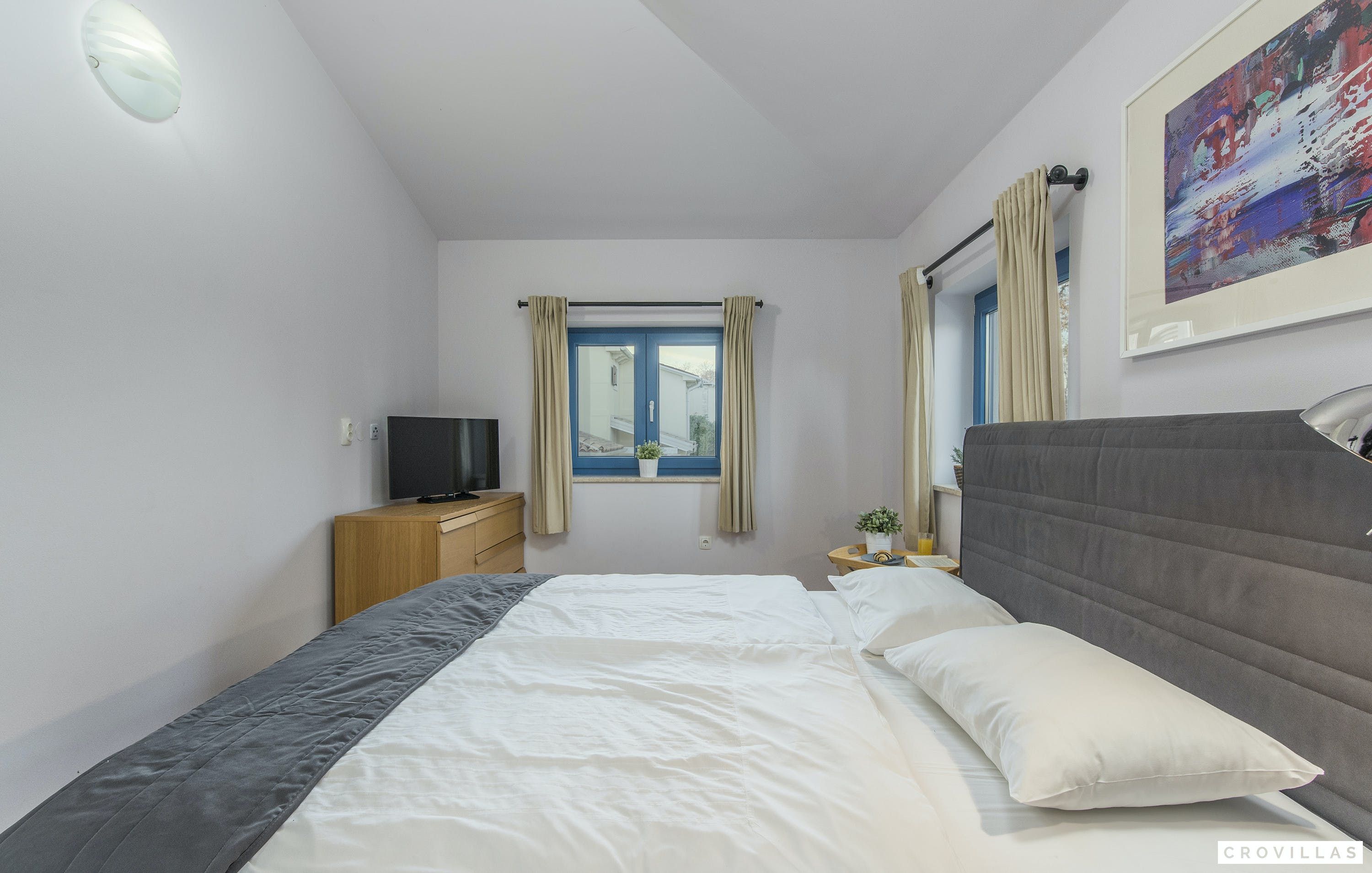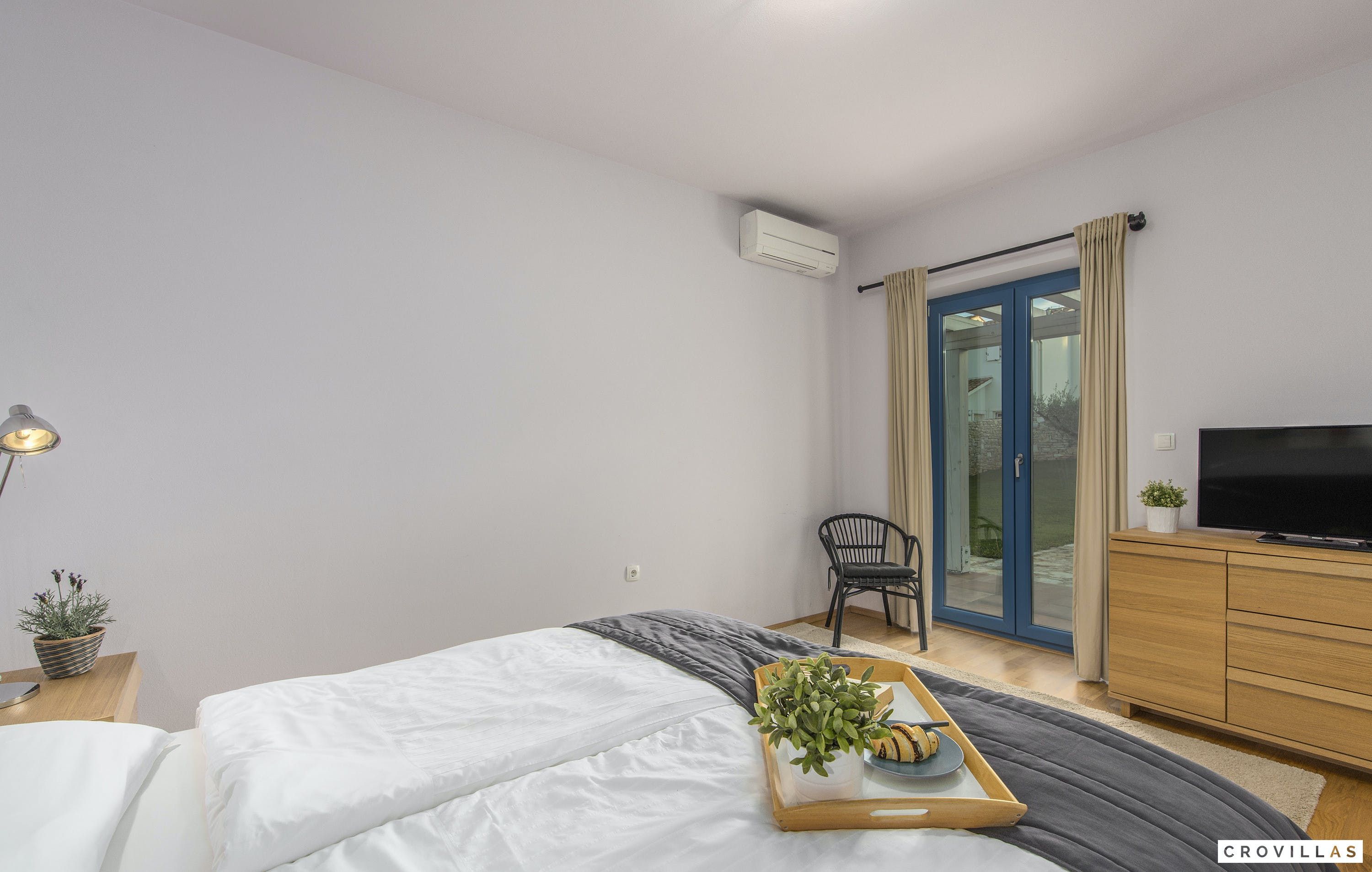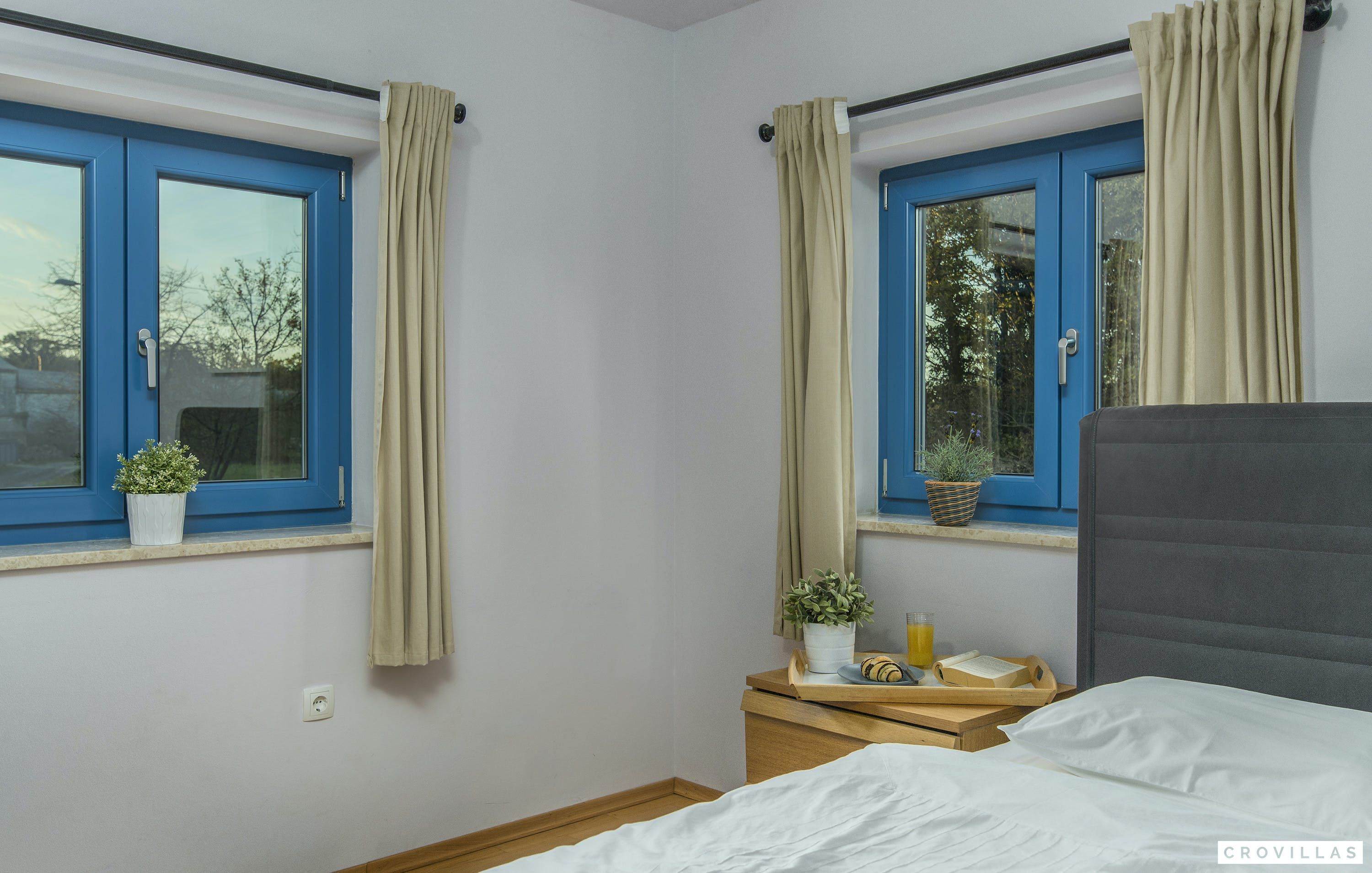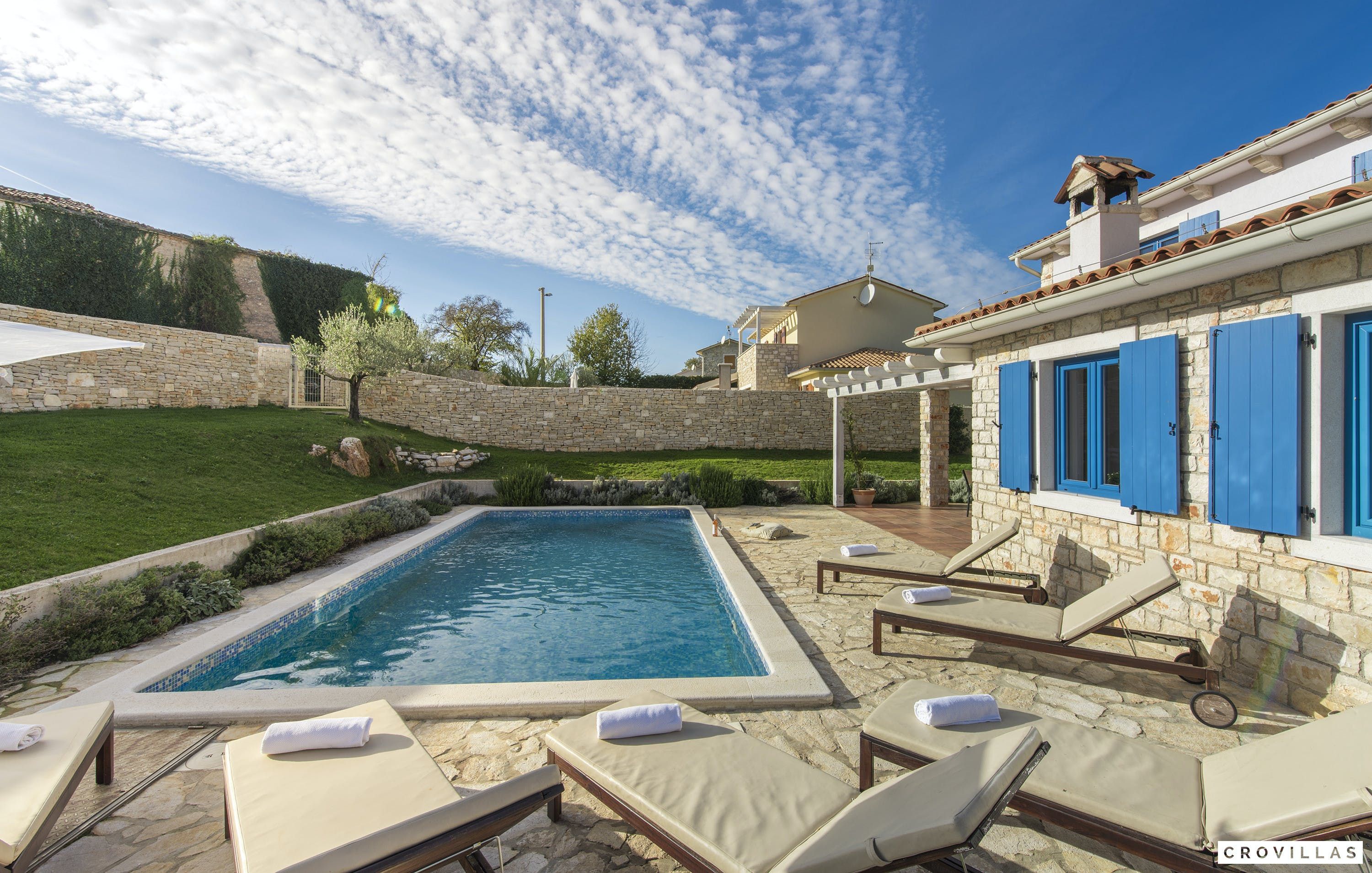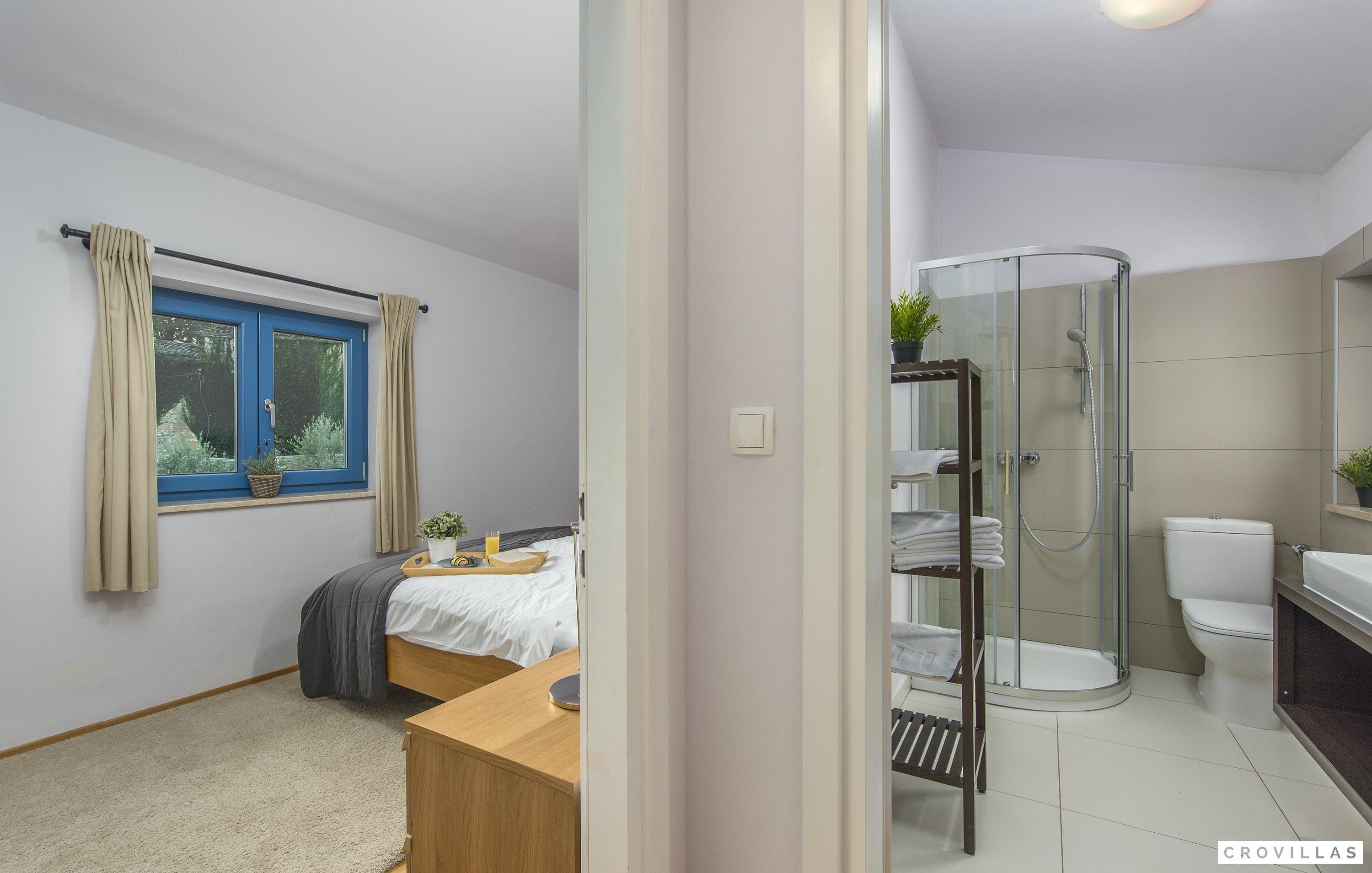 This is a beautiful and affordable vacation home made of natural building materials such as stone and wood, while still meeting modern standards of luxury and comfort. Visitors can enjoy a private pool with a depth of 1.40m, Finnish sauna, and outdoor shower. The villa has four bedrooms with en-suite bathrooms, LCD TVs, ample storage space, and air conditioning. The common living and dining area features large-format cream tiles, light-colored walls, cosy sofa area, and contemporary art on the walls. The white country kitchen in the open area is fully equipped with modern appliances. There is also a covered terrace at the house with a brick barbecue for BBQ evenings or as a fireplace. Visitors can park their rental cars on the property. The villa is located only 30 km from Pula airport, but visitors should have a rental car to explore the surrounding areas of Istria, which offer enchanting nature, rich natural sights, spectacular views, historical places to visit such as Barban, Pazin, Svetvinčenat or Motovun, theatre or jazz festivals against a historical backdrop and authentic village festivals.