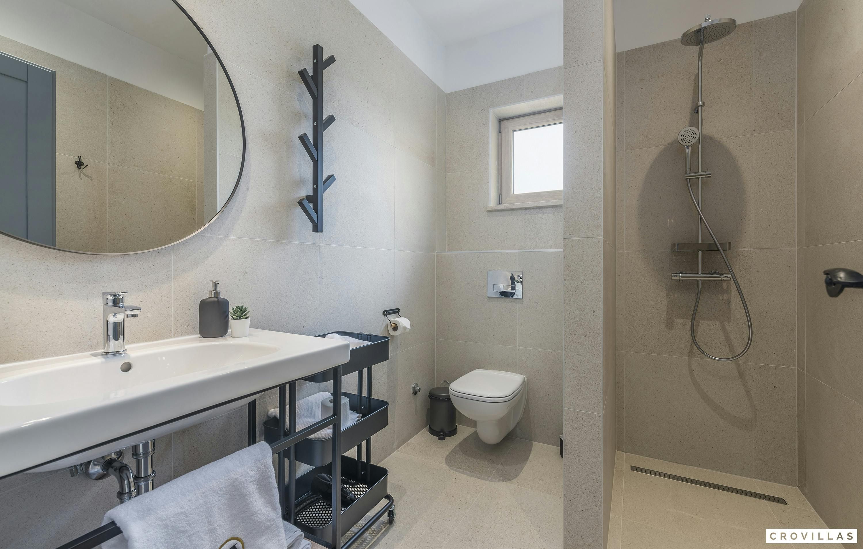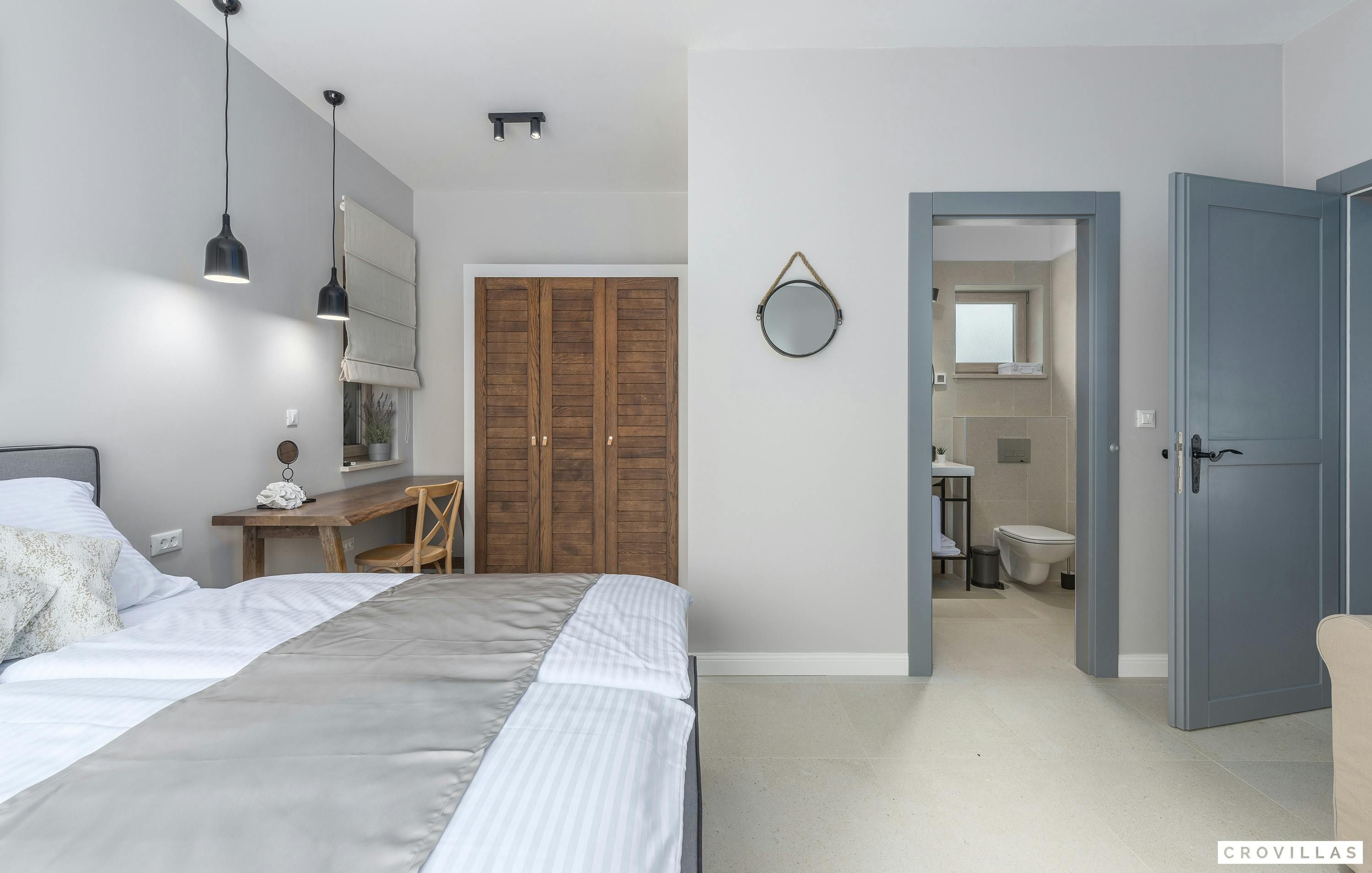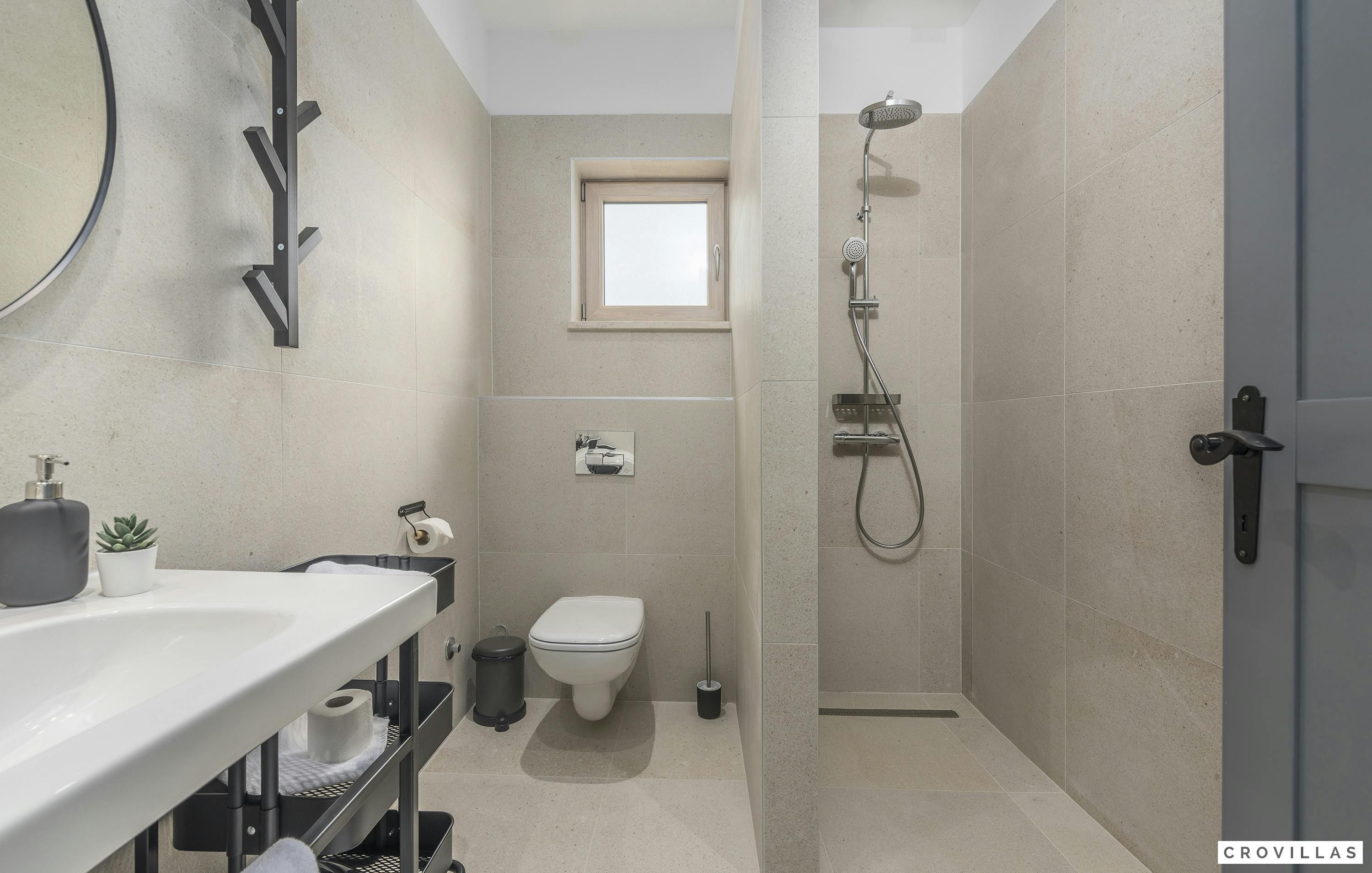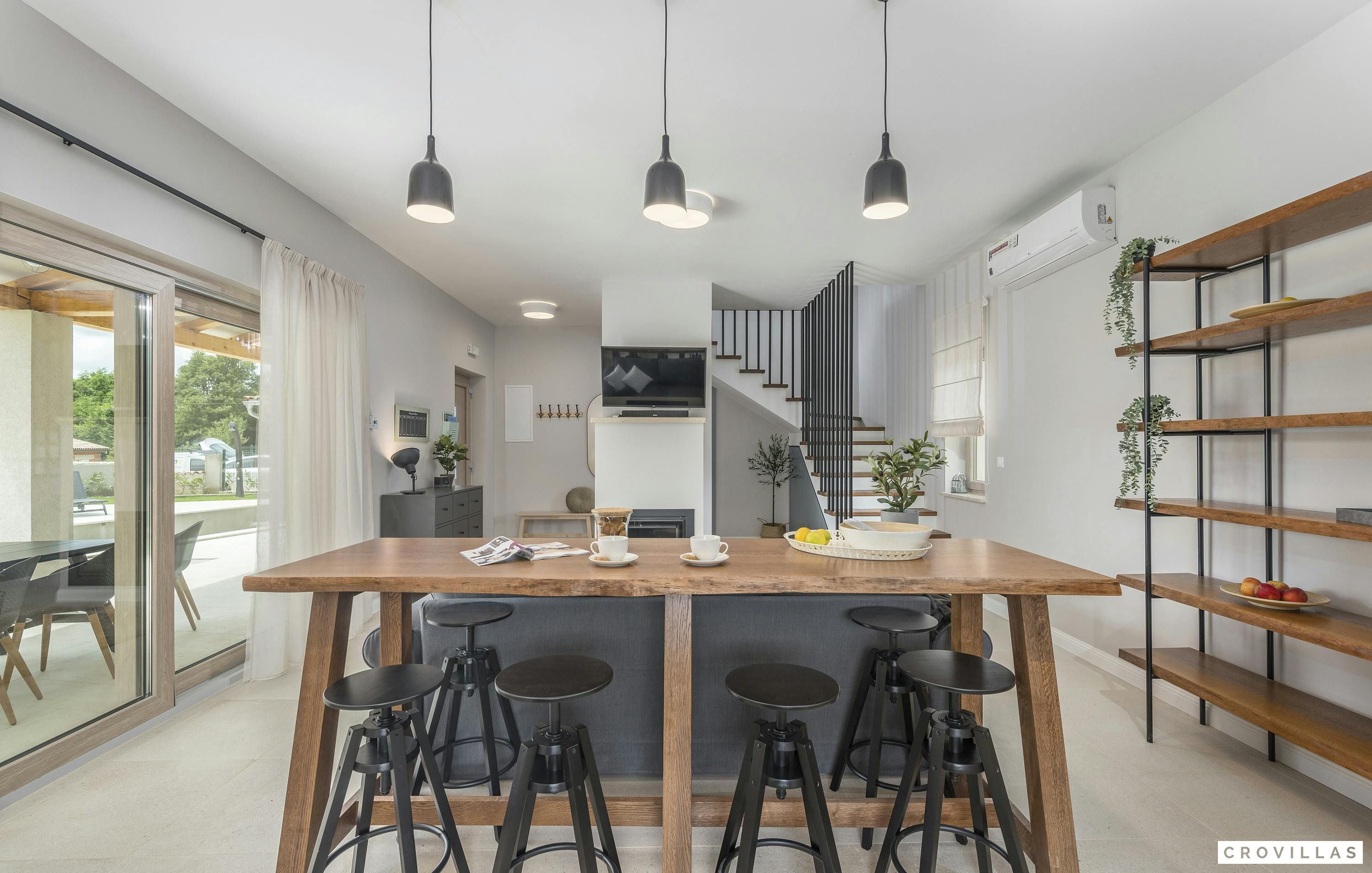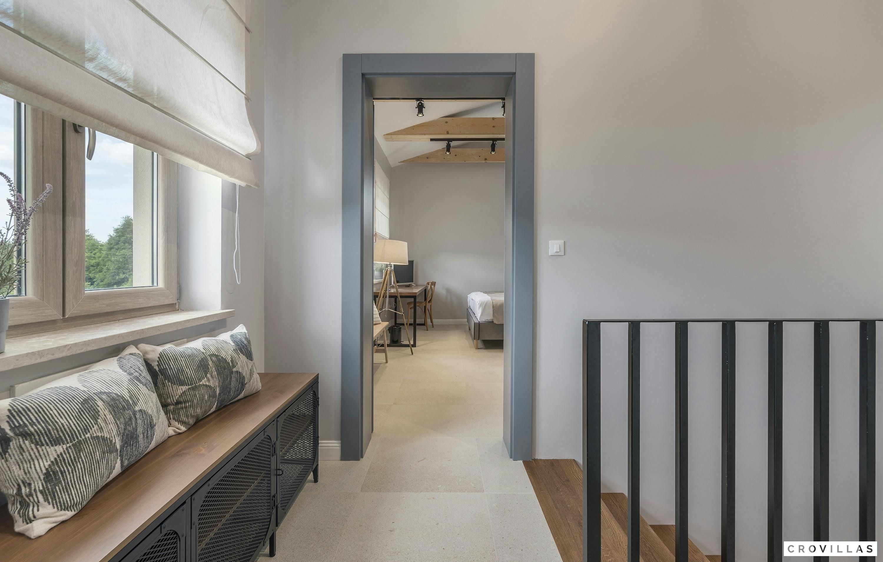 This charming villa offers a fantastic vacation experience with a range of activities for both adults and children. The saltwater pool can be heated on request, and the terrace and outdoor kitchen with a fixed grill provide a great space for dining and relaxation. The garden features a trampoline and soccer goals, while the steam sauna offers relaxation in serene surroundings. The interior is modern and friendly, with trendy highlights in each room. The open living area has a comfortable sofa bed for two people, as well as TV and fireplace for entertainment on bad weather days. The fully equipped kitchen is conveniently situated behind the living area, with a pretty dining table separating the two zones. With three bedrooms, each spread across the lower and upper floors, this villa comfortably sleeps friends and families. All year-round comfort is guaranteed by underfloor heating and air conditioning throughout the property.