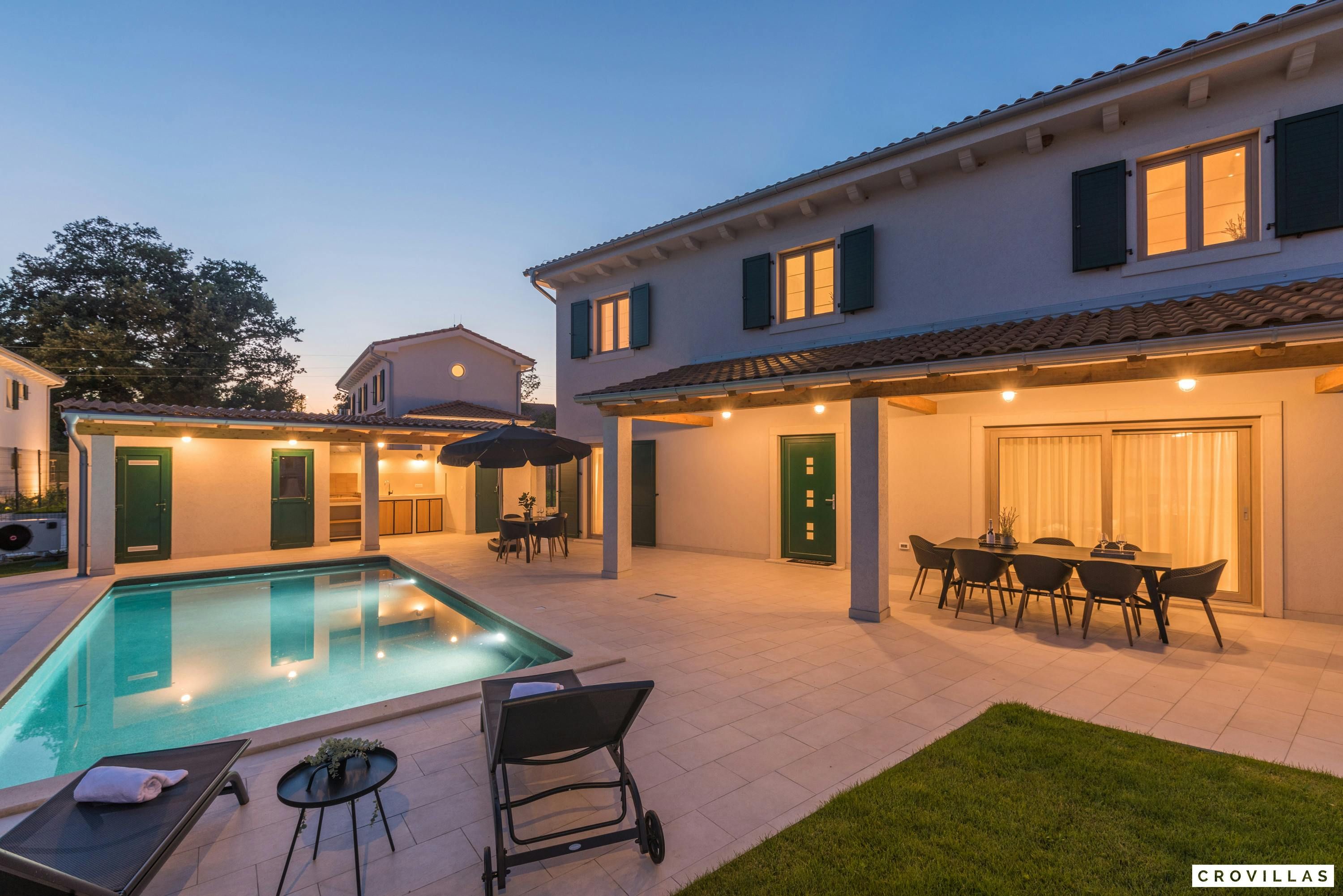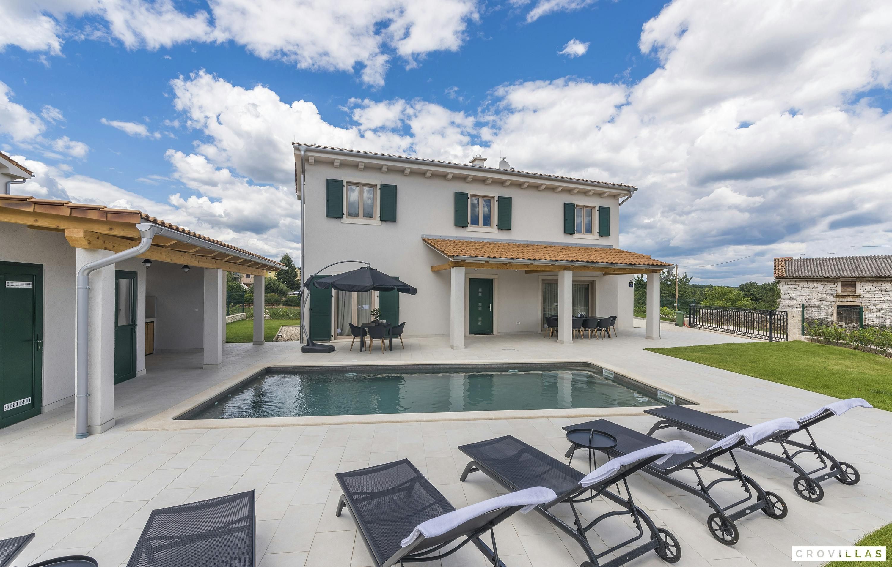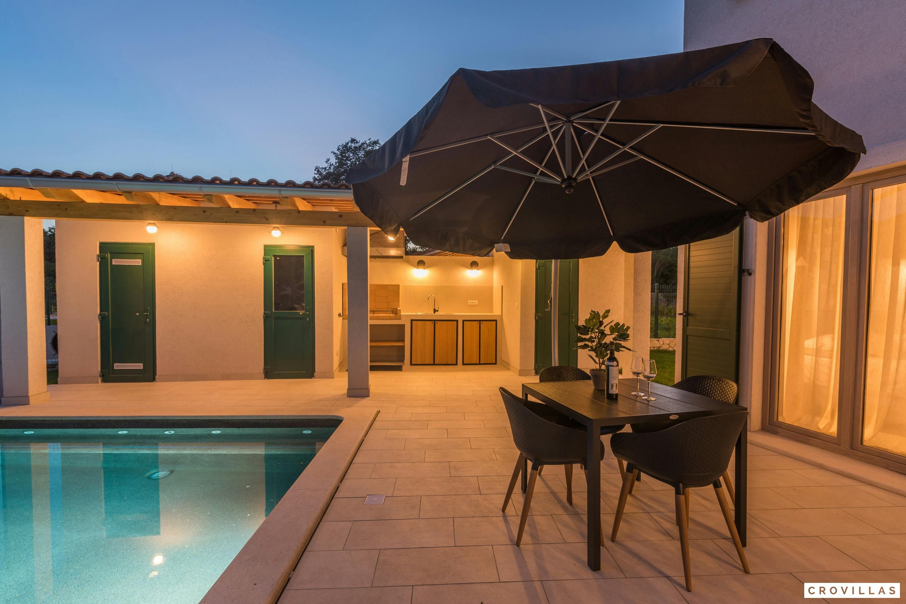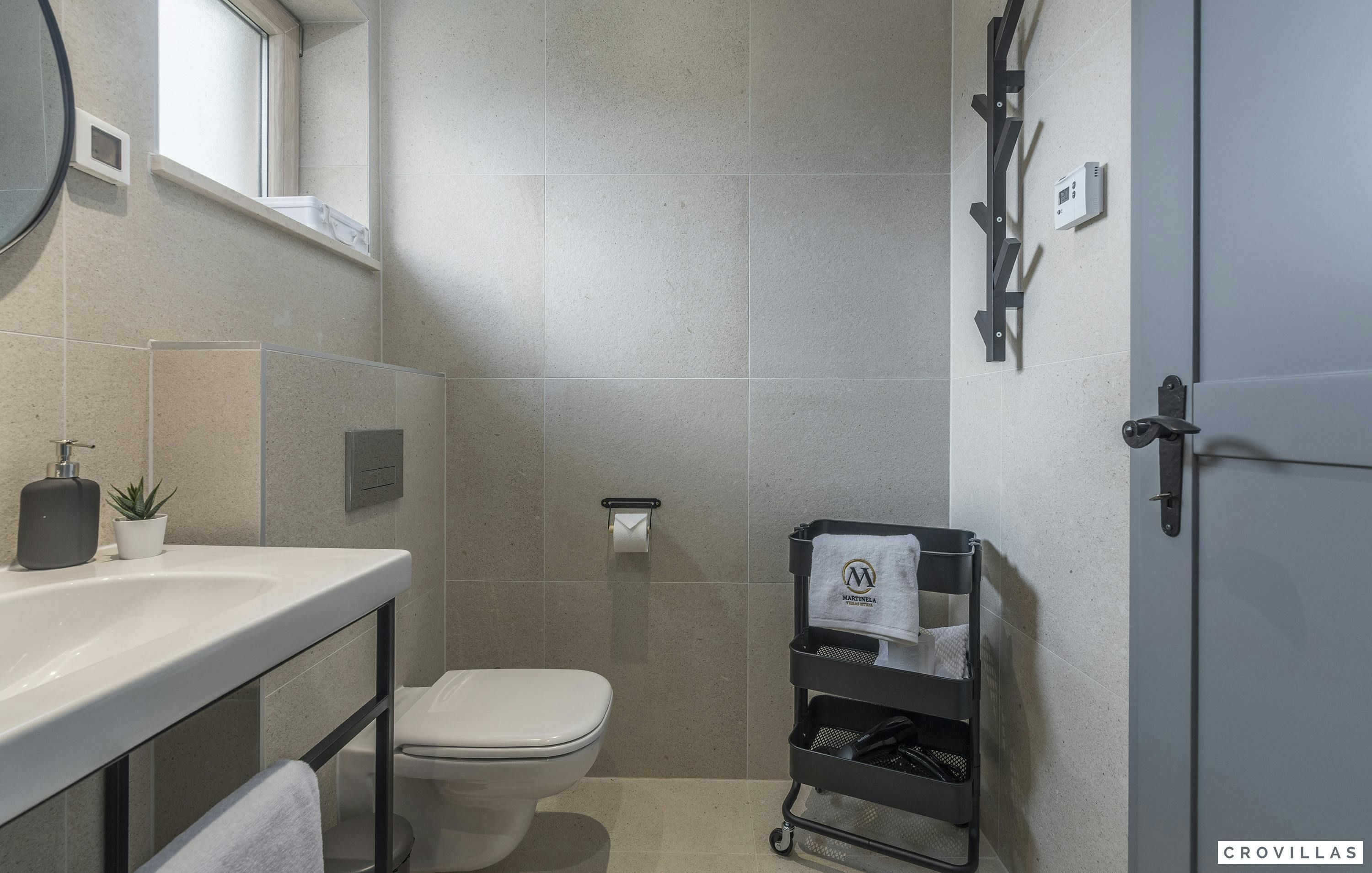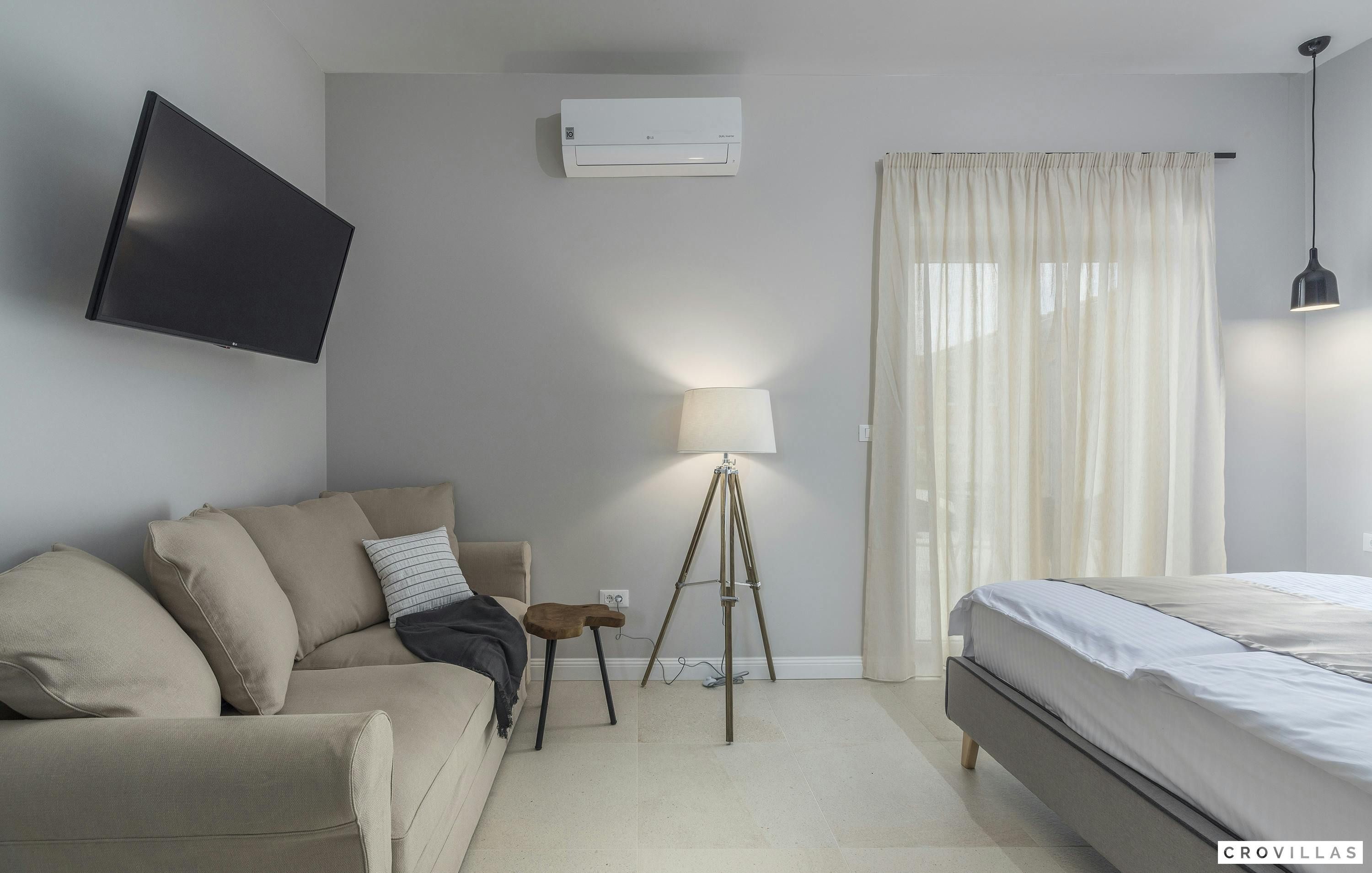 This charming villa offers a fantastic vacation experience with a range of activities for both adults and children. The saltwater pool can be heated on request, and the terrace and outdoor kitchen with a fixed grill provide a great space for dining and relaxation. The garden features a trampoline and soccer goals, while the steam sauna offers relaxation in serene surroundings. The interior is modern and friendly, with trendy highlights in each room. The open living area has a comfortable sofa bed for two people, as well as TV and fireplace for entertainment on bad weather days. The fully equipped kitchen is conveniently situated behind the living area, with a pretty dining table separating the two zones. With three bedrooms, each spread across the lower and upper floors, this villa comfortably sleeps friends and families. All year-round comfort is guaranteed by underfloor heating and air conditioning throughout the property.