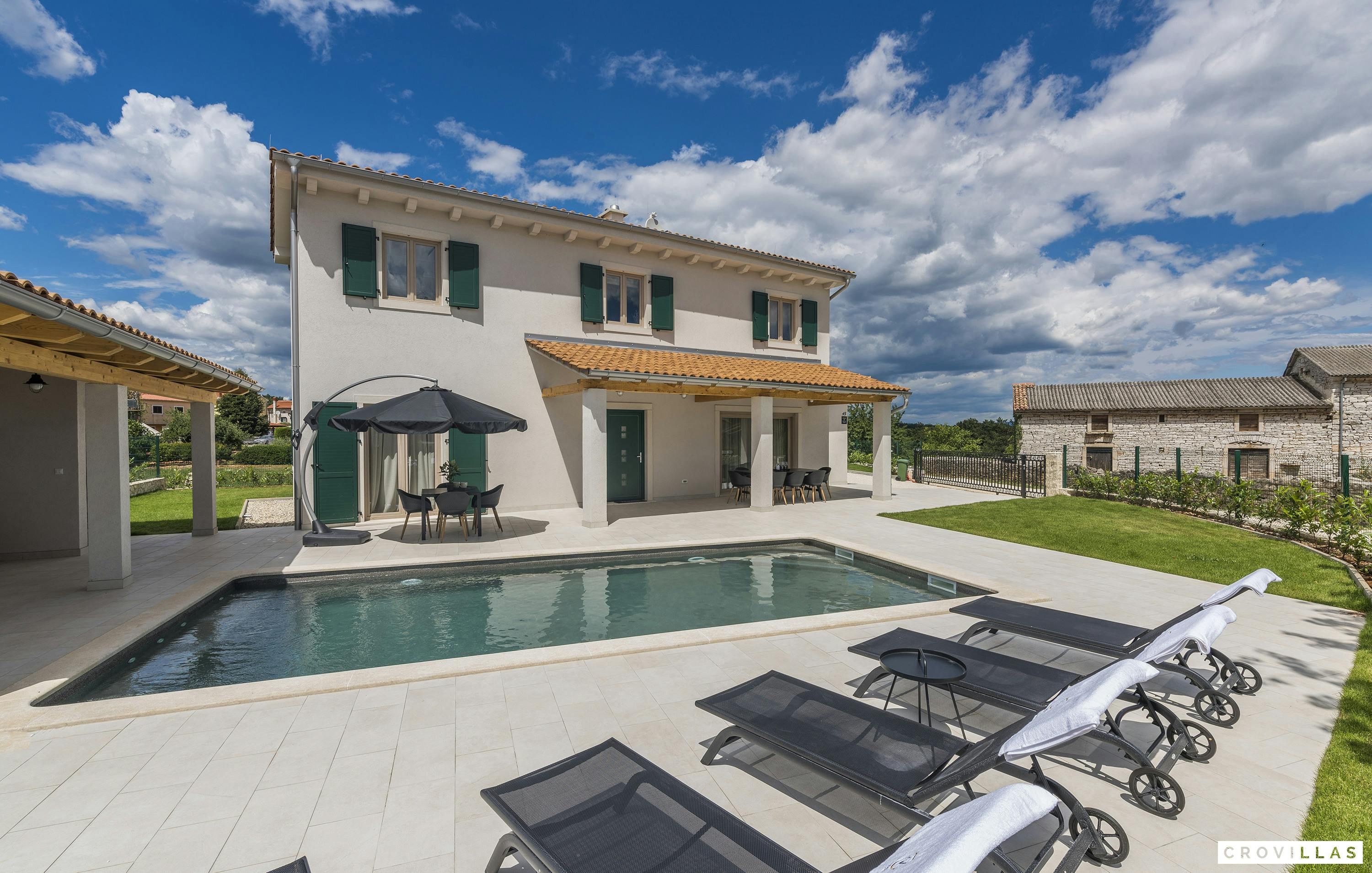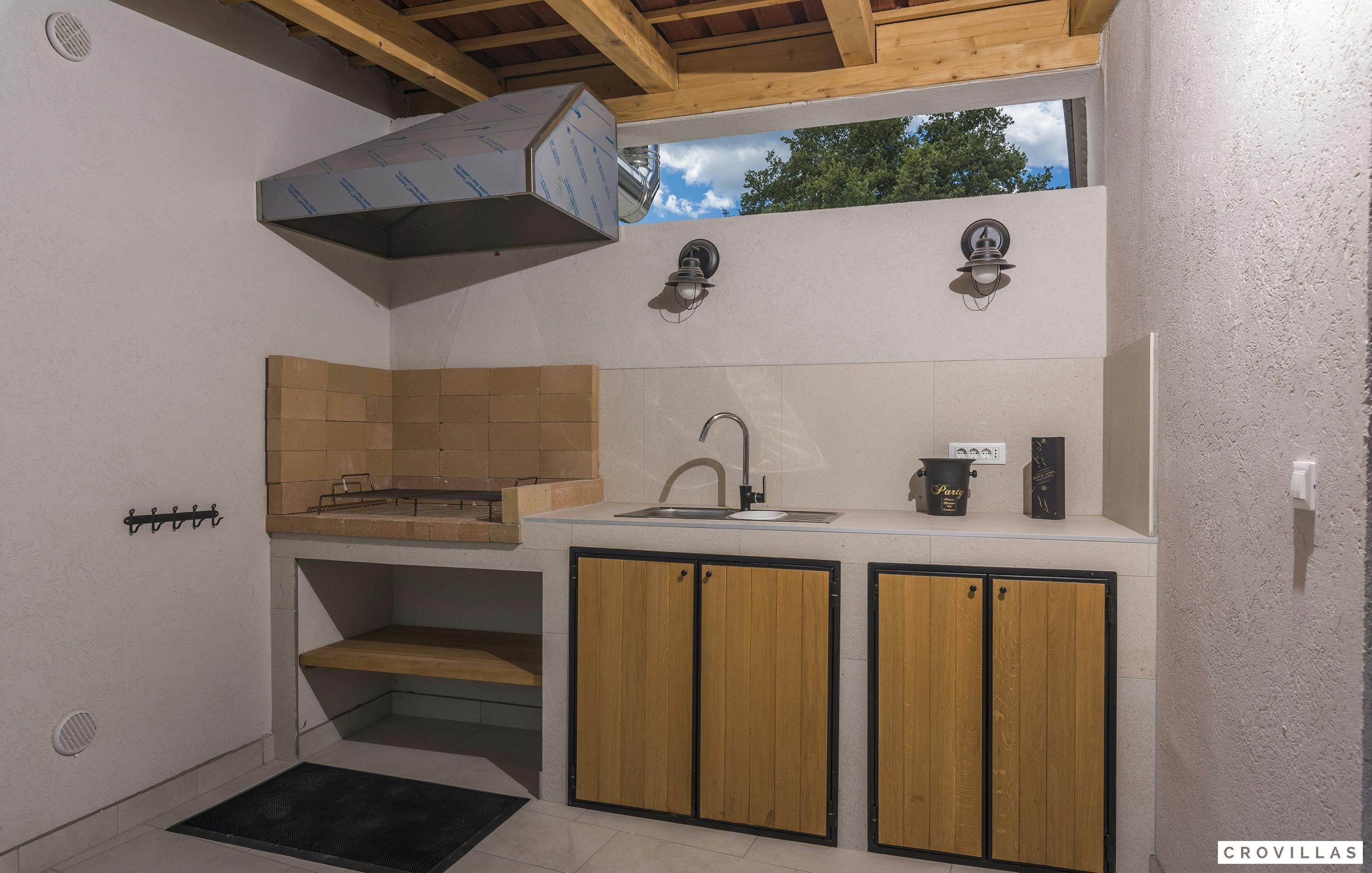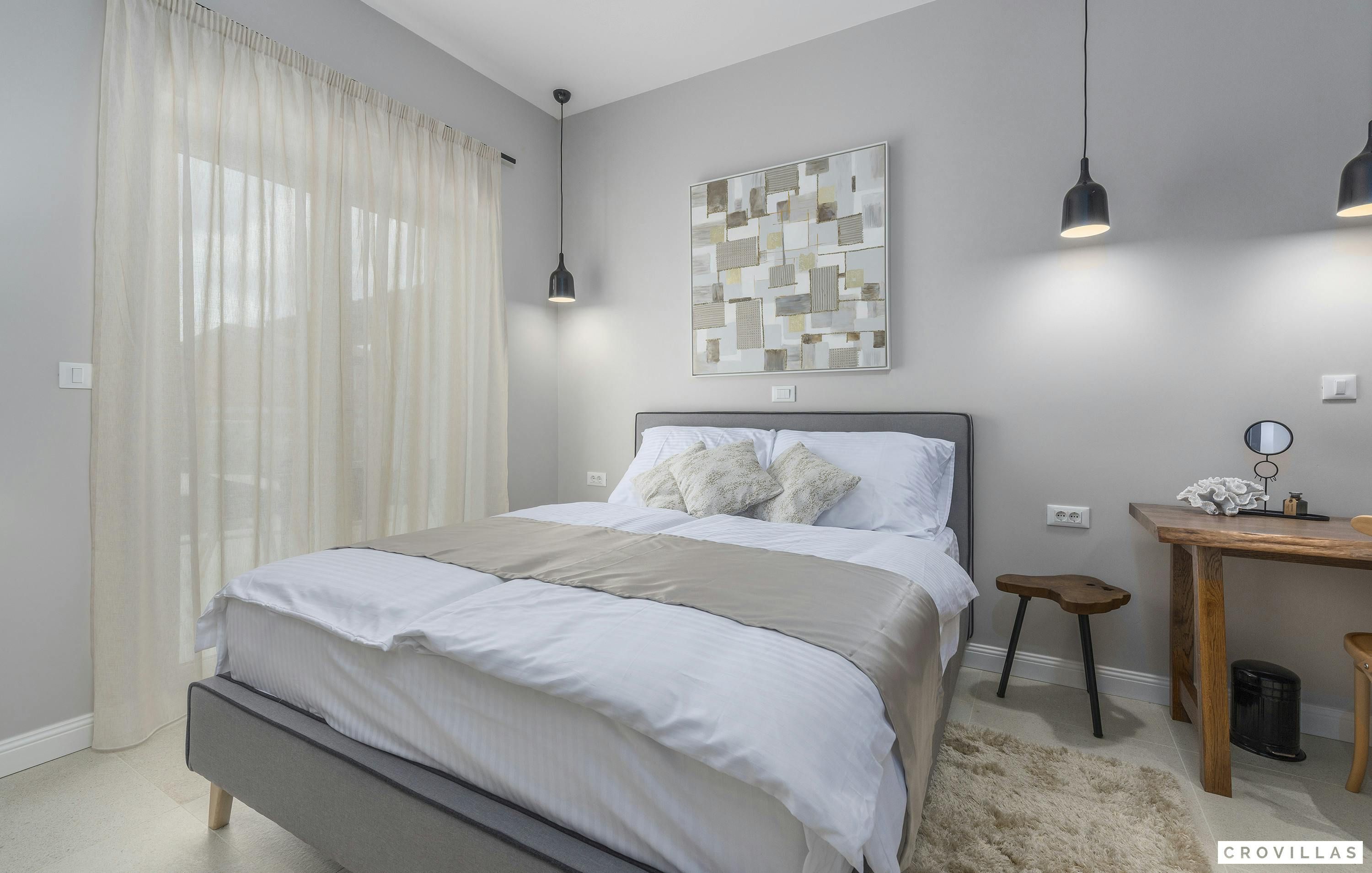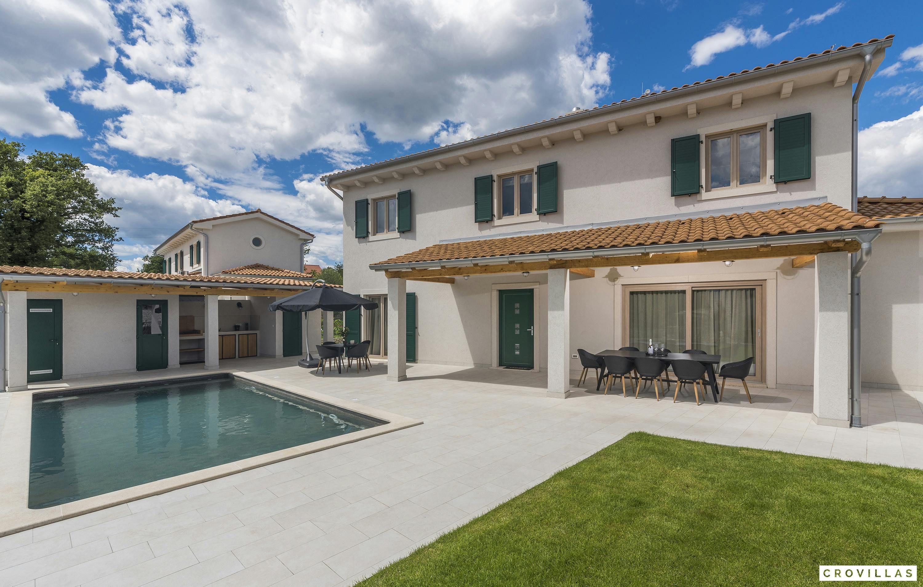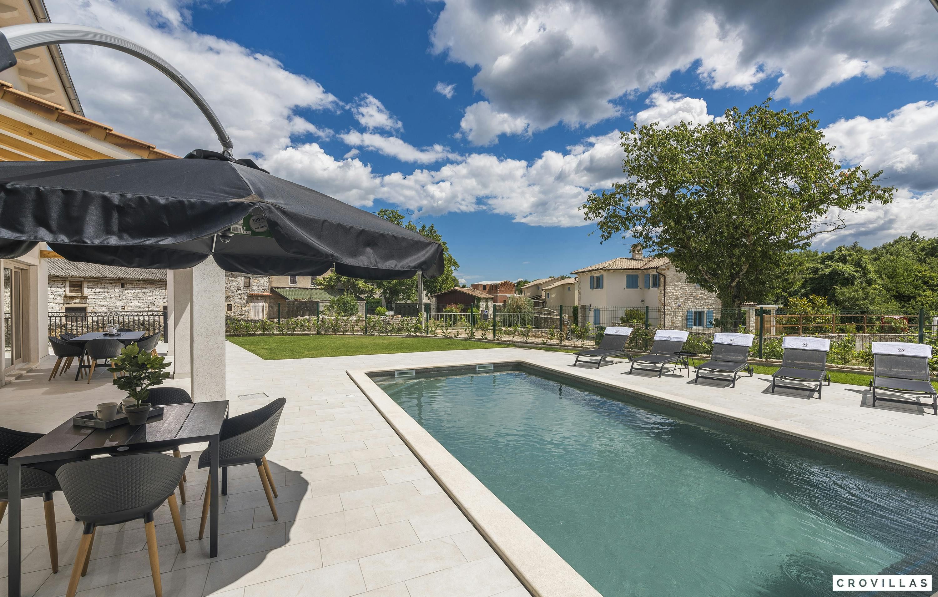 This charming villa offers a fantastic vacation experience with a range of activities for both adults and children. The saltwater pool can be heated on request, and the terrace and outdoor kitchen with a fixed grill provide a great space for dining and relaxation. The garden features a trampoline and soccer goals, while the steam sauna offers relaxation in serene surroundings. The interior is modern and friendly, with trendy highlights in each room. The open living area has a comfortable sofa bed for two people, as well as TV and fireplace for entertainment on bad weather days. The fully equipped kitchen is conveniently situated behind the living area, with a pretty dining table separating the two zones. With three bedrooms, each spread across the lower and upper floors, this villa comfortably sleeps friends and families. All year-round comfort is guaranteed by underfloor heating and air conditioning throughout the property.