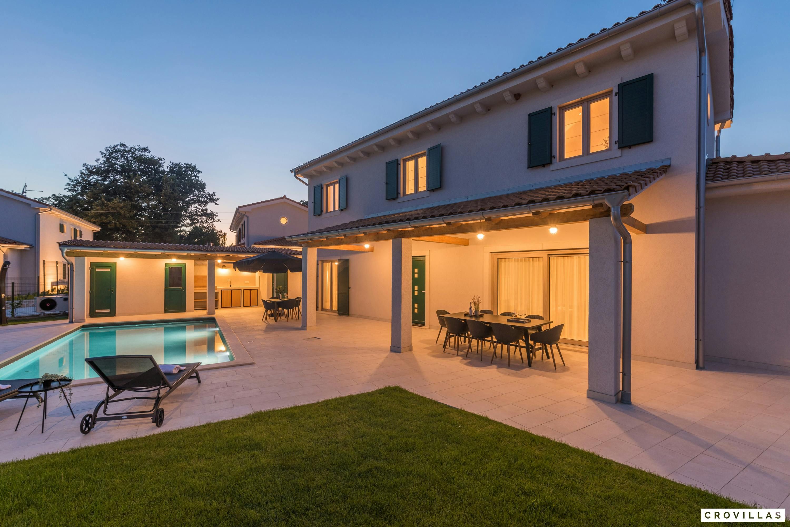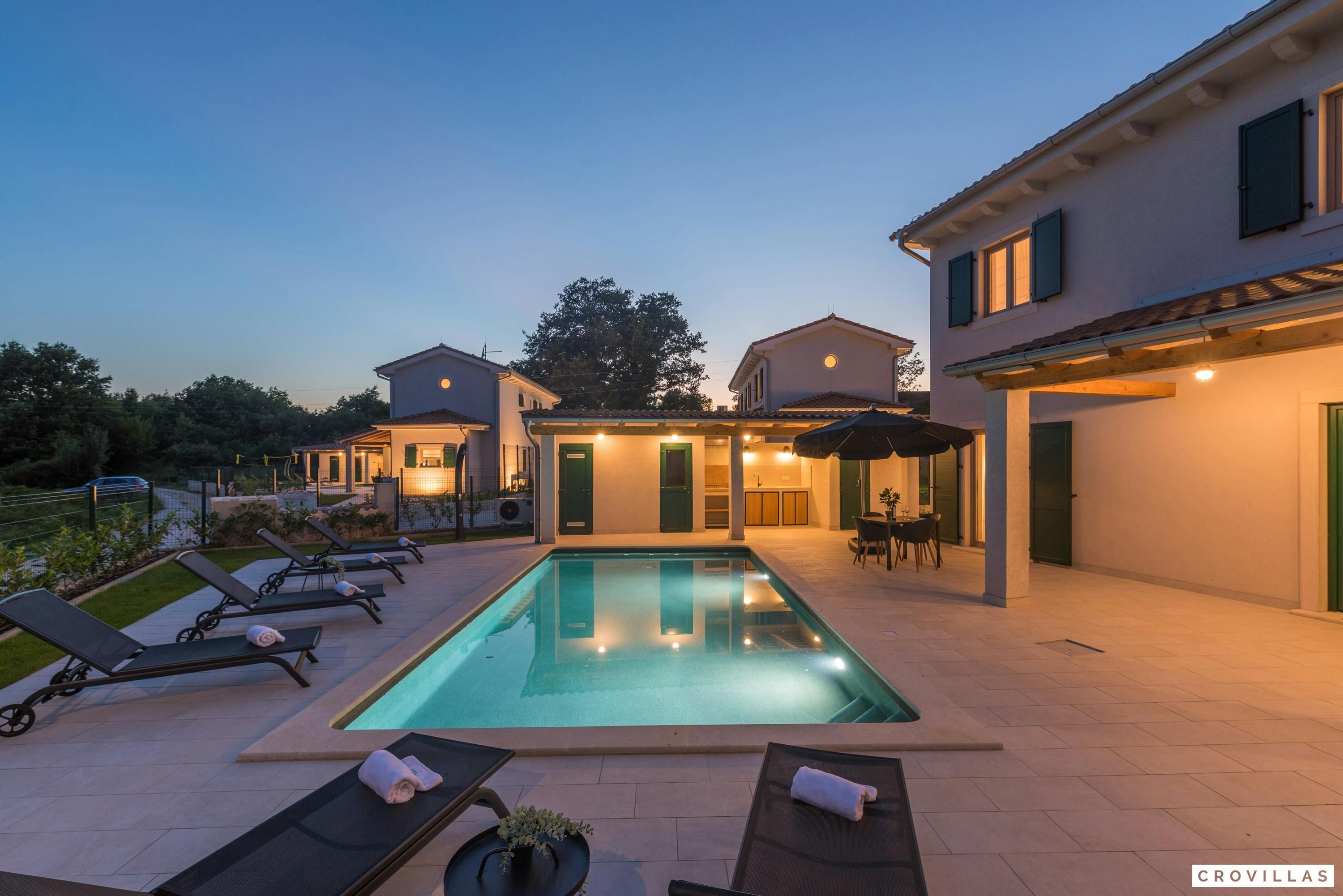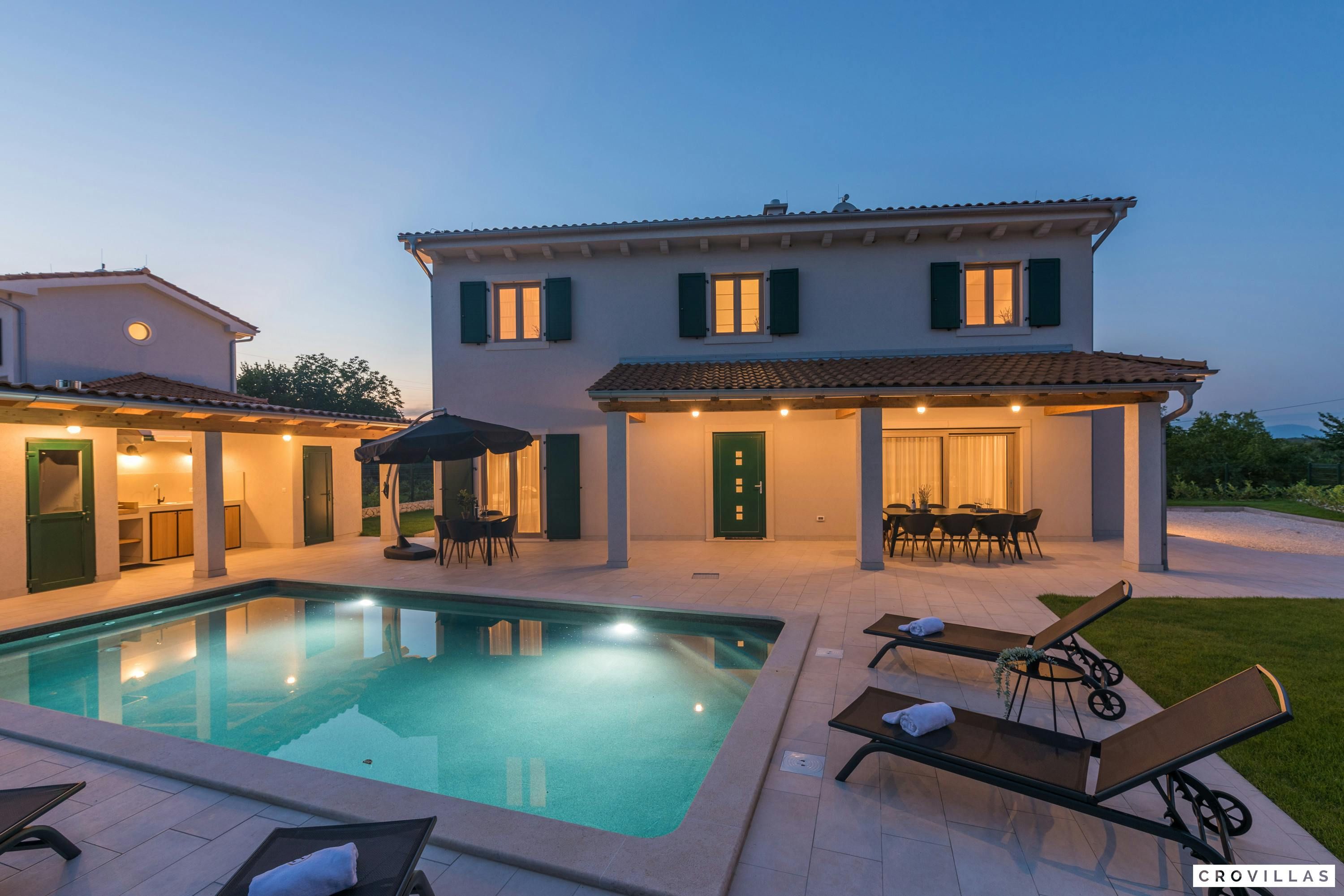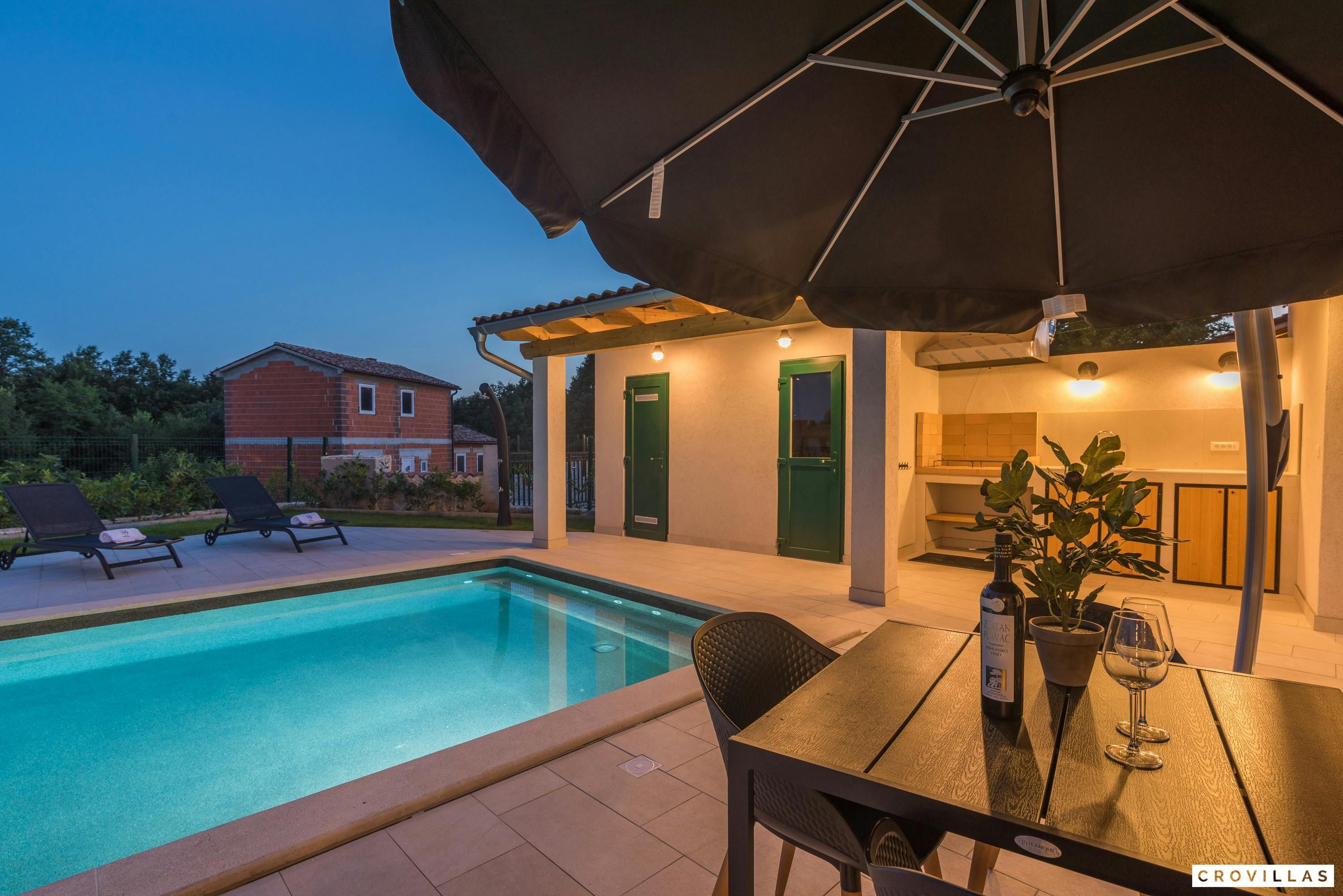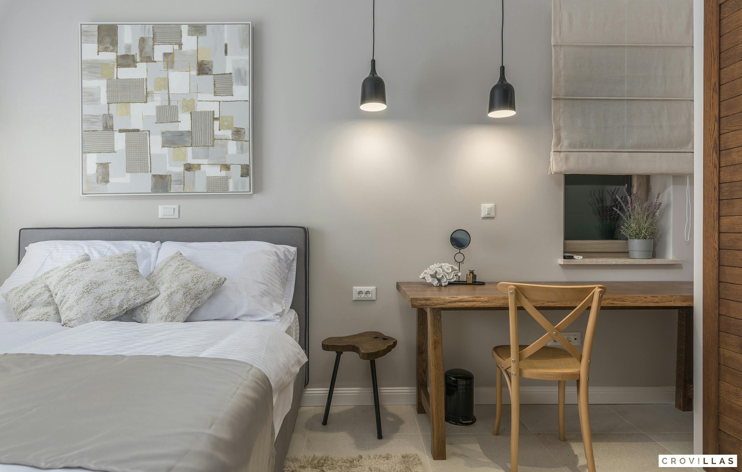 This charming villa offers a fantastic vacation experience with a range of activities for both adults and children. The saltwater pool can be heated on request, and the terrace and outdoor kitchen with a fixed grill provide a great space for dining and relaxation. The garden features a trampoline and soccer goals, while the steam sauna offers relaxation in serene surroundings. The interior is modern and friendly, with trendy highlights in each room. The open living area has a comfortable sofa bed for two people, as well as TV and fireplace for entertainment on bad weather days. The fully equipped kitchen is conveniently situated behind the living area, with a pretty dining table separating the two zones. With three bedrooms, each spread across the lower and upper floors, this villa comfortably sleeps friends and families. All year-round comfort is guaranteed by underfloor heating and air conditioning throughout the property.