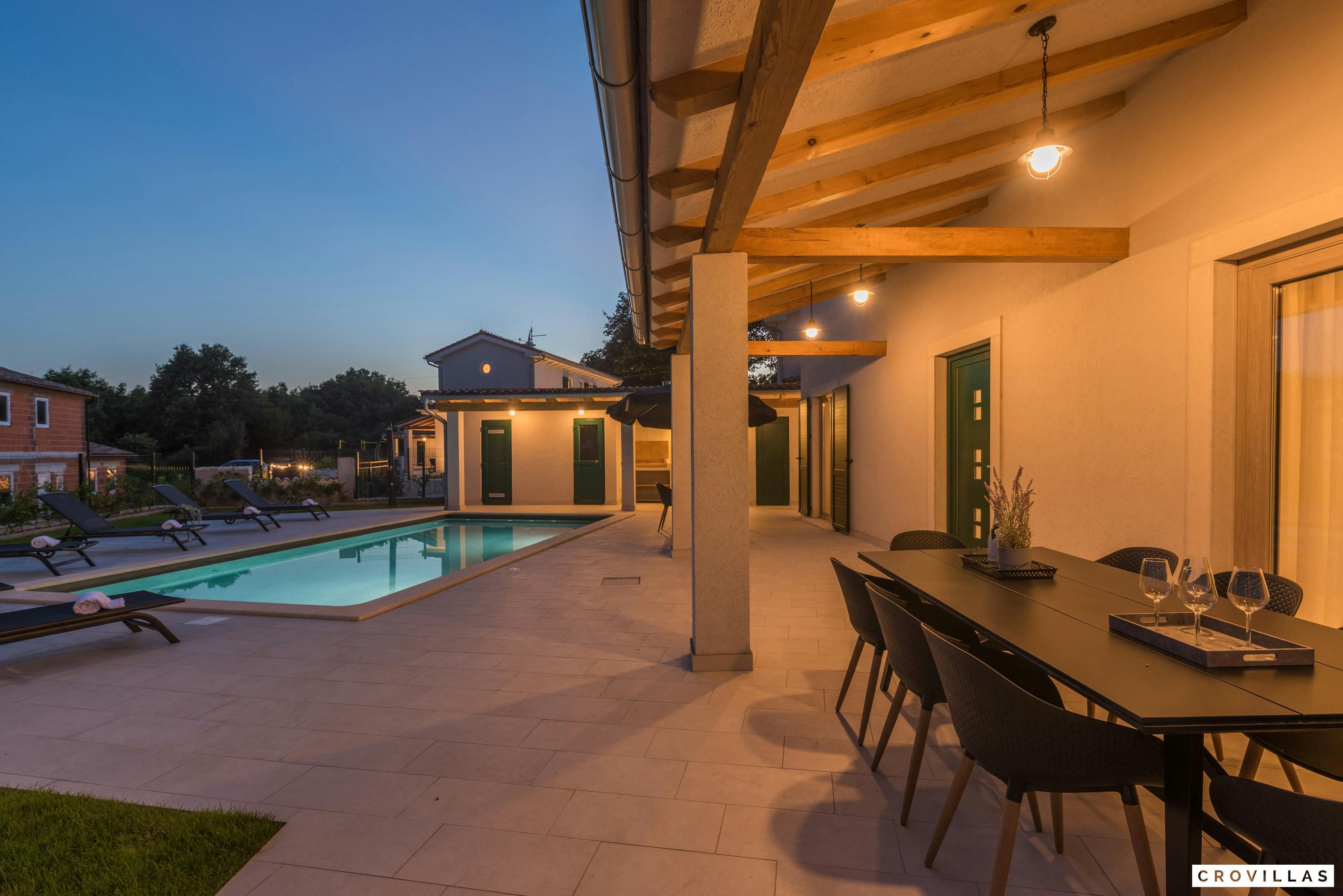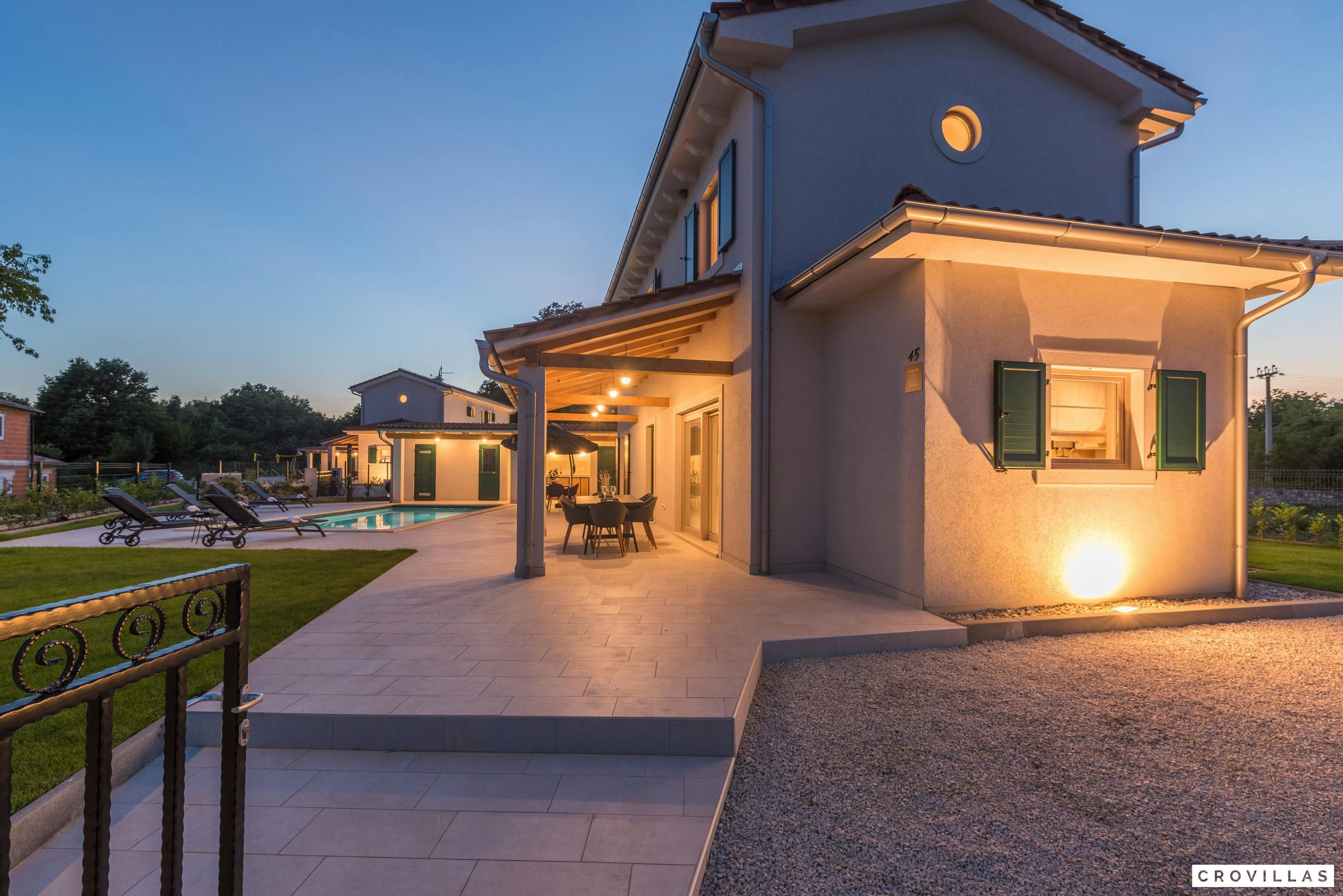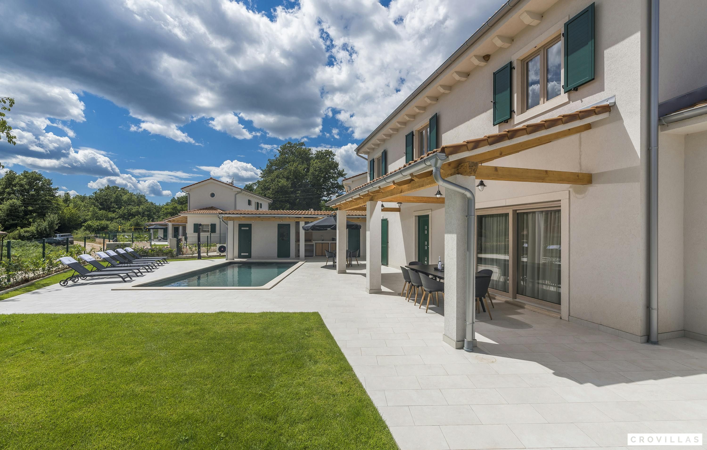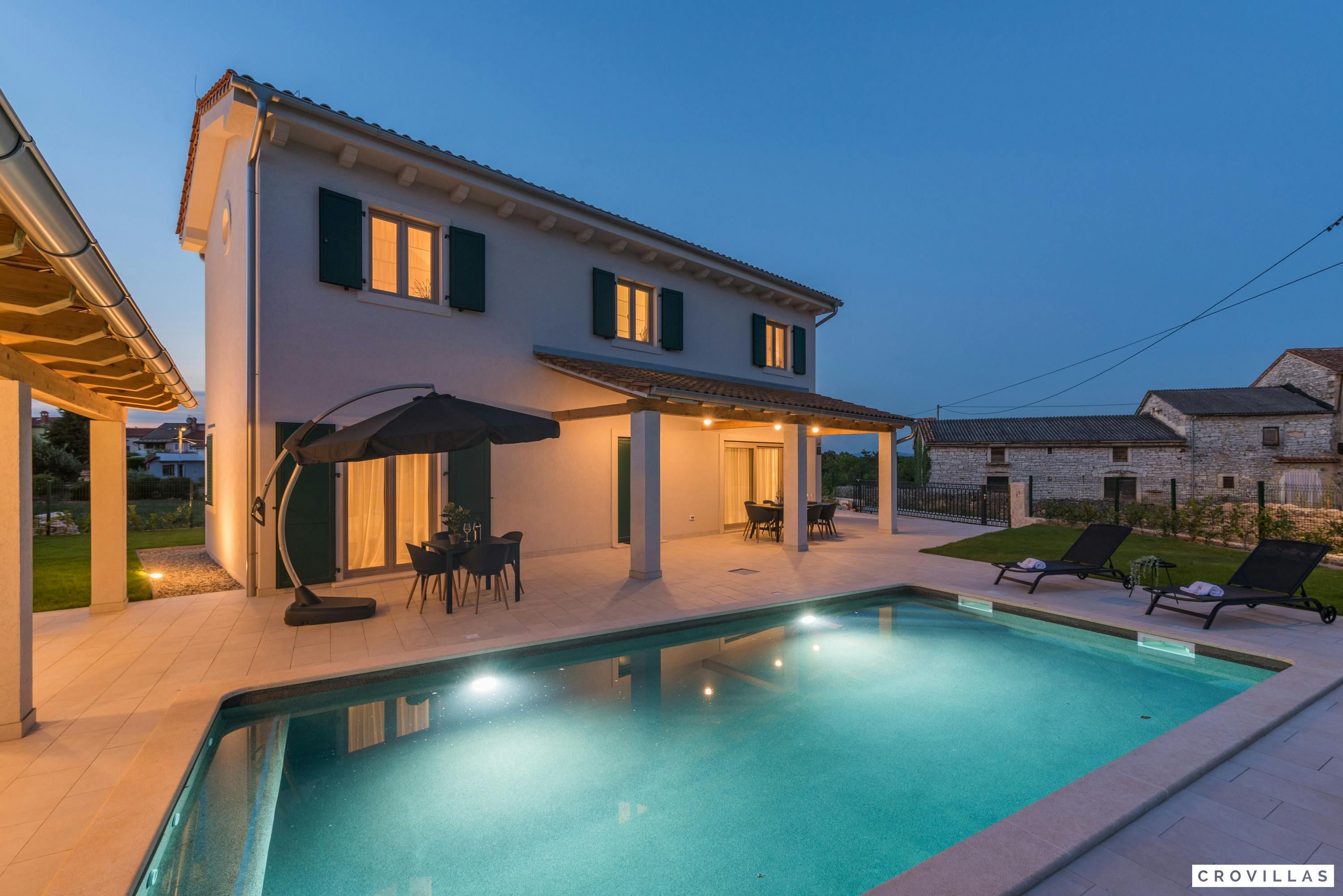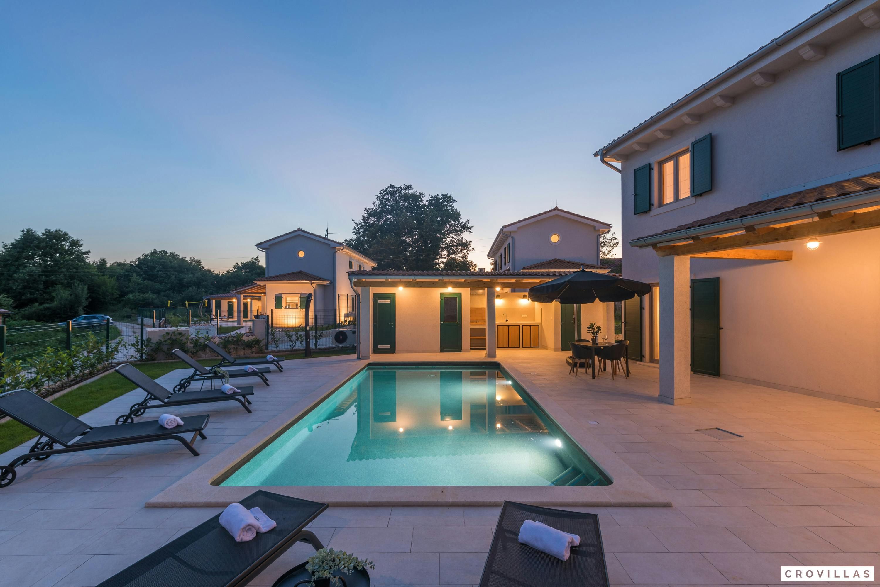 This charming villa offers a fantastic vacation experience with a range of activities for both adults and children. The saltwater pool can be heated on request, and the terrace and outdoor kitchen with a fixed grill provide a great space for dining and relaxation. The garden features a trampoline and soccer goals, while the steam sauna offers relaxation in serene surroundings. The interior is modern and friendly, with trendy highlights in each room. The open living area has a comfortable sofa bed for two people, as well as TV and fireplace for entertainment on bad weather days. The fully equipped kitchen is conveniently situated behind the living area, with a pretty dining table separating the two zones. With three bedrooms, each spread across the lower and upper floors, this villa comfortably sleeps friends and families. All year-round comfort is guaranteed by underfloor heating and air conditioning throughout the property.