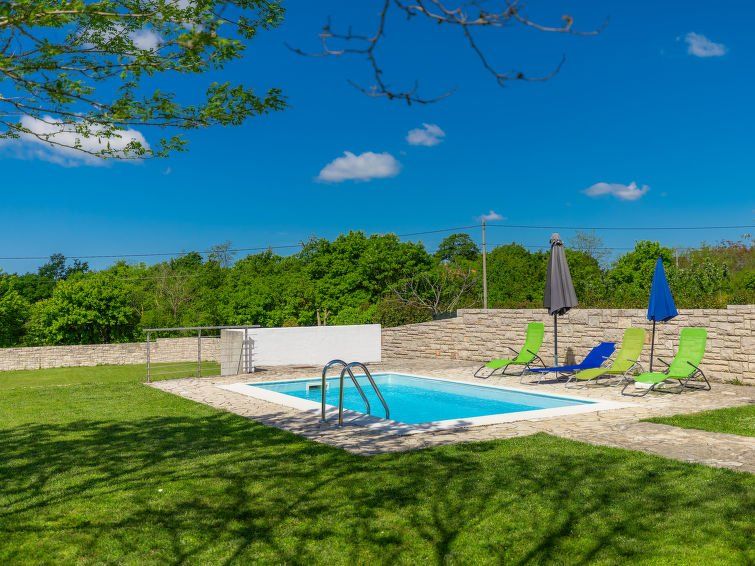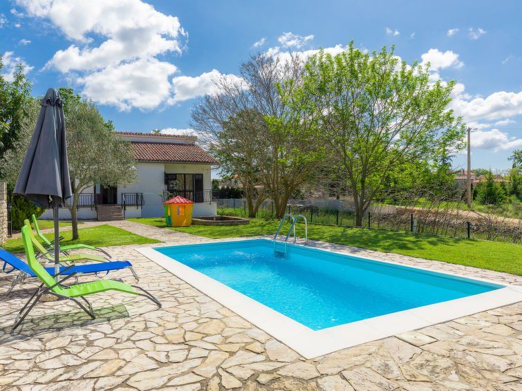 The Dora holiday home is a great house for a family with children. The house is clean, offers plenty of space, and has everything you need for a vacation. It has air conditioning, a fully equipped kitchen, a storage room, a dining room, a bathroom with a bathtub, bidet, and washing machine, and three bedrooms. Only the beds are a bit narrow (140cm). The pool is very nice and is cleaned every two to three days. There are two parasols and six sun loungers.