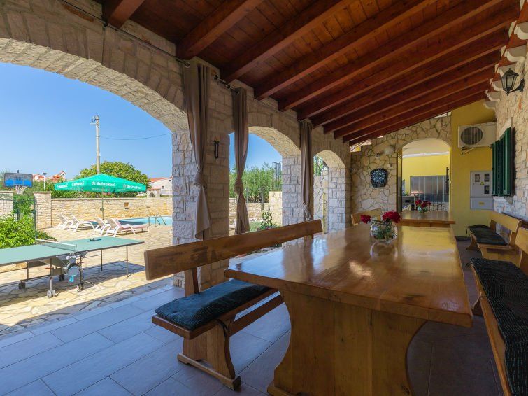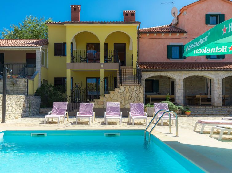 House located in a very quiet area, 7 minutes drive from the beach and restaurants. All apartments well equipped, including the right amount of dishes, coffee makers, hair dryers, dishwashers and washing machines. Bed linen and towels changed during your stay. Clean, pool cleaned regularly. Very nice host, always helpful and on site. From the minuses: quite far (about 12-15 minutes drive) to a larger store, not all bedrooms have air conditioning.