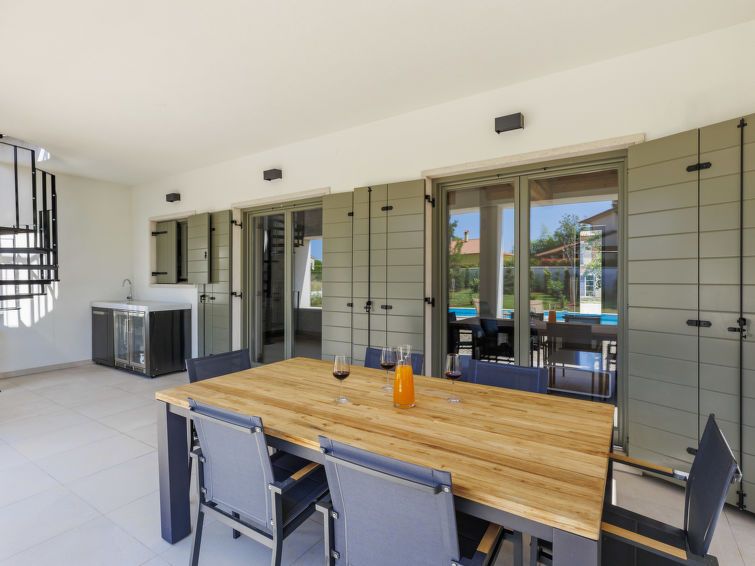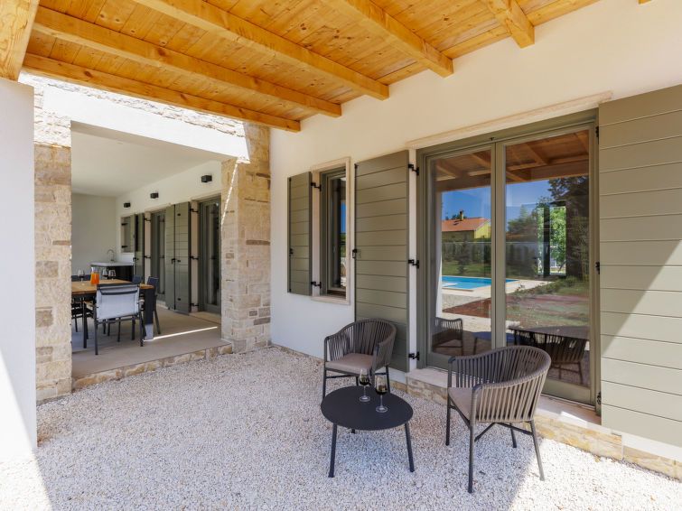 4-room villa 120 m2. Tasteful and cosy furnishings: living/dining room with satellite TV (flat screen), air conditioning. Exit to the terrace, to the swimming pool. 2 rooms, each room with 1 french bed (160 cm, length 200 cm), satellite TV (flat screen), air conditioning. 1 room with 2 beds (90 cm, length 200 cm), satellite TV (flat screen), air conditioning.