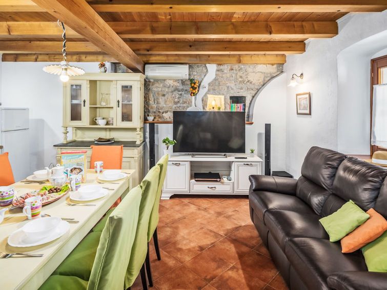 4-room semi-detached house 140 m2 on 3 levels. Rustic and tasteful furnishings: living/dining room with open-hearth fireplace (only for decoration), satellite TV and air conditioning. Exit to the terrace. 1 room with 1 french bed (180 cm, length 200 cm). Open kitchen (oven, dishwasher, 4 ceramic glass hob hotplates, toaster, kettle, microwave, freezer, electric coffee machine).