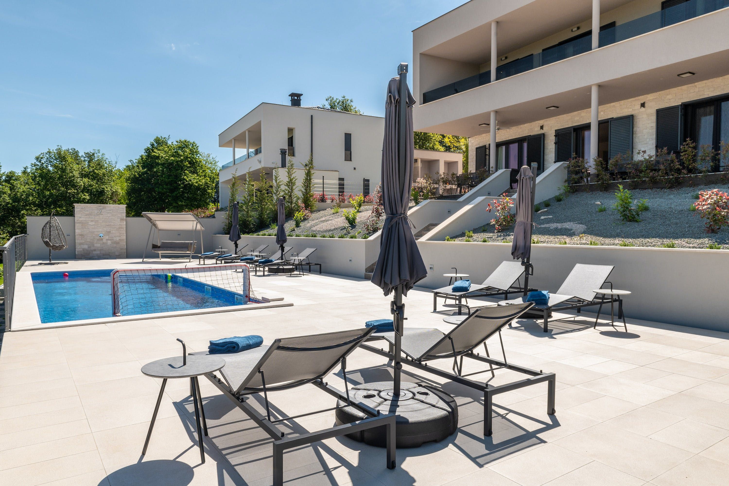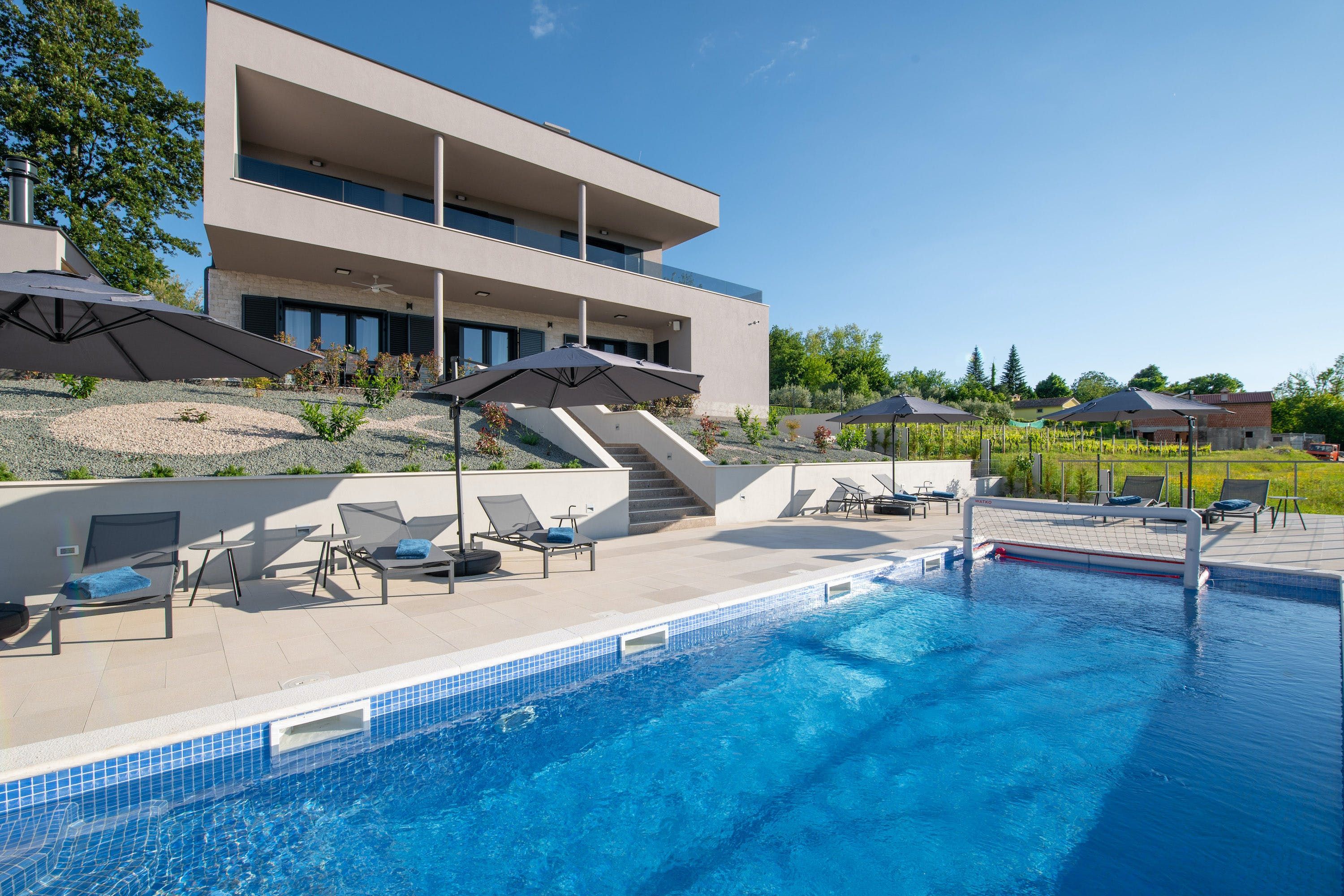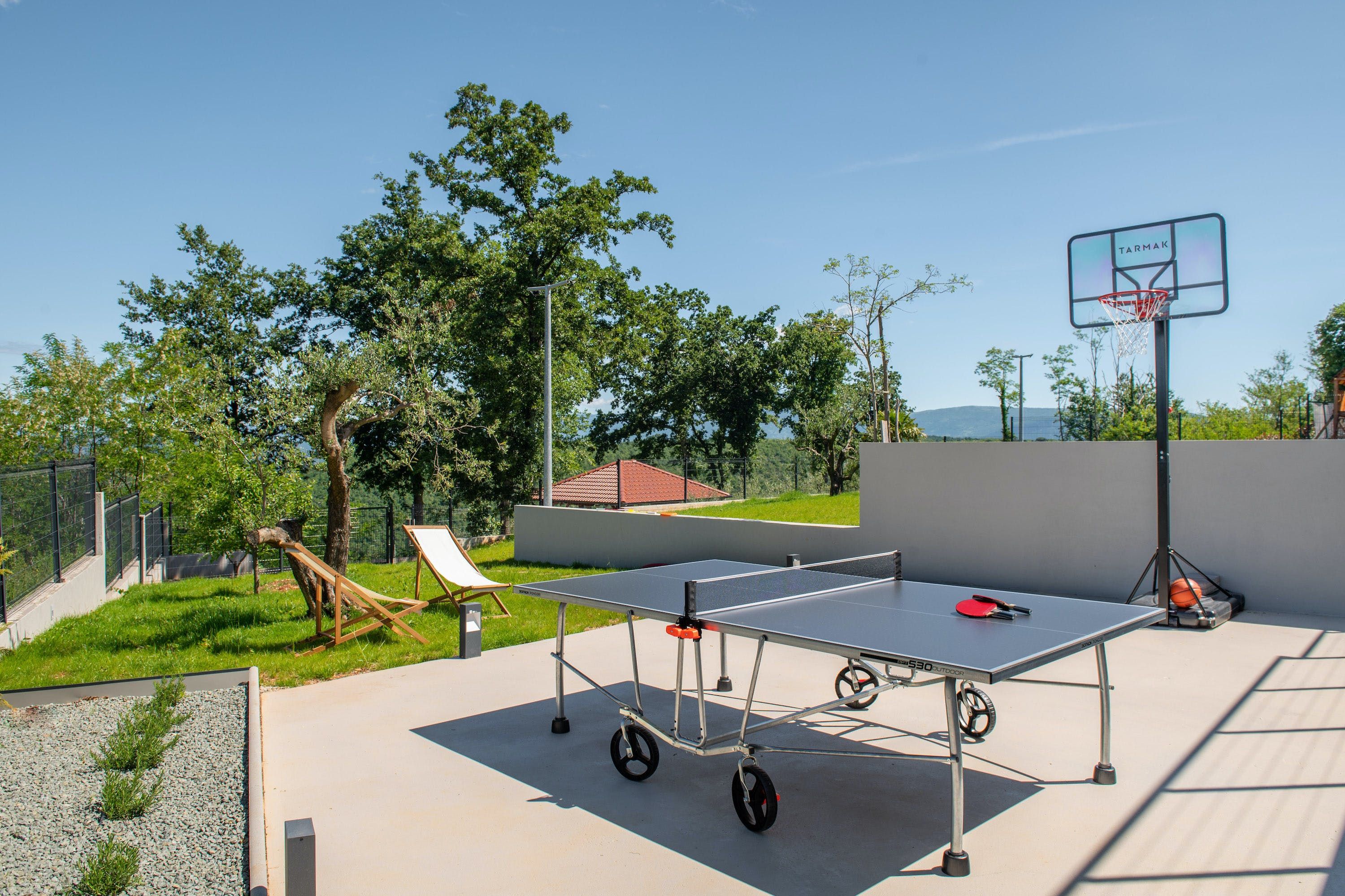 Nestled on a hillside, this stunning villa invites you to step away from the tourist trail and enjoy the rural beauty of Istria. There’s more than one terrace where you can unwind with a drink, but it’s equally tempting to head down to the garden and take a dip in the pool. There’s plenty of entertainment for younger guests (or those young at heart), with a ping-pong table, basketball hoop, and soccer goals enabling you to make the most of the outdoor space. It wouldn’t be a Croatian holiday without a trip to the beach – it’s a thirty-minute drive to Lanterna beach, or take the short ferry trip to Cres to explore a rugged, pristine island.