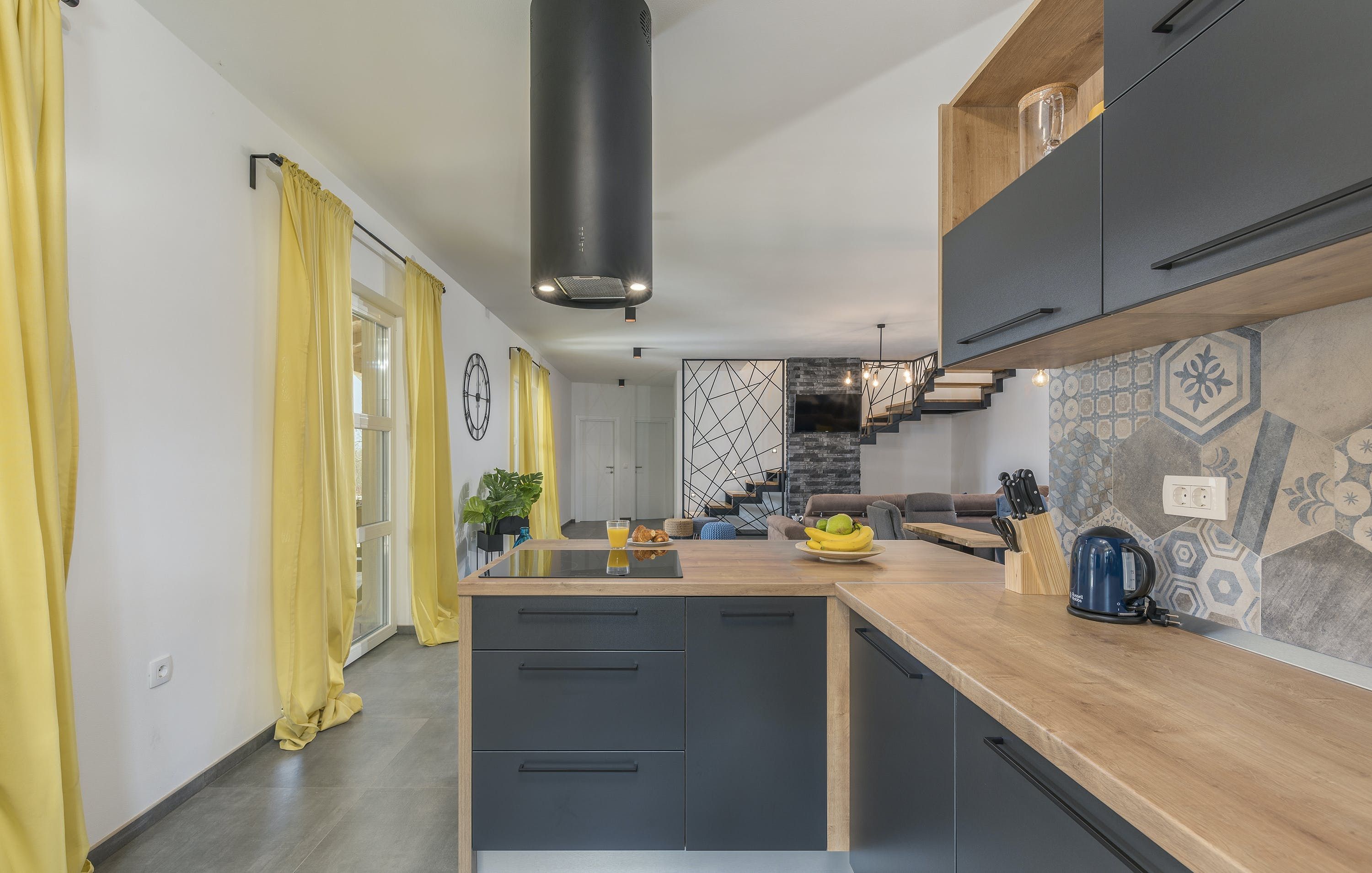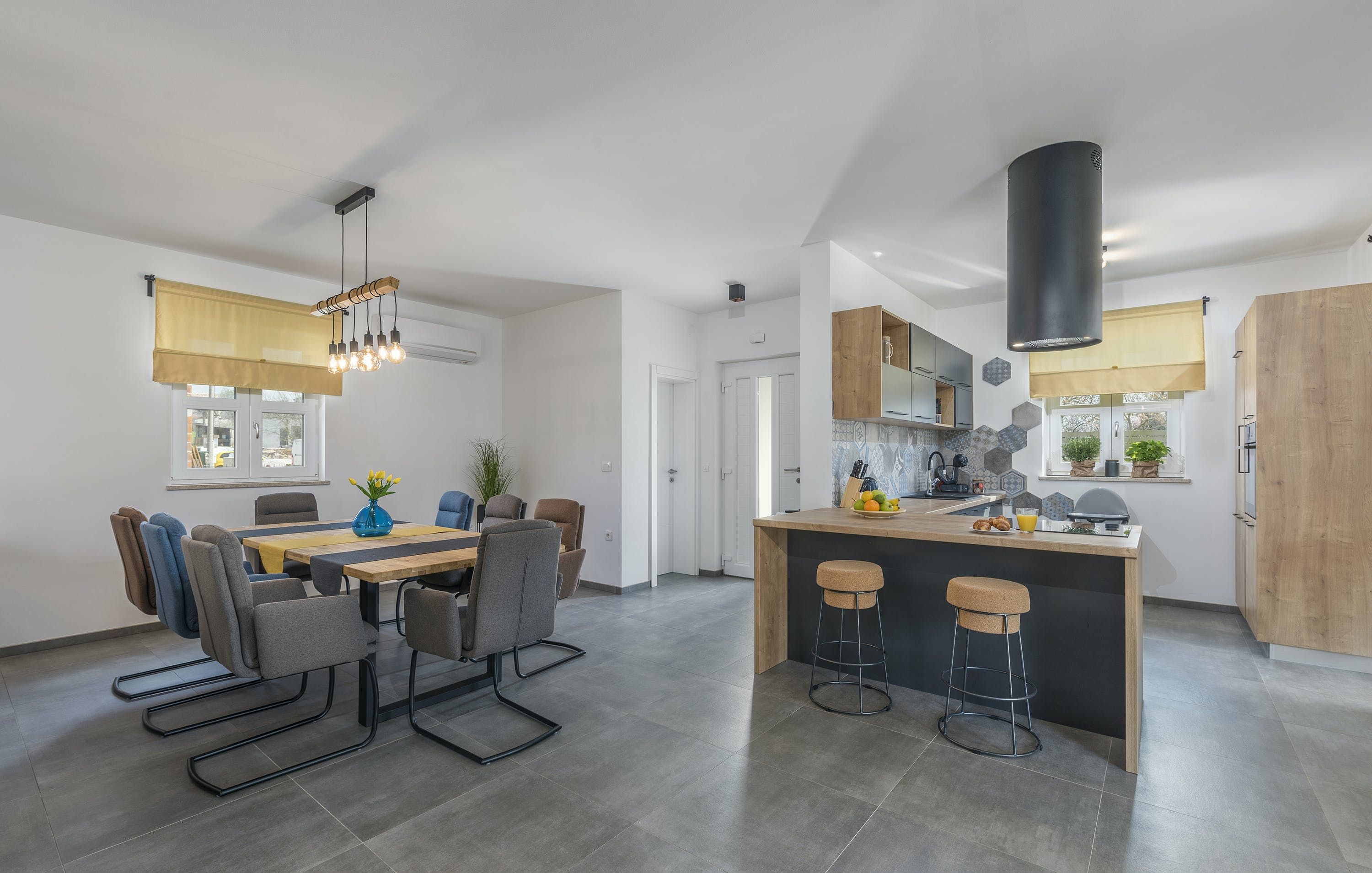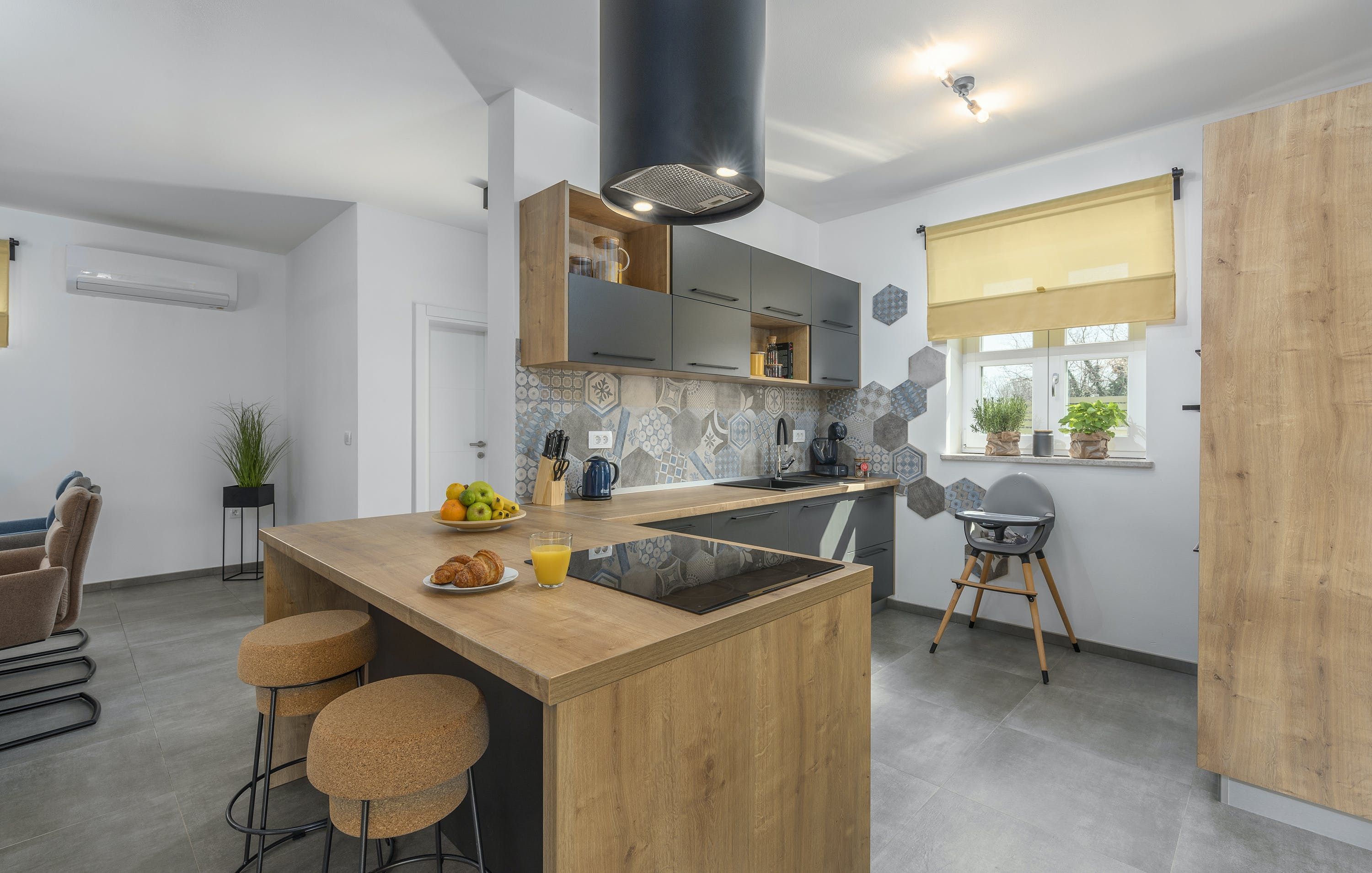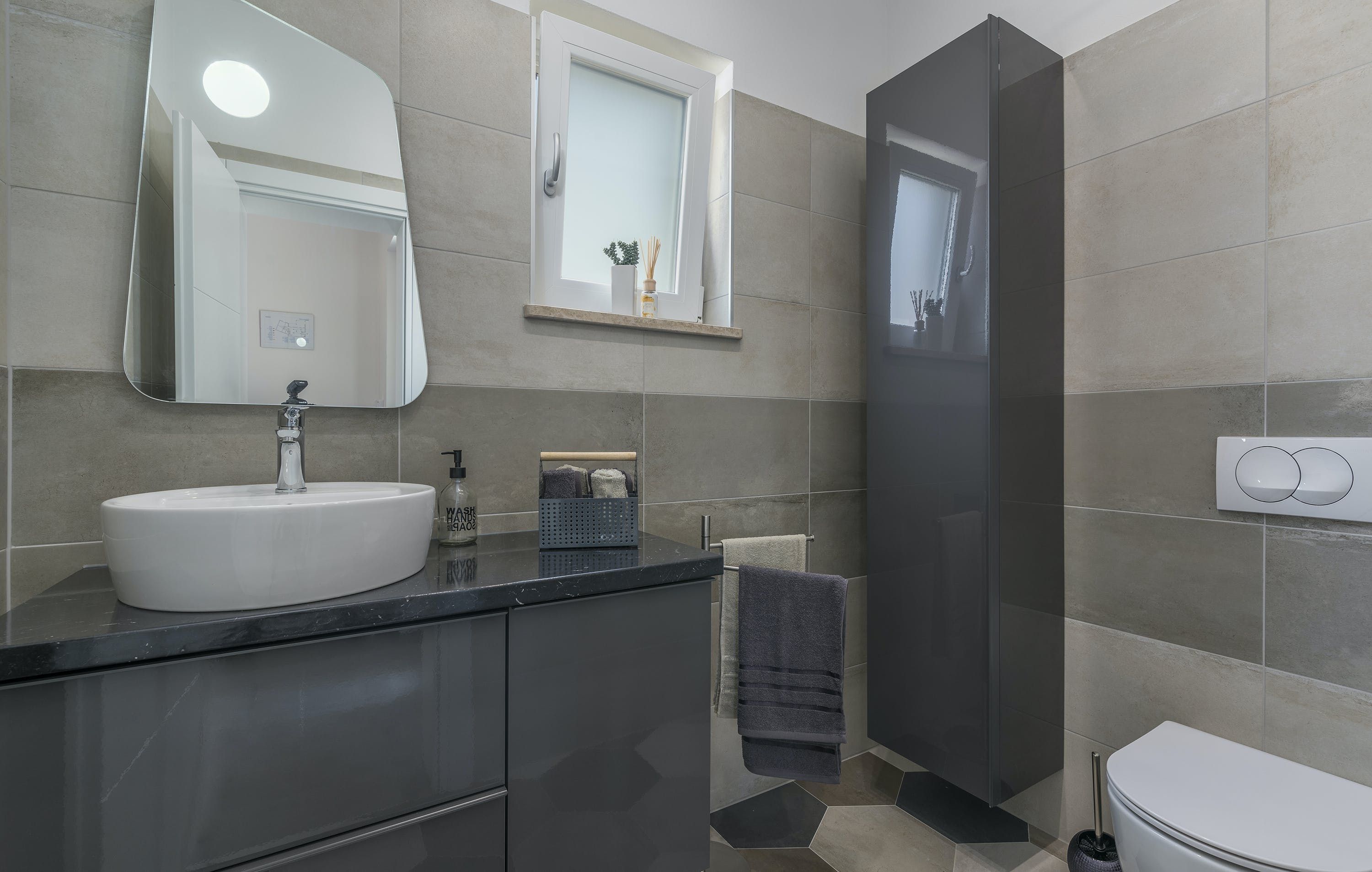 This charming villa boasts an impressive outdoor paradise that is completely fenced and well-maintained. Guests can enjoy covered and open seating areas, a charcoal grill, hanging relax chairs, deckchairs and loungers, a heatable 40m² mosaic-studded pool, and a whirlpool. Children can also enjoy the playground and ping-pong table on the beautiful lawn. Two bicycles are available for guests who want to explore the area. Inside, the trendy living-dining room has an integrated kitchen with a small children's corner, perfect for spending time together without having to coordinate. The three super comfortable bedrooms are designed with lots of wood, gray and brown tones to provide an extra cosy touch. The first floor has a double bedroom with en suite shower room and direct access to the pool, as well as a second bedroom for two plus en suite shower room with a practical guest toilet. The upper floor houses the other two bedrooms - one with access to the balcony, both with bath en suite. Overall, this charming villa is a great choice for those looking for a high feel-good factor.