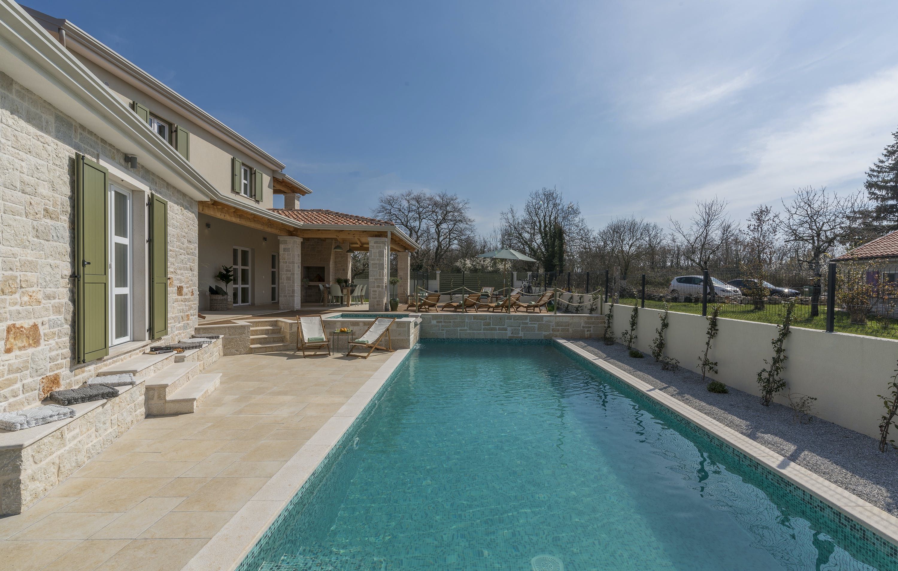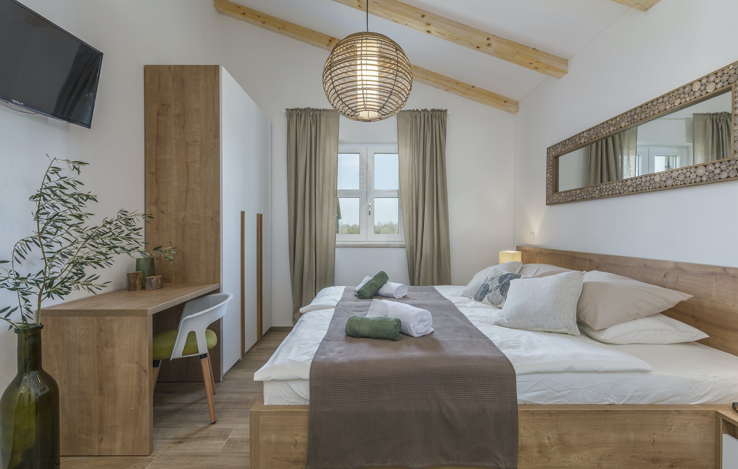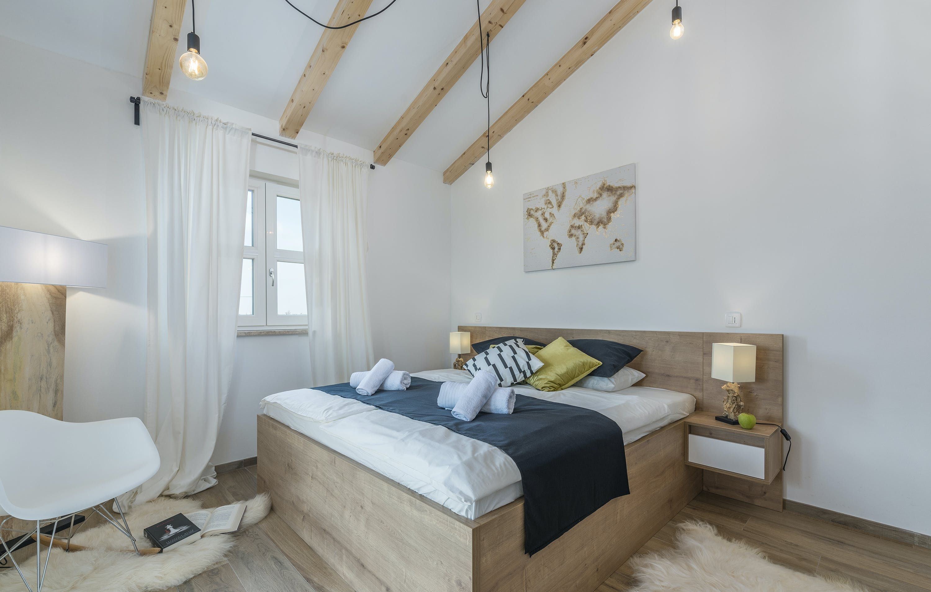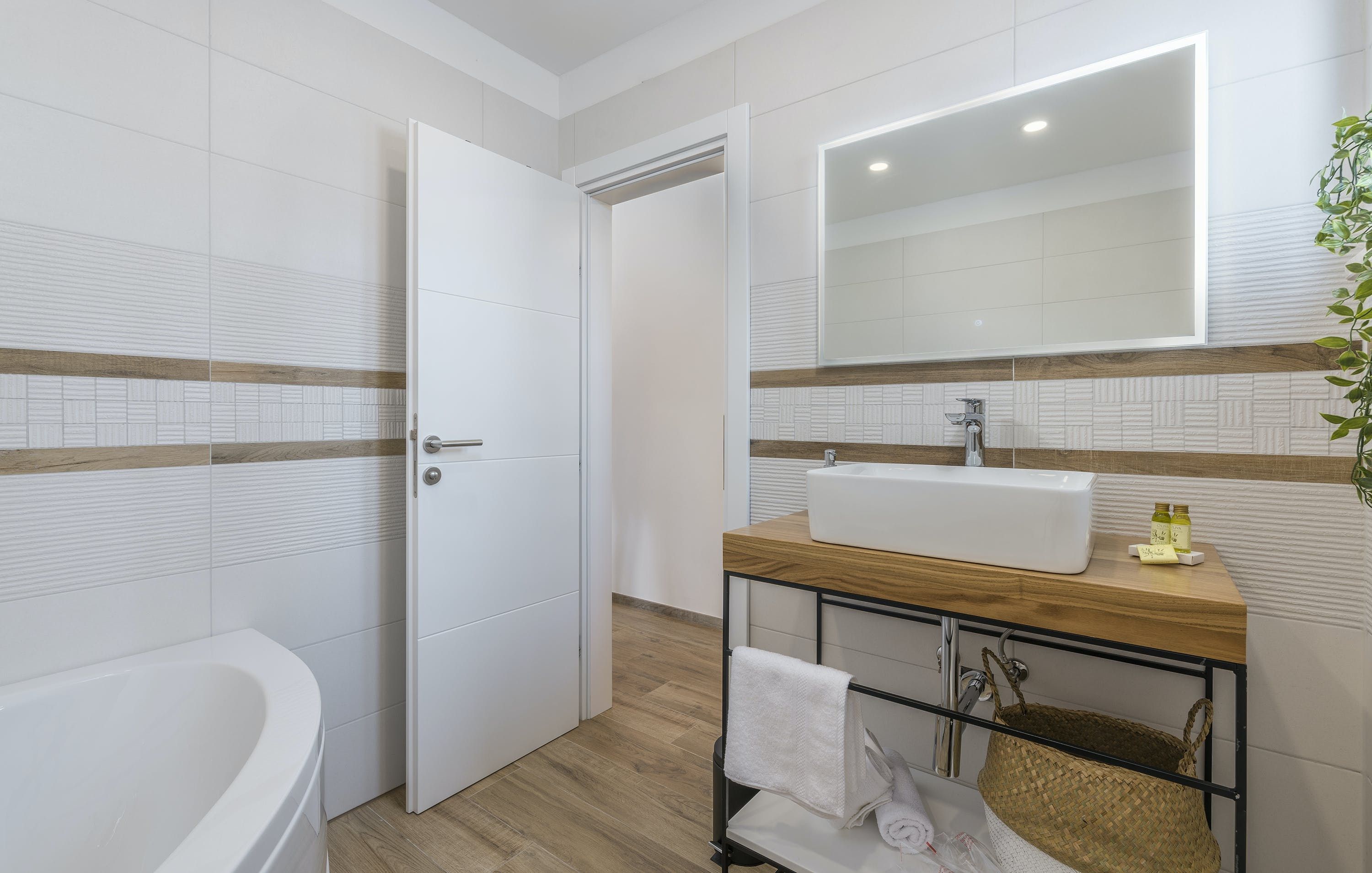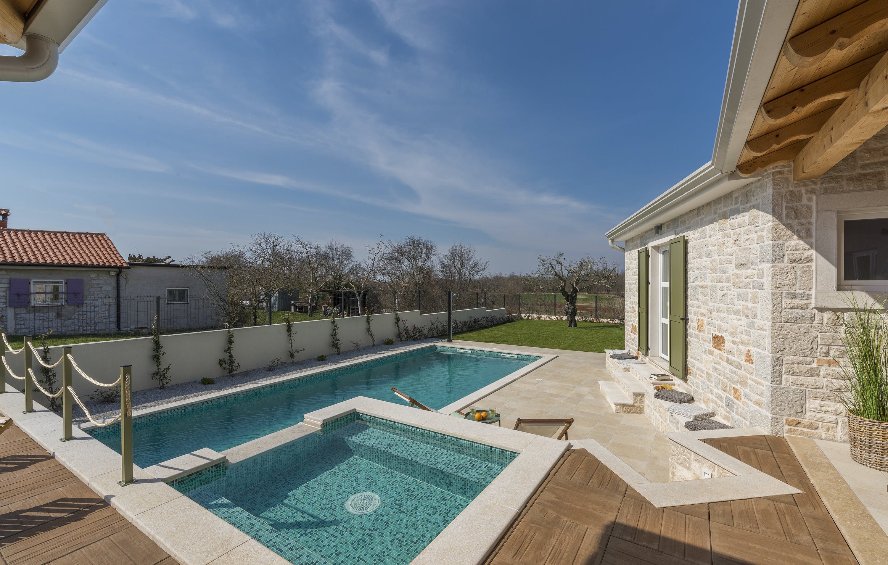 This charming villa boasts an impressive outdoor paradise that is completely fenced and well-maintained. Guests can enjoy covered and open seating areas, a charcoal grill, hanging relax chairs, deckchairs and loungers, a heatable 40m² mosaic-studded pool, and a whirlpool. Children can also enjoy the playground and ping-pong table on the beautiful lawn. Two bicycles are available for guests who want to explore the area. Inside, the trendy living-dining room has an integrated kitchen with a small children's corner, perfect for spending time together without having to coordinate. The three super comfortable bedrooms are designed with lots of wood, gray and brown tones to provide an extra cosy touch. The first floor has a double bedroom with en suite shower room and direct access to the pool, as well as a second bedroom for two plus en suite shower room with a practical guest toilet. The upper floor houses the other two bedrooms - one with access to the balcony, both with bath en suite. Overall, this charming villa is a great choice for those looking for a high feel-good factor.
