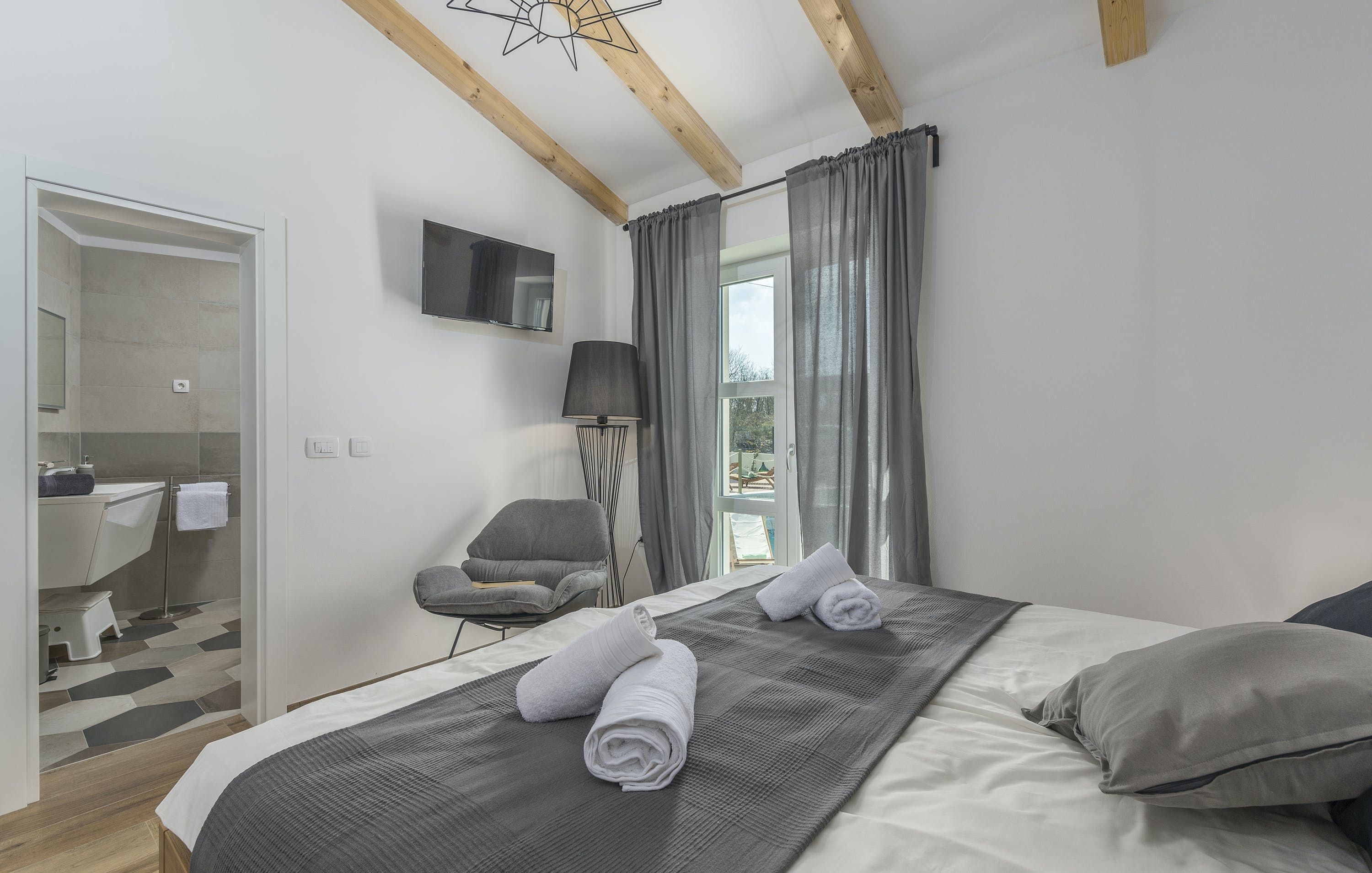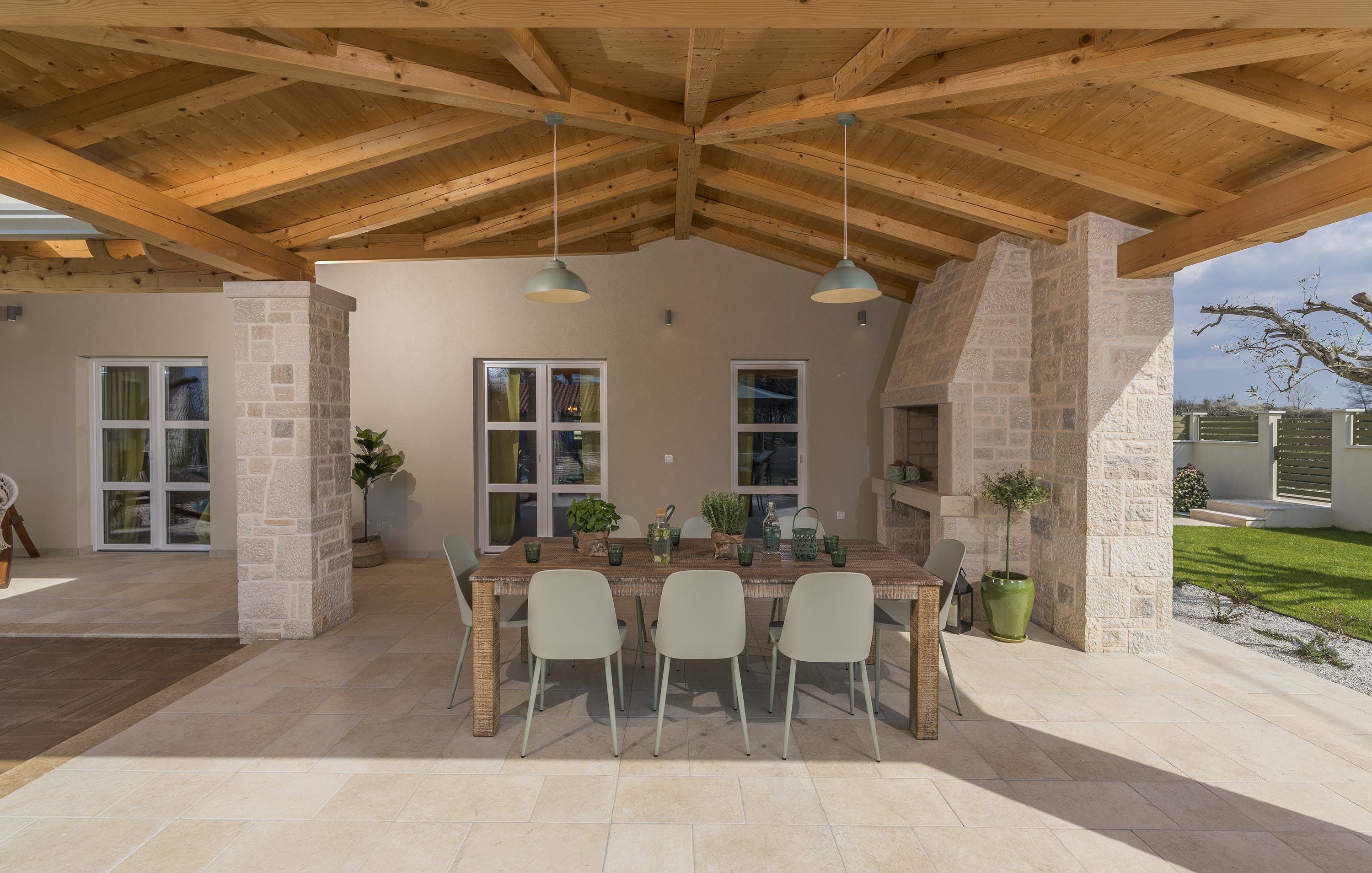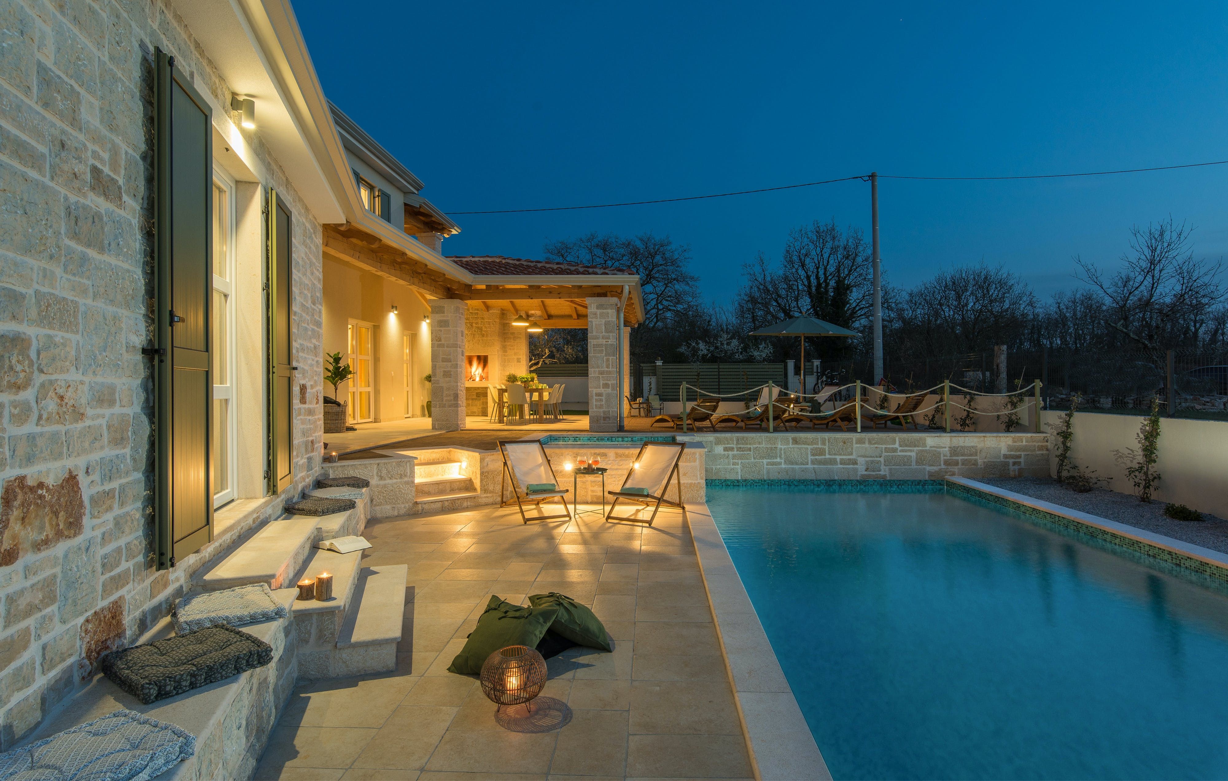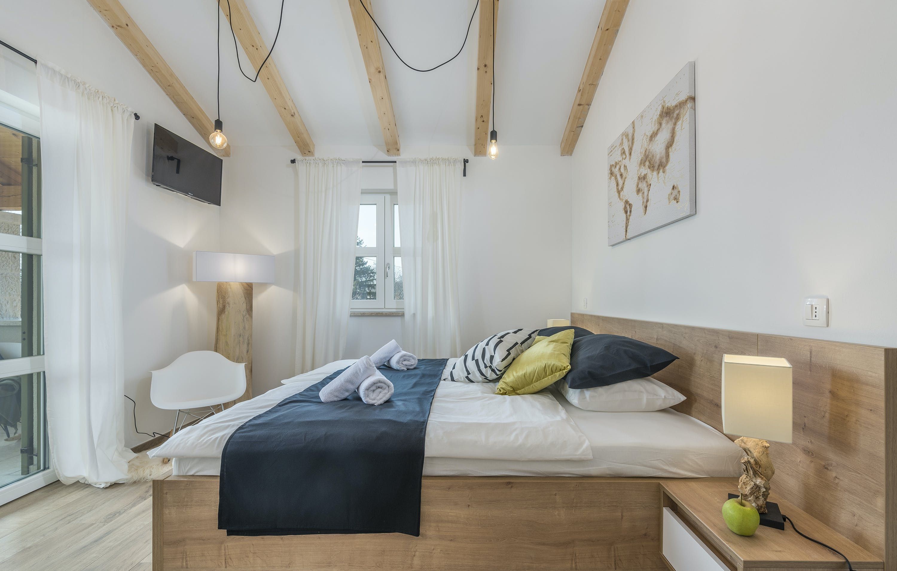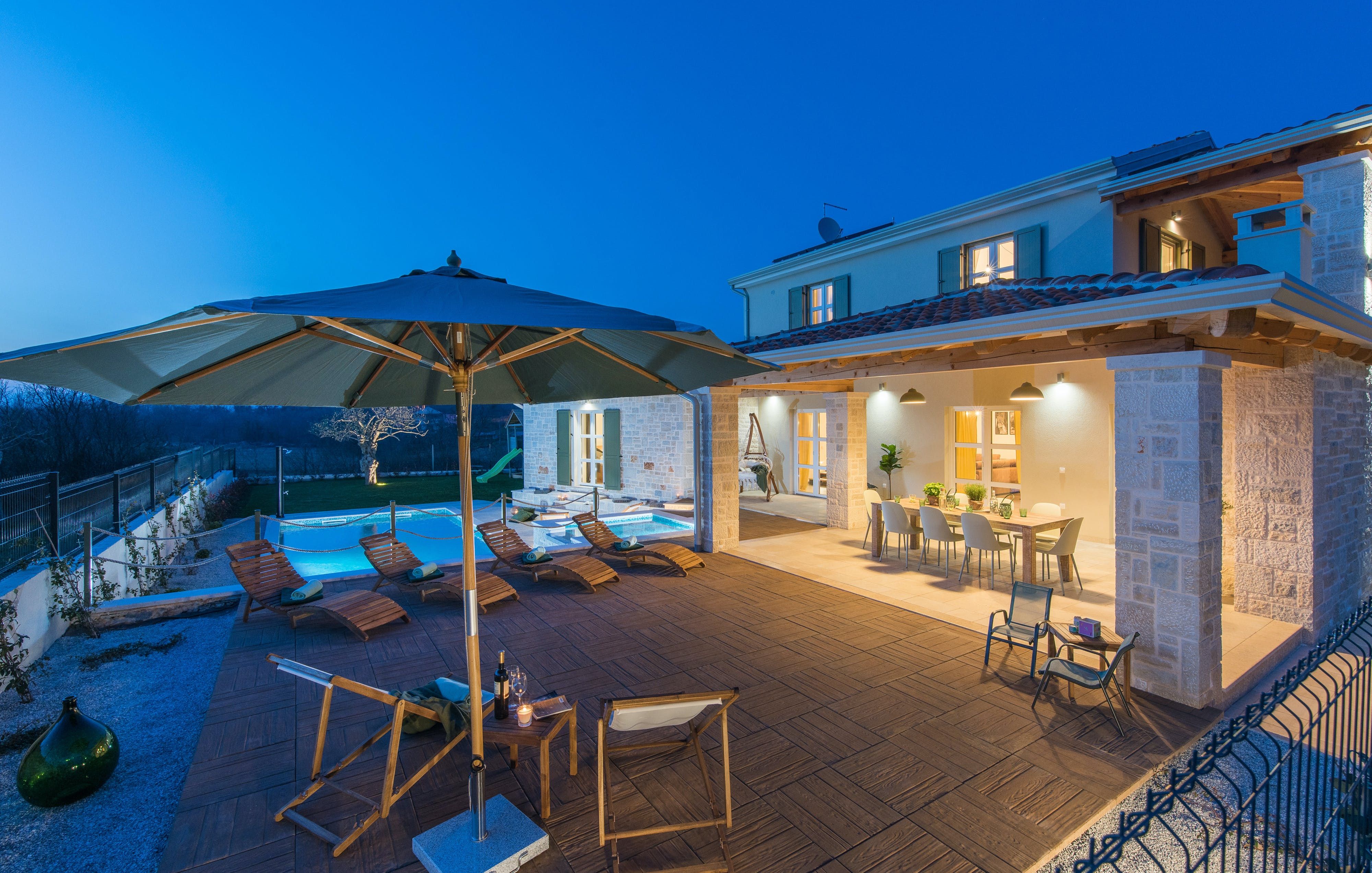 This charming villa boasts an impressive outdoor paradise that is completely fenced and well-maintained. Guests can enjoy covered and open seating areas, a charcoal grill, hanging relax chairs, deckchairs and loungers, a heatable 40m² mosaic-studded pool, and a whirlpool. Children can also enjoy the playground and ping-pong table on the beautiful lawn. Two bicycles are available for guests who want to explore the area. Inside, the trendy living-dining room has an integrated kitchen with a small children's corner, perfect for spending time together without having to coordinate. The three super comfortable bedrooms are designed with lots of wood, gray and brown tones to provide an extra cosy touch. The first floor has a double bedroom with en suite shower room and direct access to the pool, as well as a second bedroom for two plus en suite shower room with a practical guest toilet. The upper floor houses the other two bedrooms - one with access to the balcony, both with bath en suite. Overall, this charming villa is a great choice for those looking for a high feel-good factor.