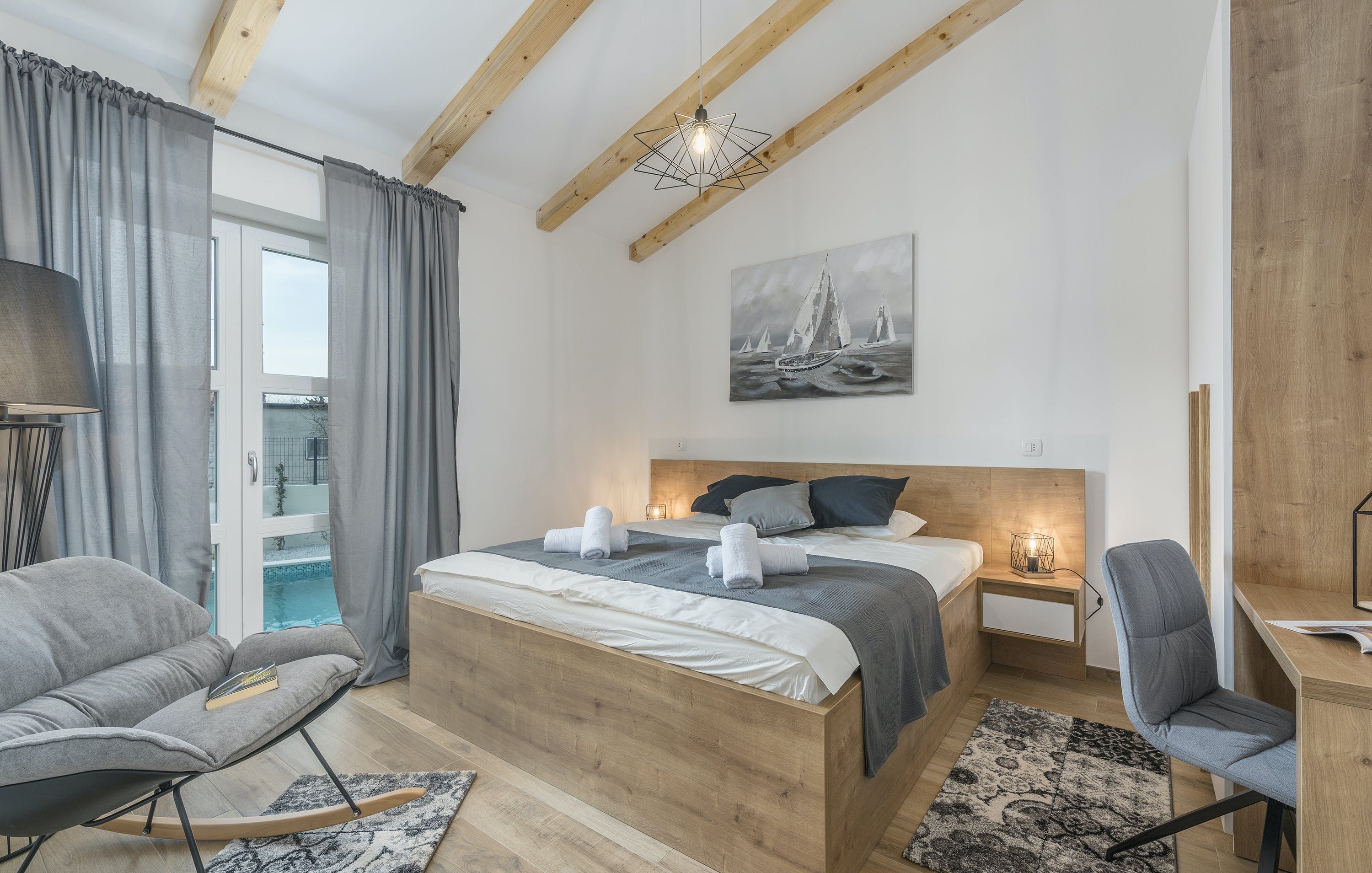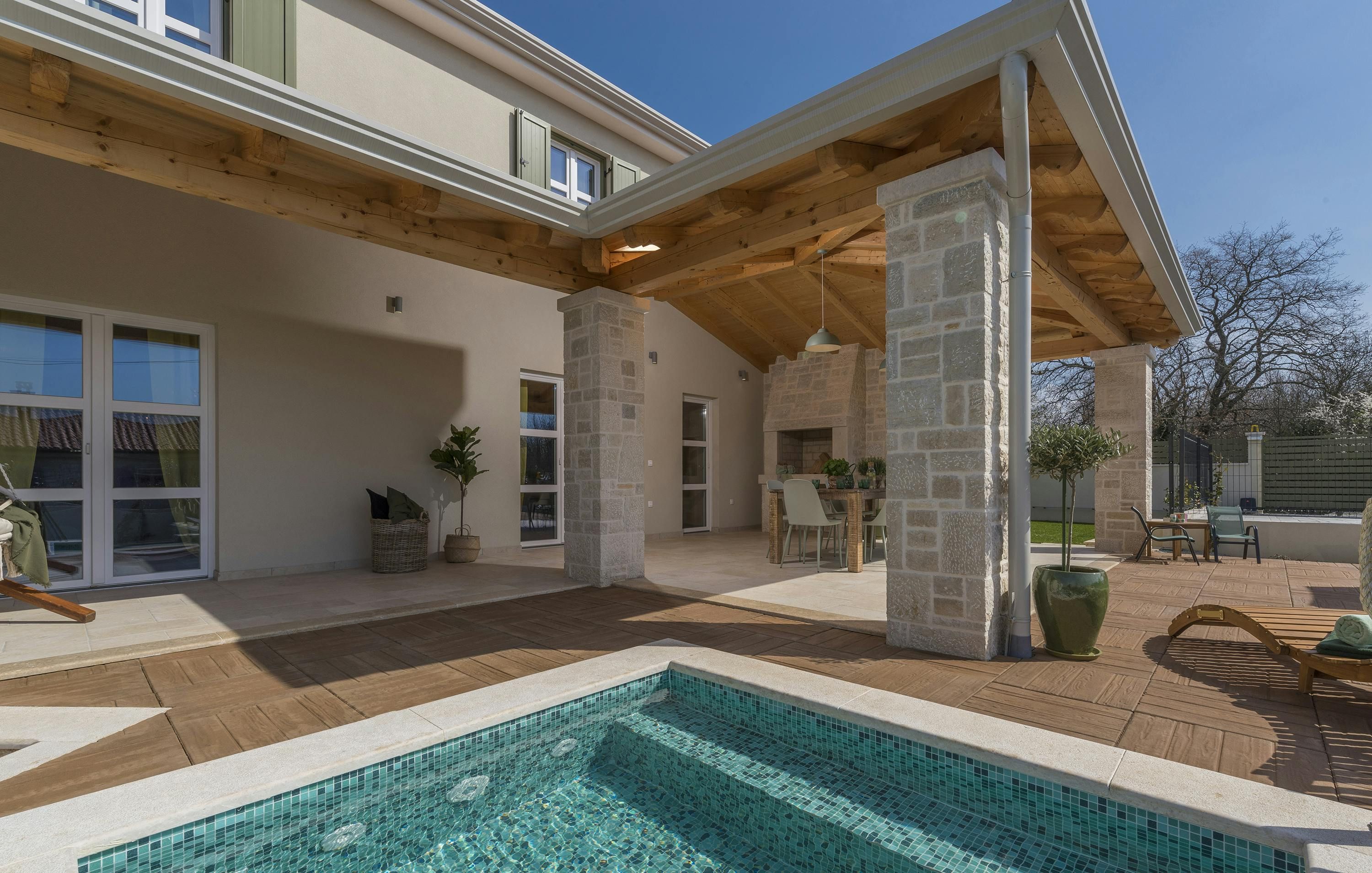 Just fifteen minutes from the sea, this pet-friendly villa makes the most of outdoor living, with plenty of spots to lounge, gather, or entertain. There’s a pool to cool off in, a hot tub to soak under the stars, and a small children’s pool plus a playground for little ones. The countryside location feels wonderfully tranquil, yet shops and restaurants are a short drive away, or you can take the villa’s bicycles for a spin. Brijuni National Park is less than an hour away, making it easy to plan a day out if you’re in the mood for a little adventure.