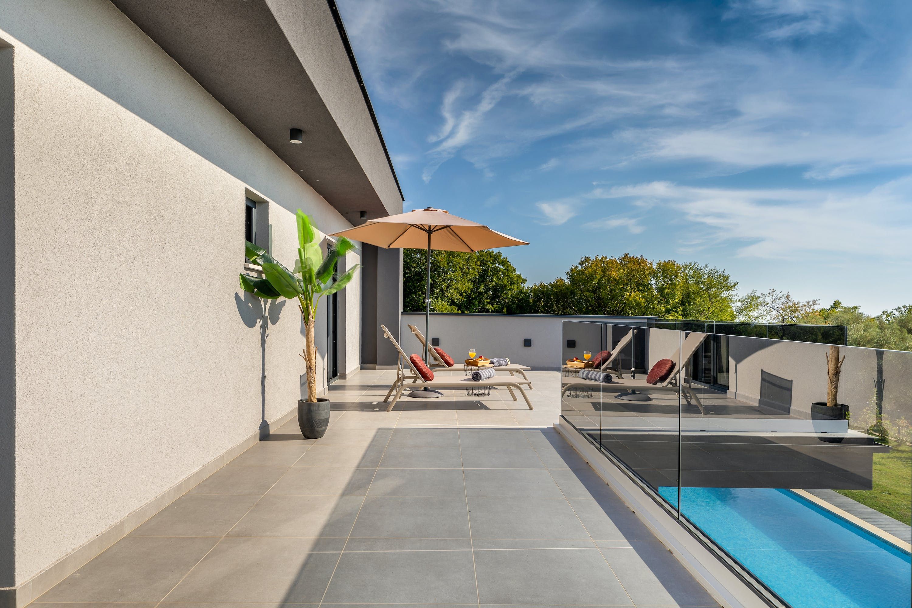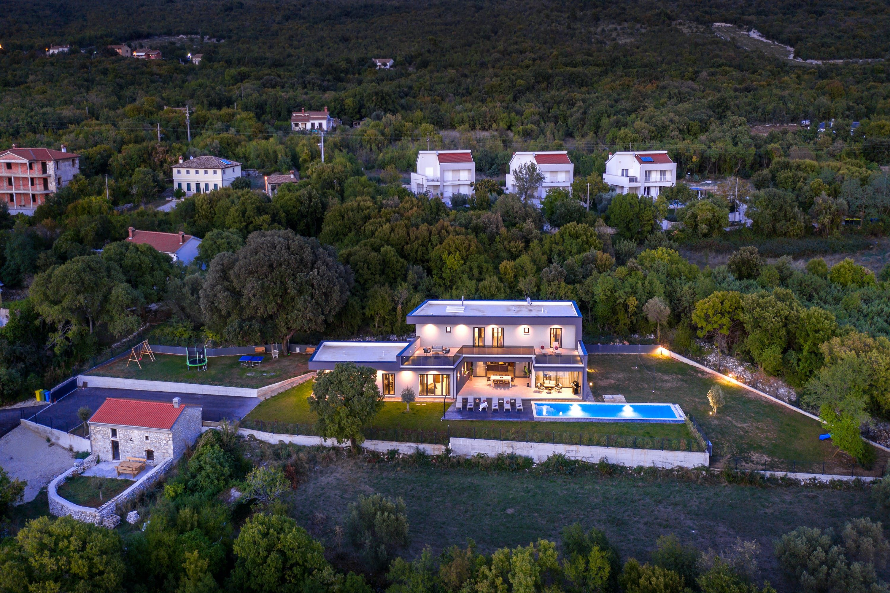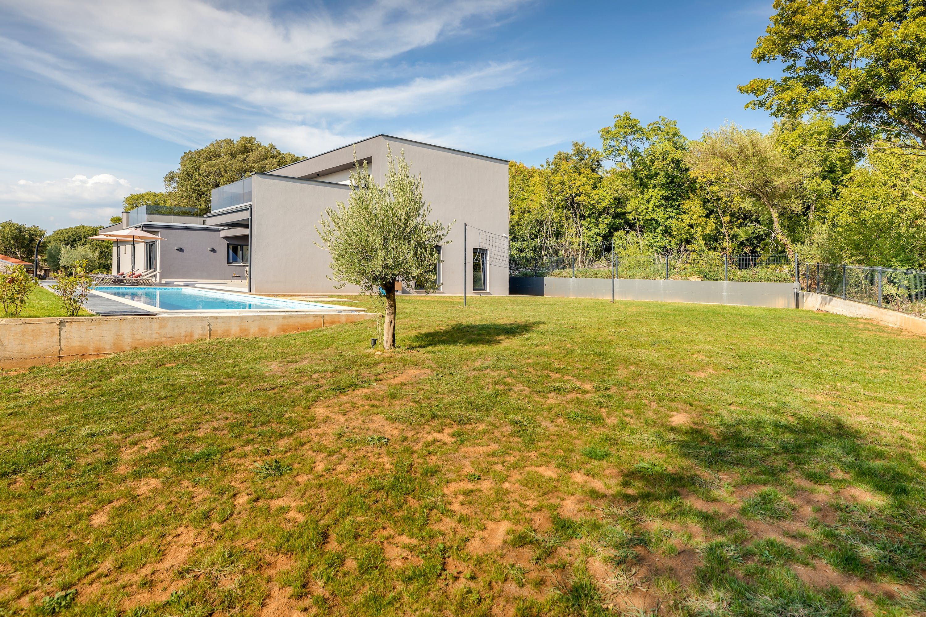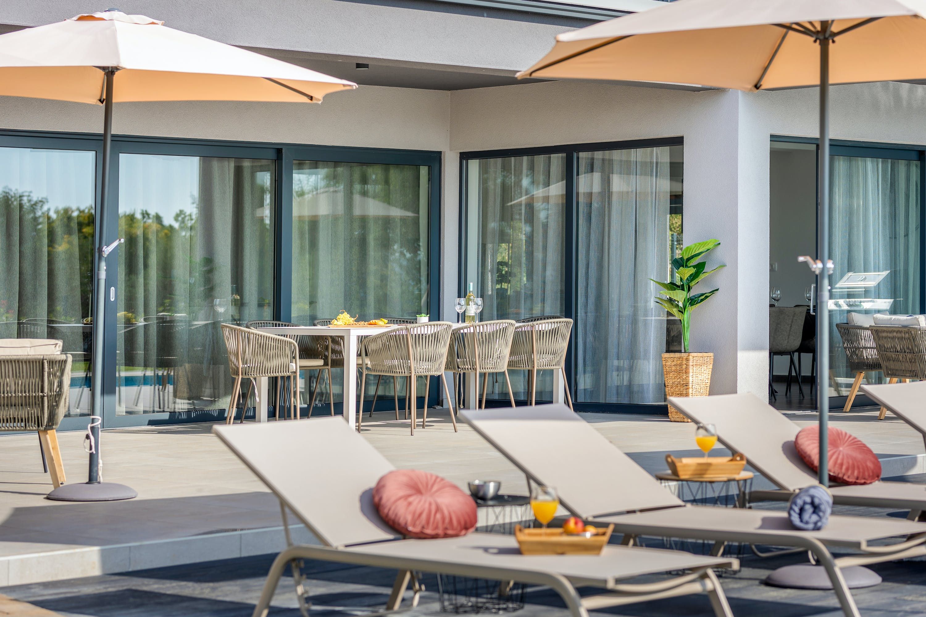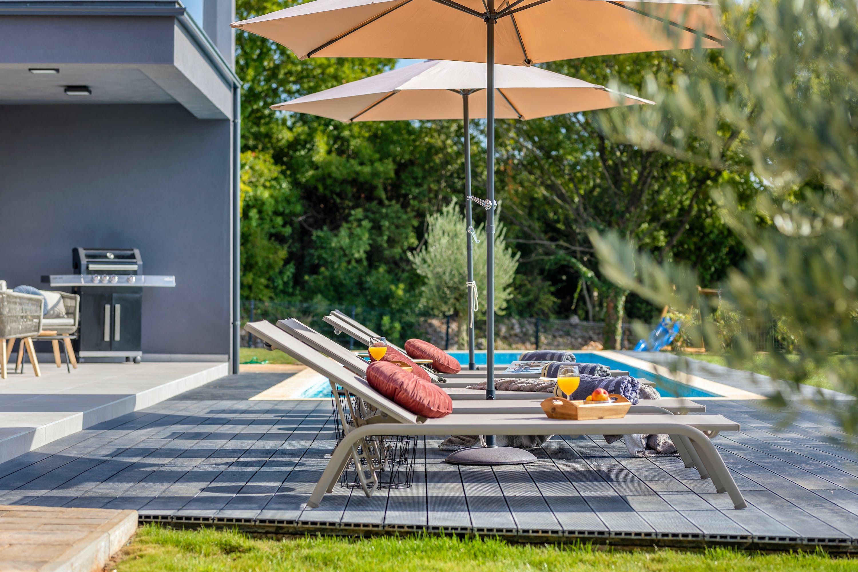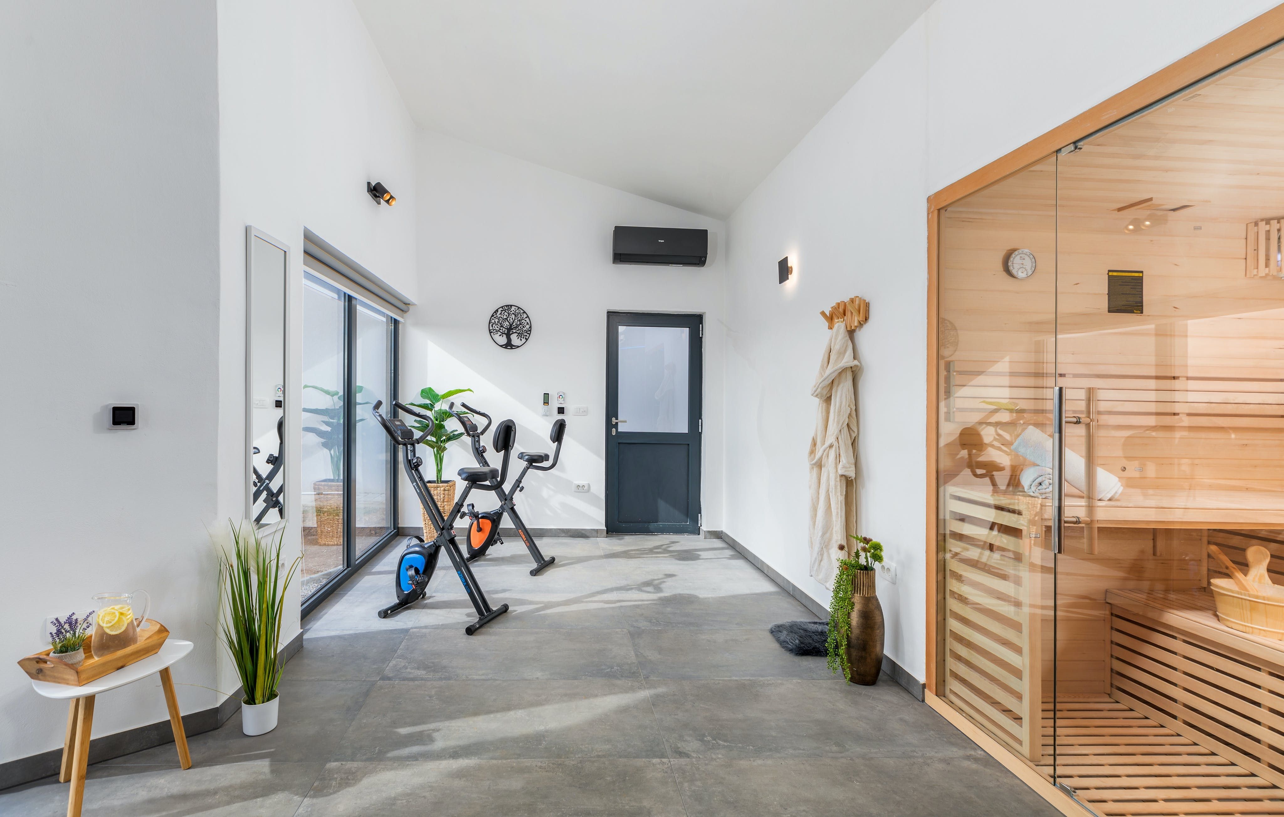 This luxurious villa is nestled on a hillside surrounded by lush greenery and old trees, offering stunning views of the surrounding landscape. The 15-meter pool, which can be heated upon request, is perfect for a refreshing swim or relaxing on the adjacent sun deck with comfortable sunbeds and shady umbrellas. The covered terrace features a dining table, two cosy lounges, and a gas grill, while the stone outhouse offers a seating area, brick barbecue, small tavern, and billiard table for an enjoyable end to the day. The open-plan living and dining area is elegantly designed with attention to detail and ample seating for all guests at the large dining table. The fully equipped kitchen leaves nothing to be desired. This six-bedroom villa on two floors is fully air-conditioned with each room having its own chic en suite bathroom and TV. Three bedrooms on the upper floor offer access to the balcony with a lounge area boasting magnificent views. Guests can also enjoy the wellness amenities of a sauna and Jacuzzi. This property is a glamorous complete package of not everyday amenities.