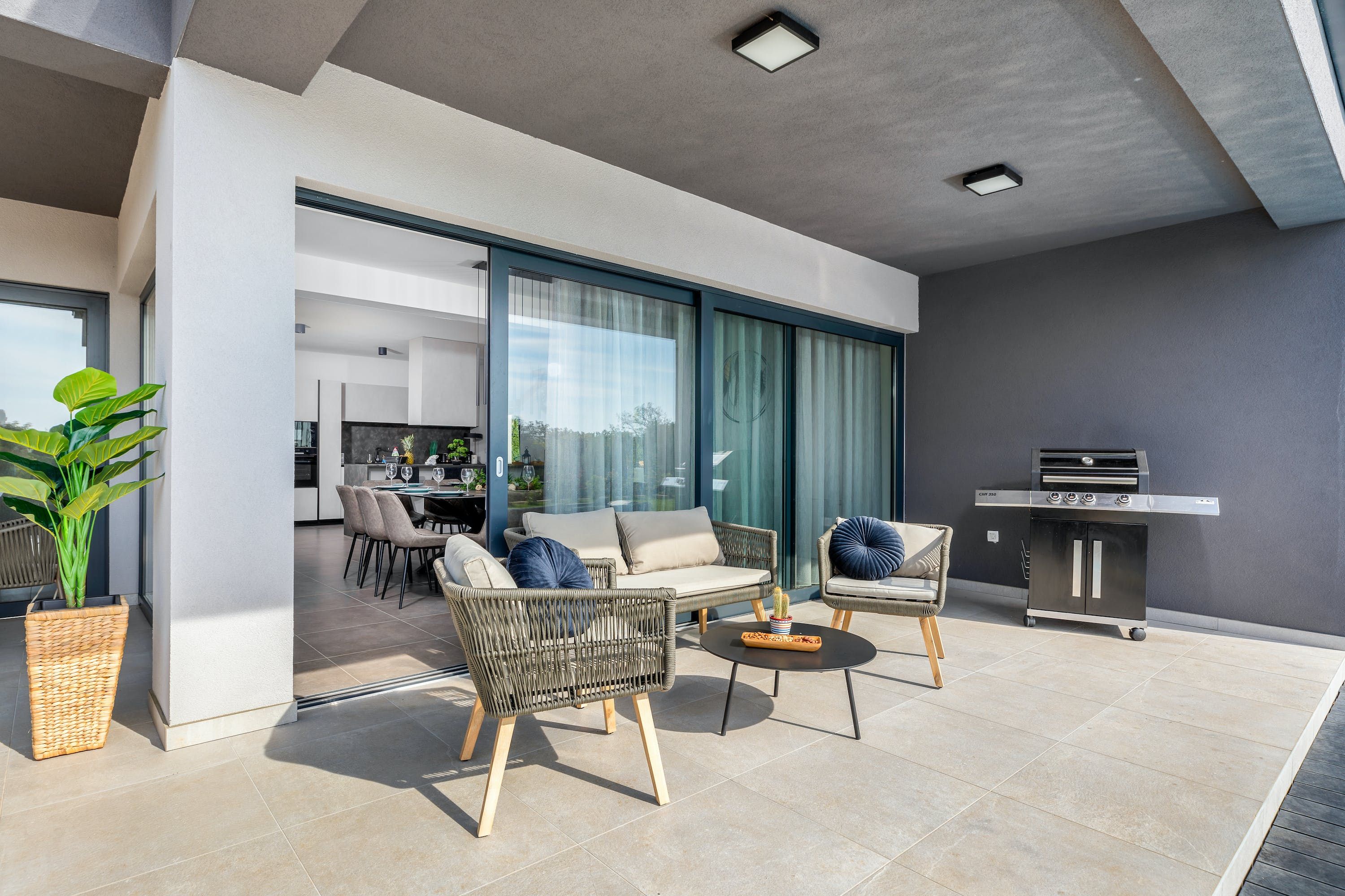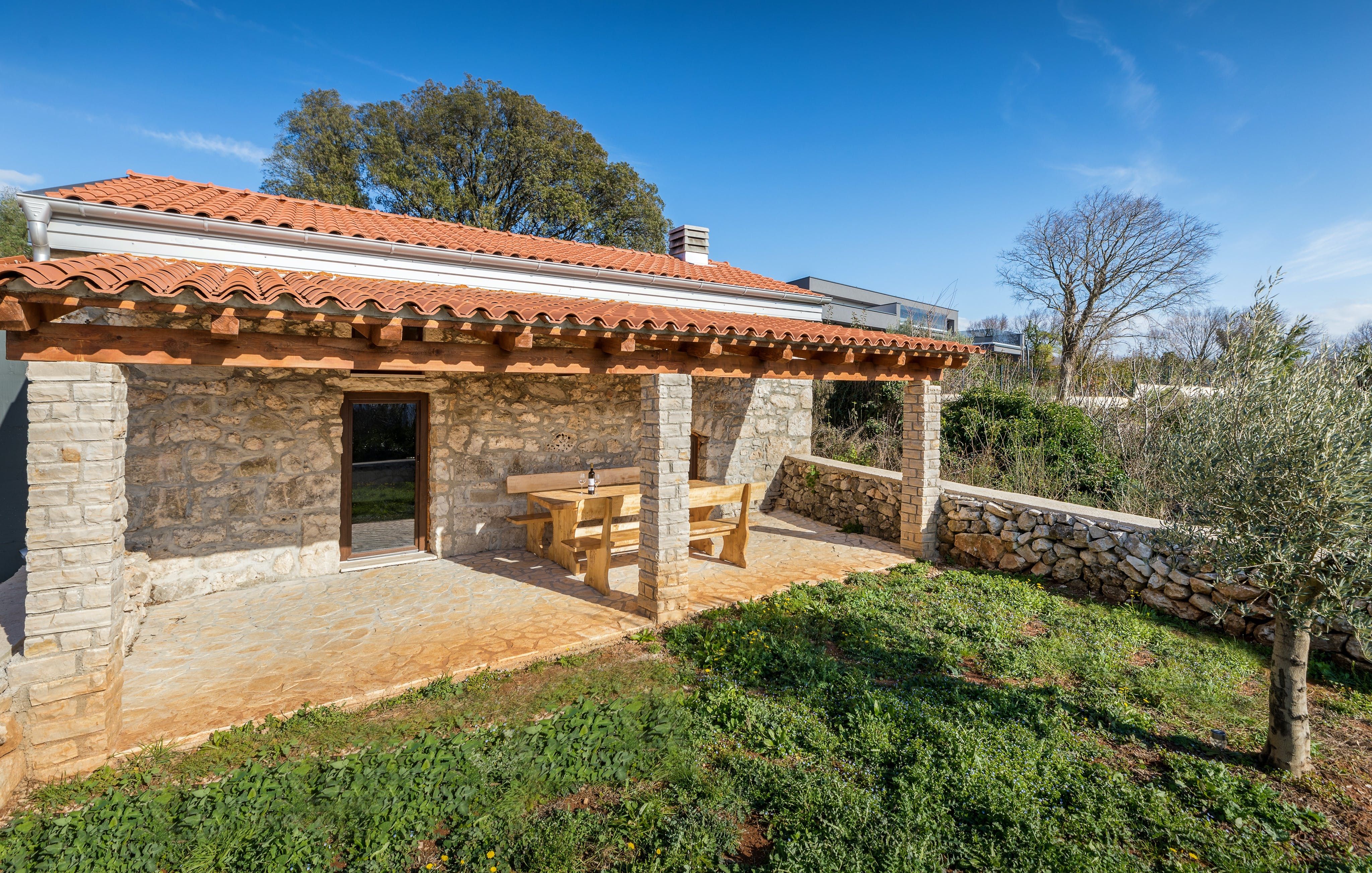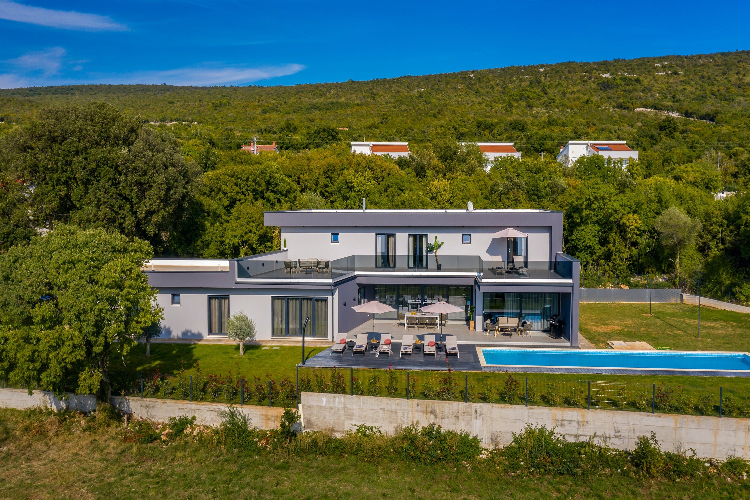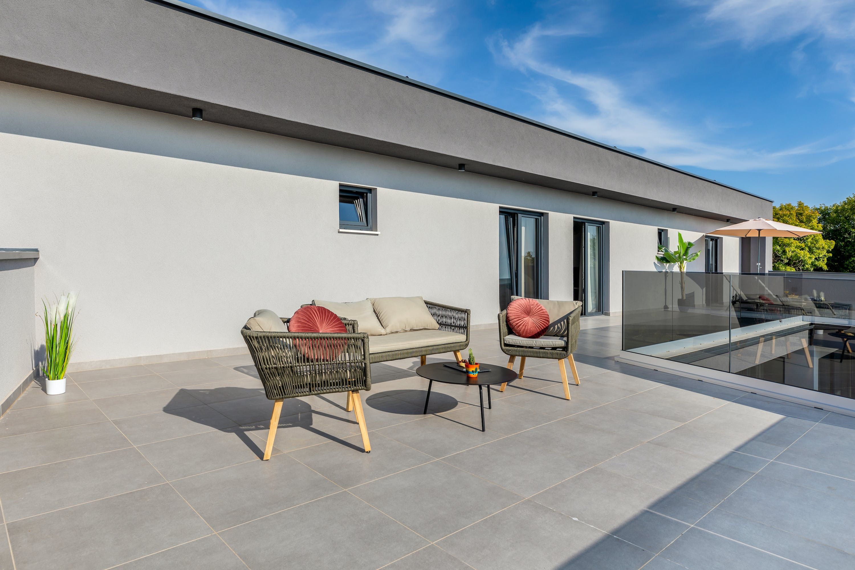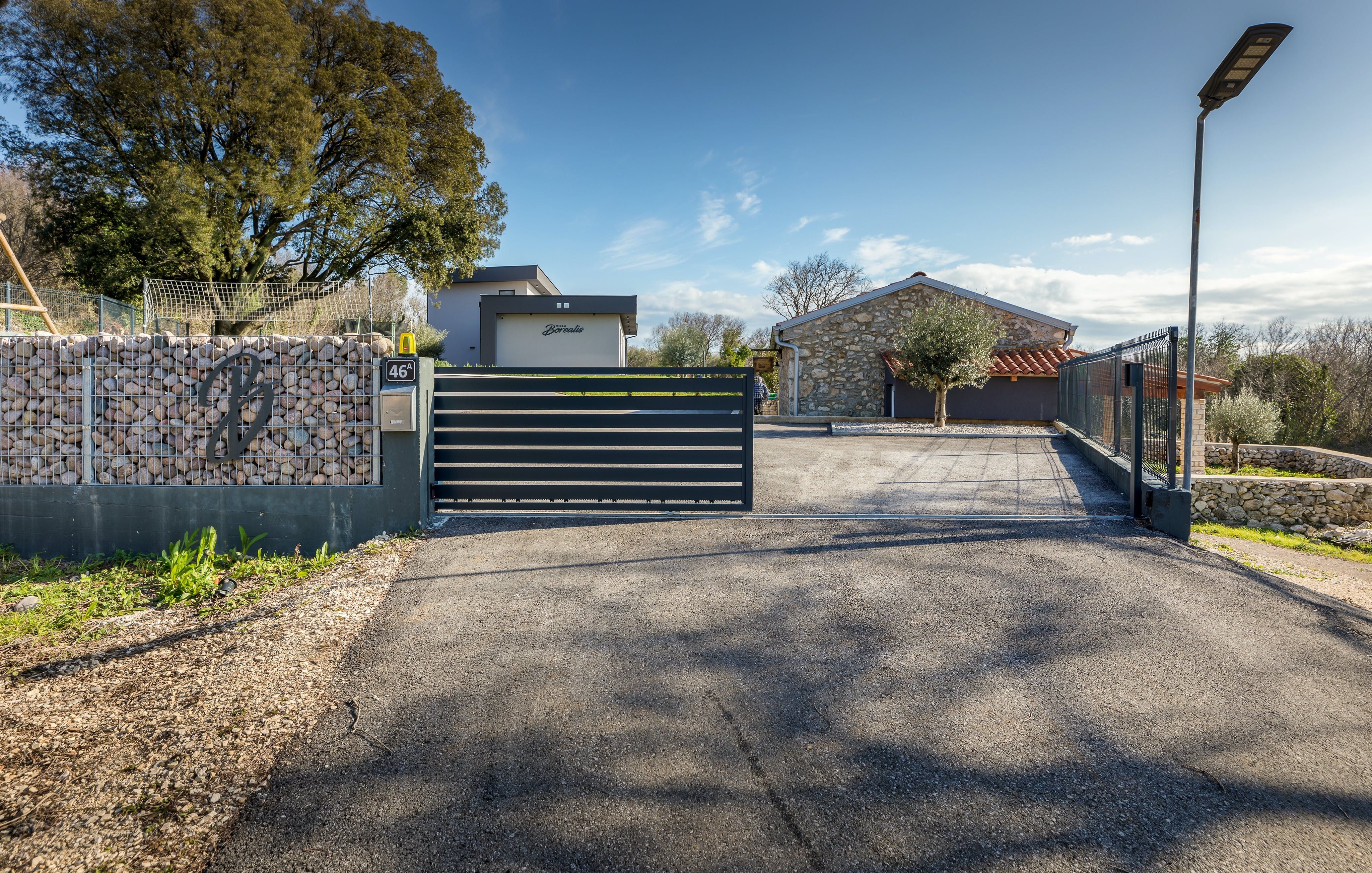 This luxurious villa is nestled on a hillside surrounded by lush greenery and old trees, offering stunning views of the surrounding landscape. The 15-meter pool, which can be heated upon request, is perfect for a refreshing swim or relaxing on the adjacent sun deck with comfortable sunbeds and shady umbrellas. The covered terrace features a dining table, two cosy lounges, and a gas grill, while the stone outhouse offers a seating area, brick barbecue, small tavern, and billiard table for an enjoyable end to the day. The open-plan living and dining area is elegantly designed with attention to detail and ample seating for all guests at the large dining table. The fully equipped kitchen leaves nothing to be desired. This six-bedroom villa on two floors is fully air-conditioned with each room having its own chic en suite bathroom and TV. Three bedrooms on the upper floor offer access to the balcony with a lounge area boasting magnificent views. Guests can also enjoy the wellness amenities of a sauna and Jacuzzi. This property is a glamorous complete package of not everyday amenities.