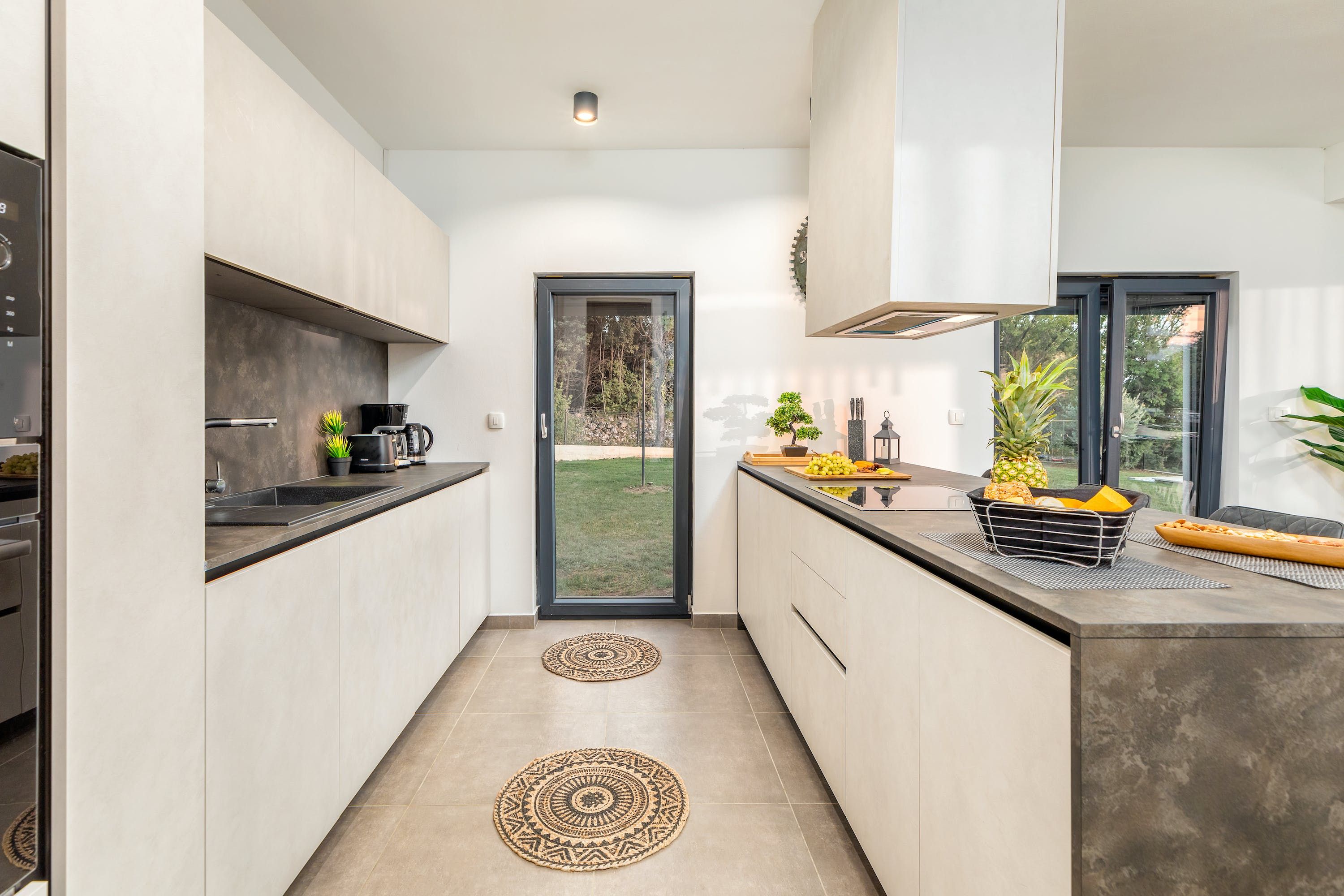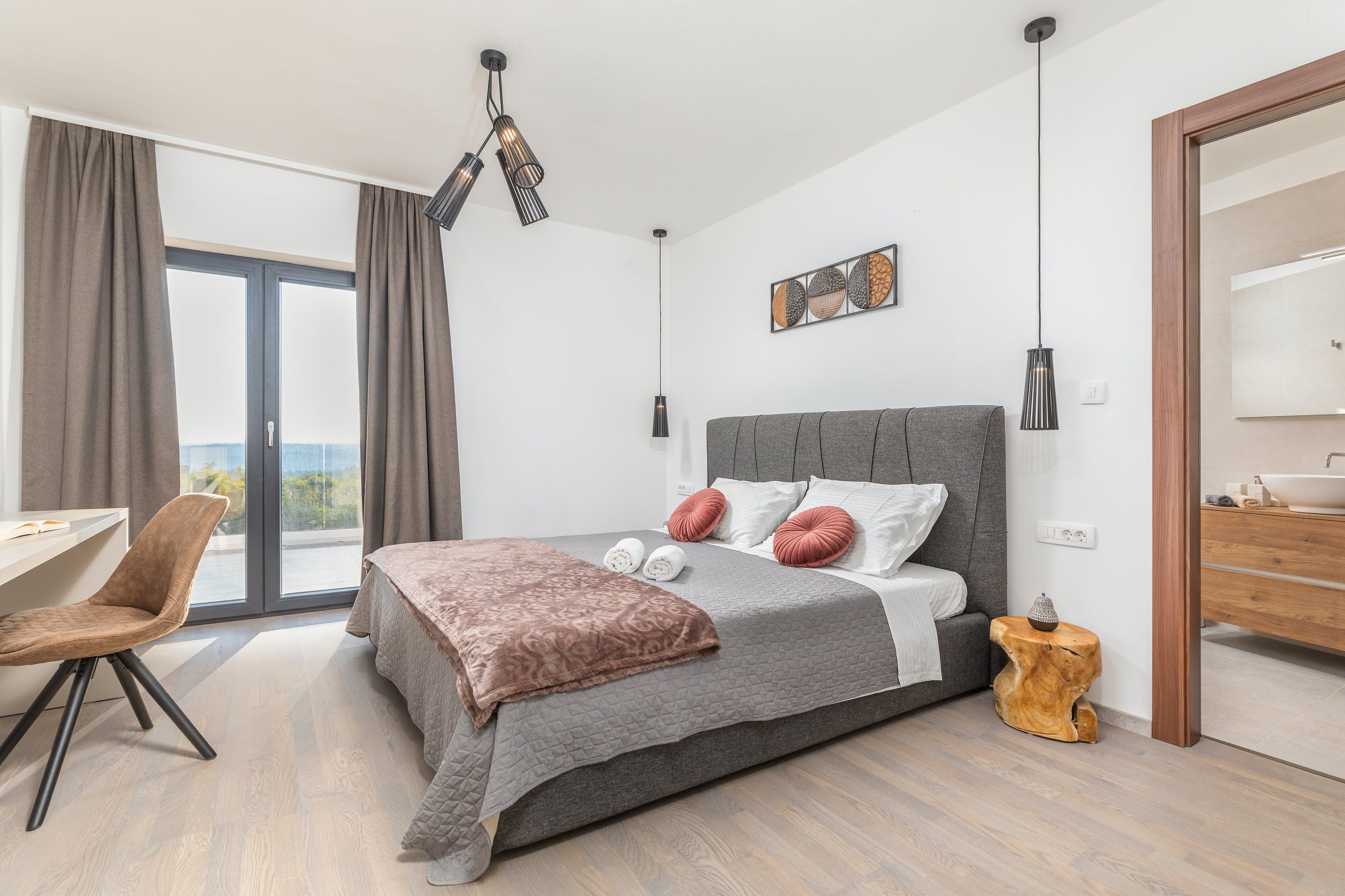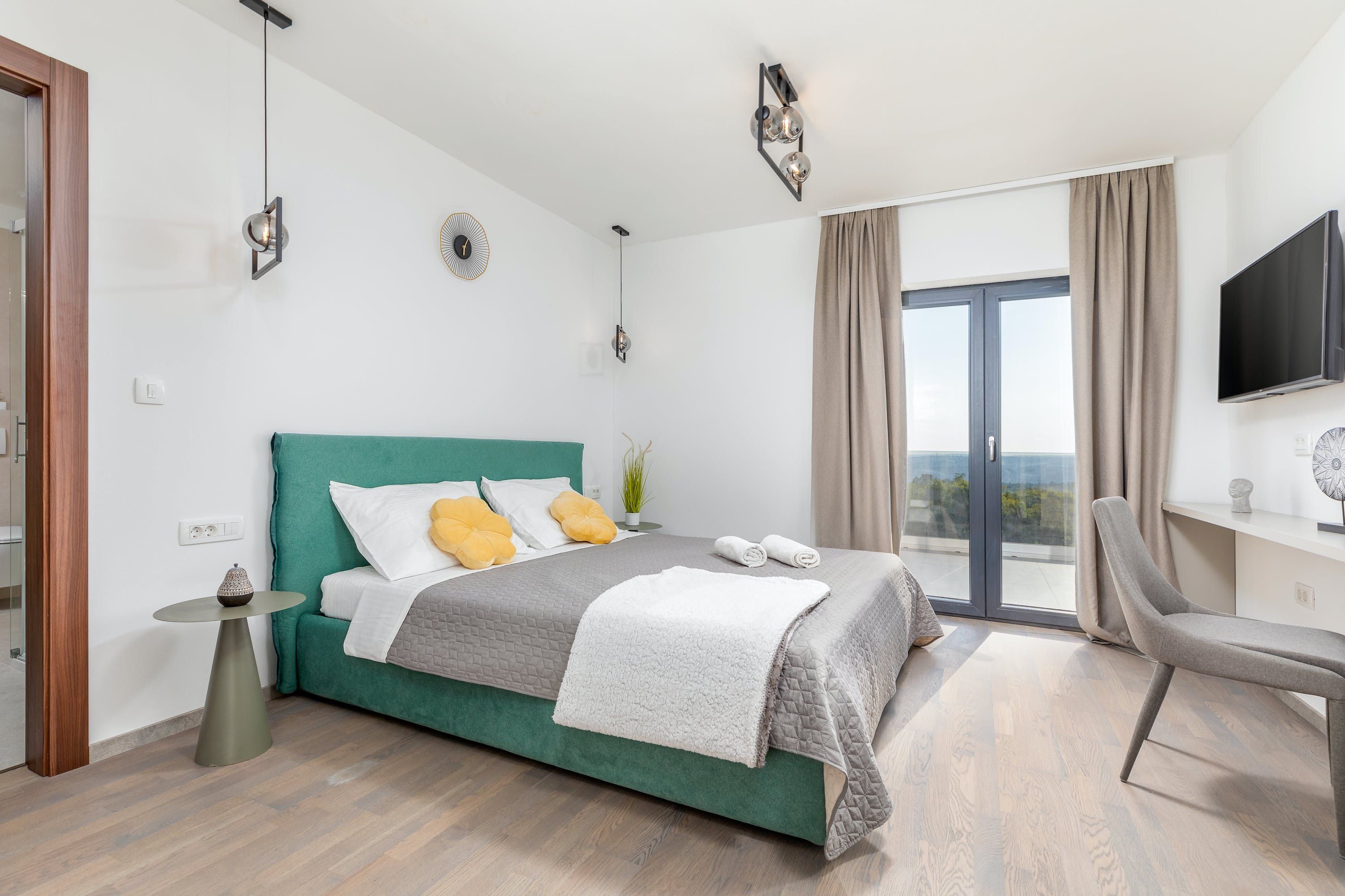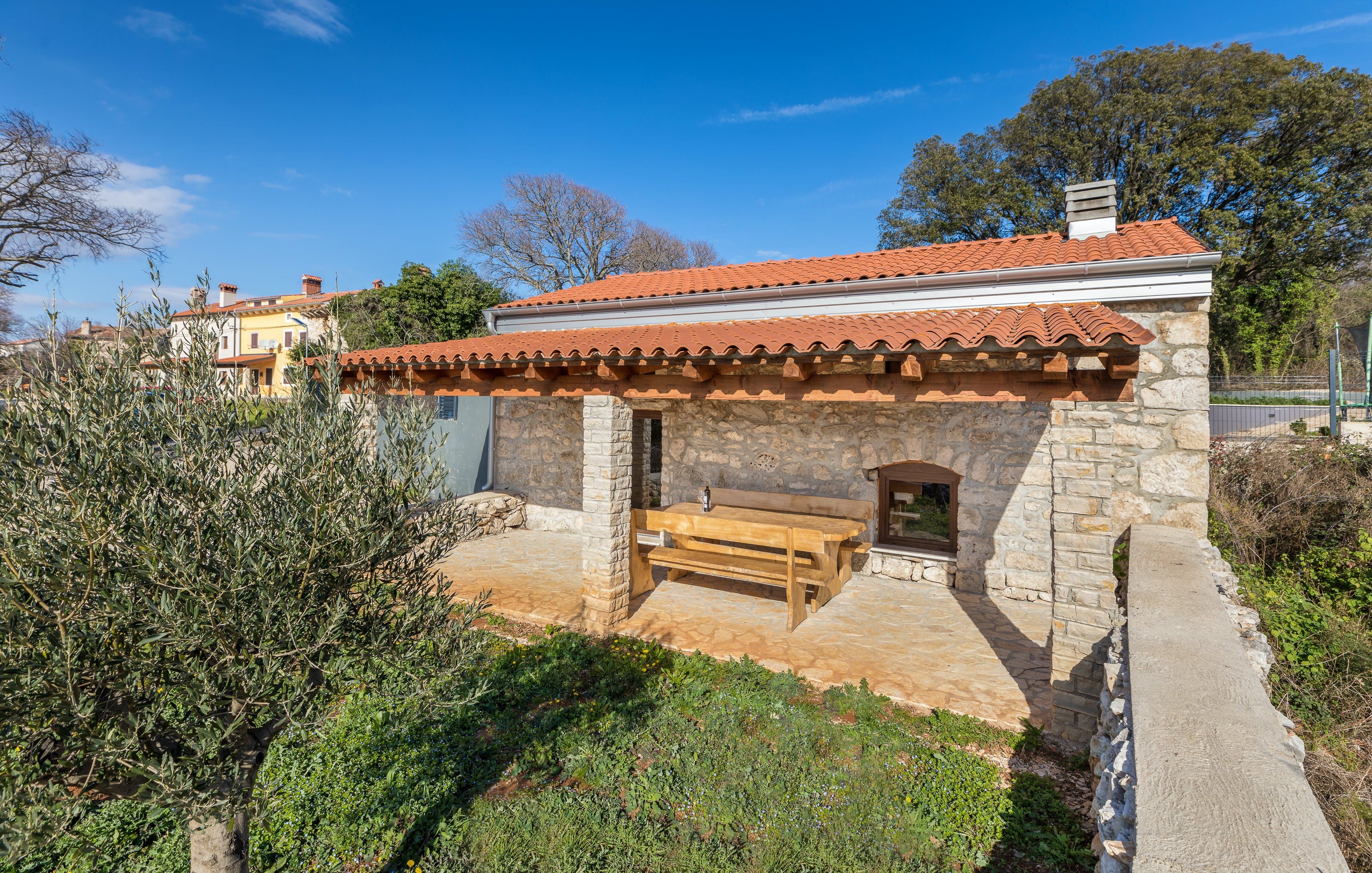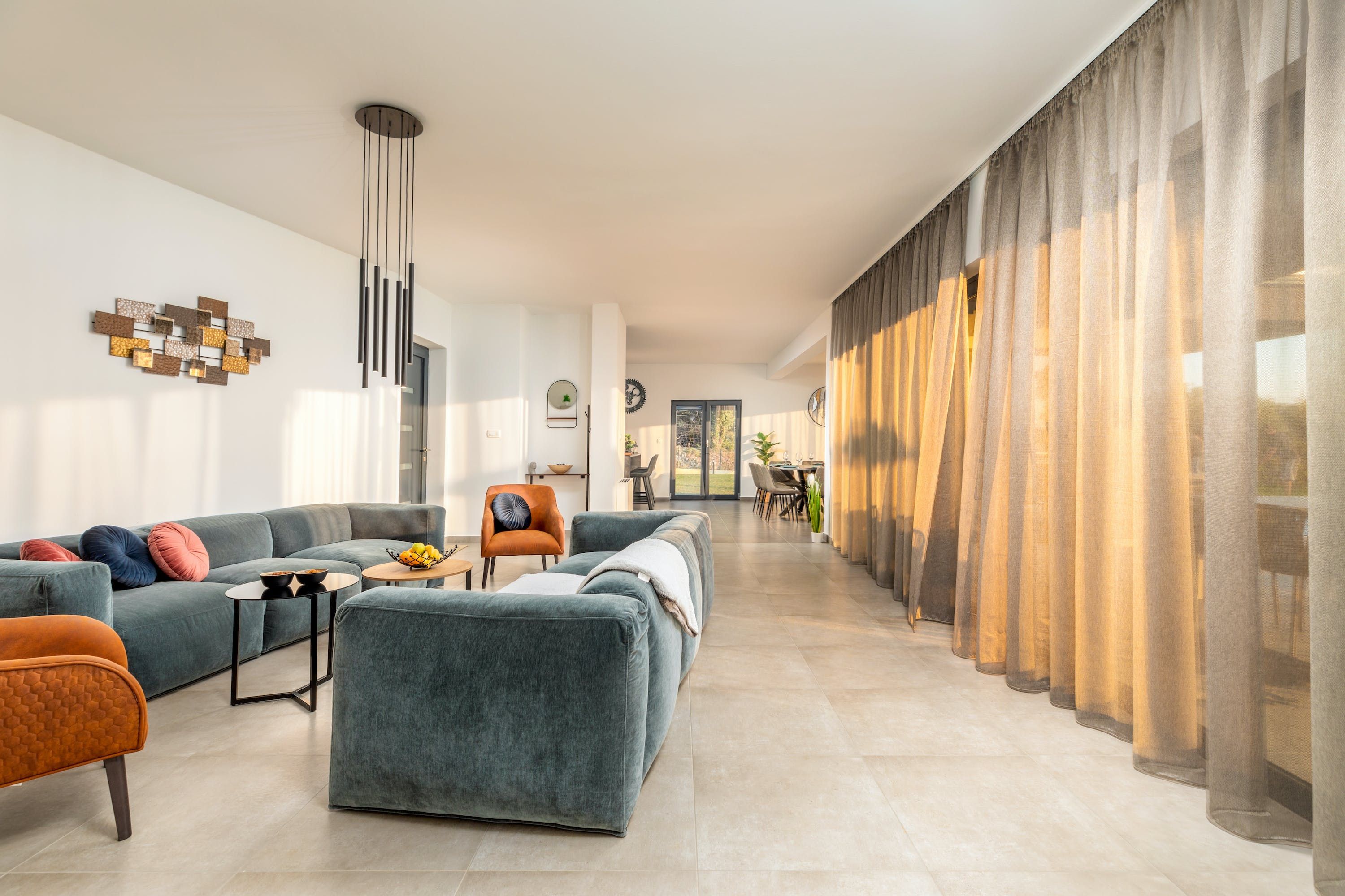 This luxurious villa is nestled on a hillside surrounded by lush greenery and old trees, offering stunning views of the surrounding landscape. The 15-meter pool, which can be heated upon request, is perfect for a refreshing swim or relaxing on the adjacent sun deck with comfortable sunbeds and shady umbrellas. The covered terrace features a dining table, two cosy lounges, and a gas grill, while the stone outhouse offers a seating area, brick barbecue, small tavern, and billiard table for an enjoyable end to the day. The open-plan living and dining area is elegantly designed with attention to detail and ample seating for all guests at the large dining table. The fully equipped kitchen leaves nothing to be desired. This six-bedroom villa on two floors is fully air-conditioned with each room having its own chic en suite bathroom and TV. Three bedrooms on the upper floor offer access to the balcony with a lounge area boasting magnificent views. Guests can also enjoy the wellness amenities of a sauna and Jacuzzi. This property is a glamorous complete package of not everyday amenities.