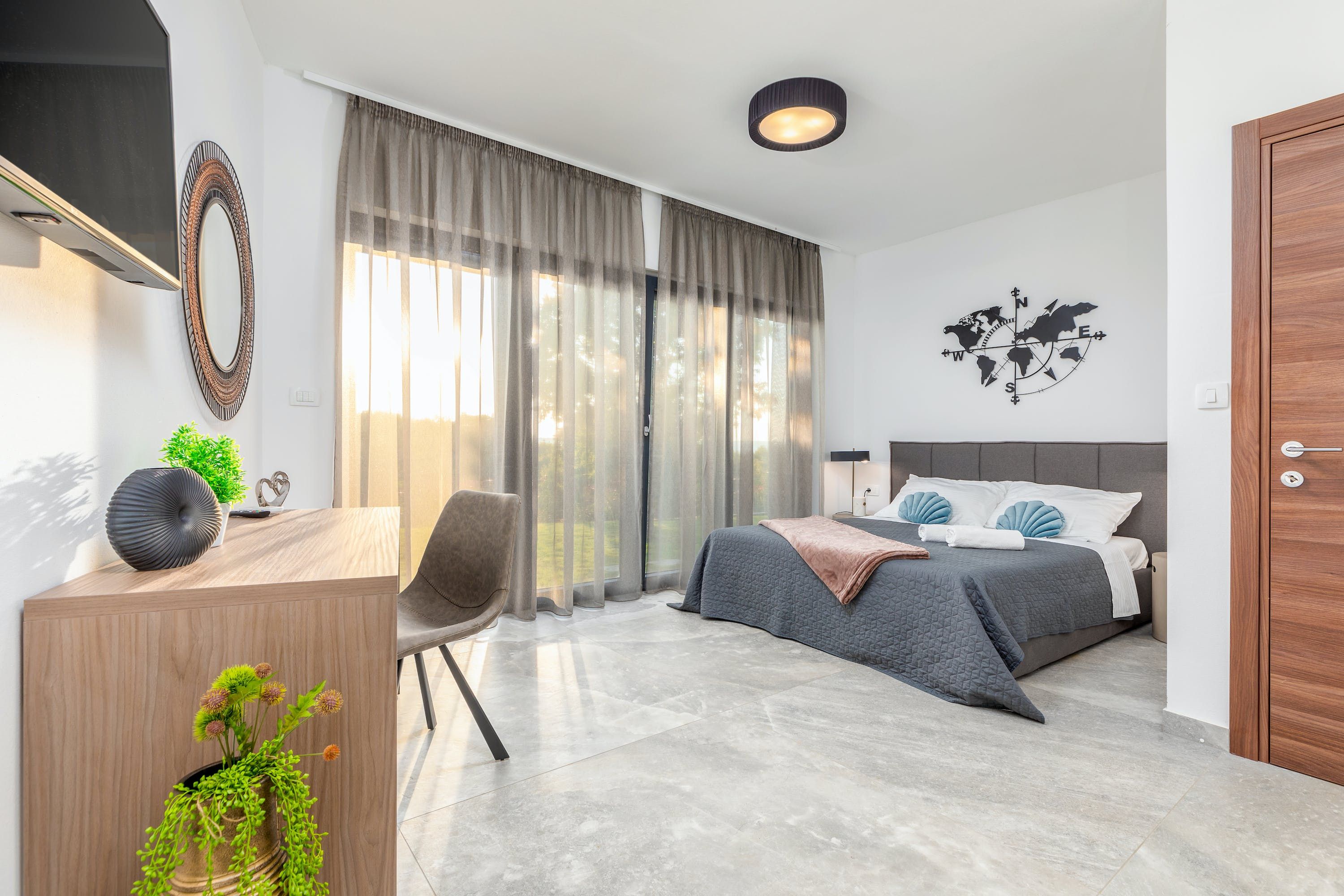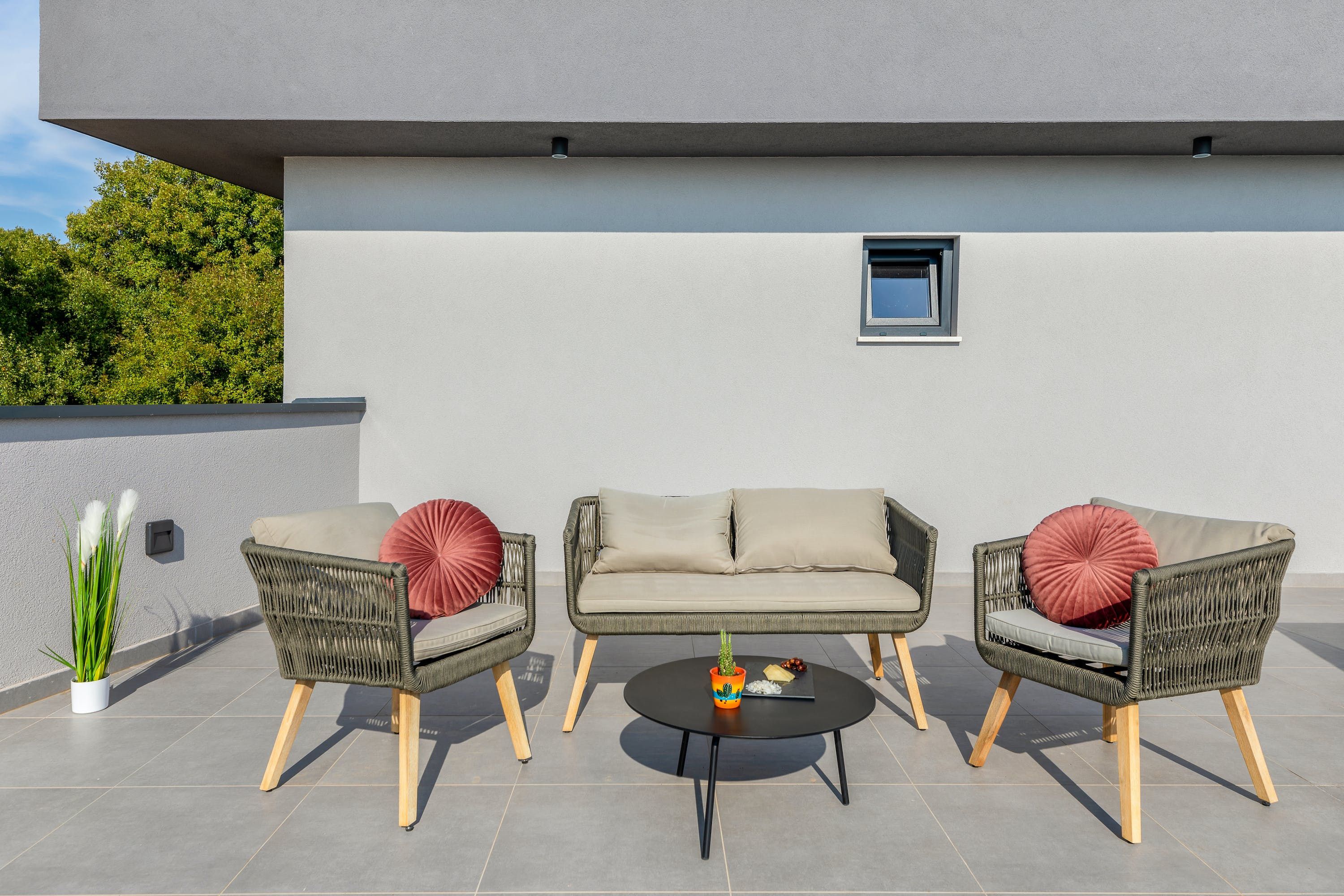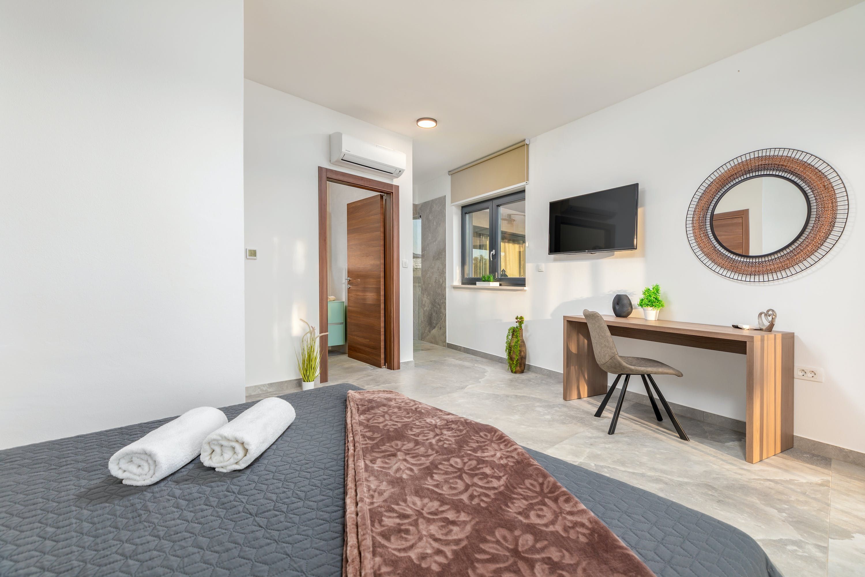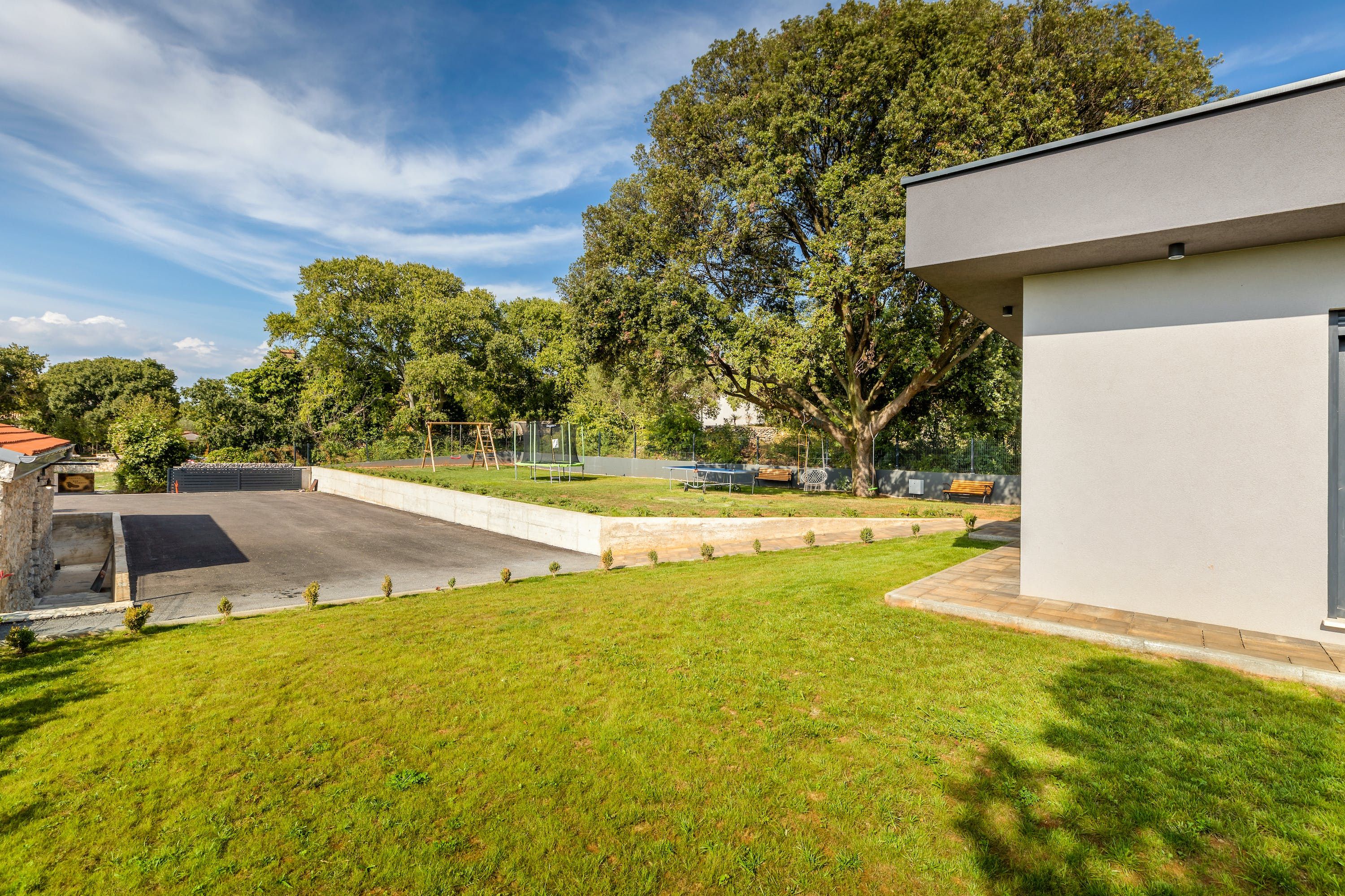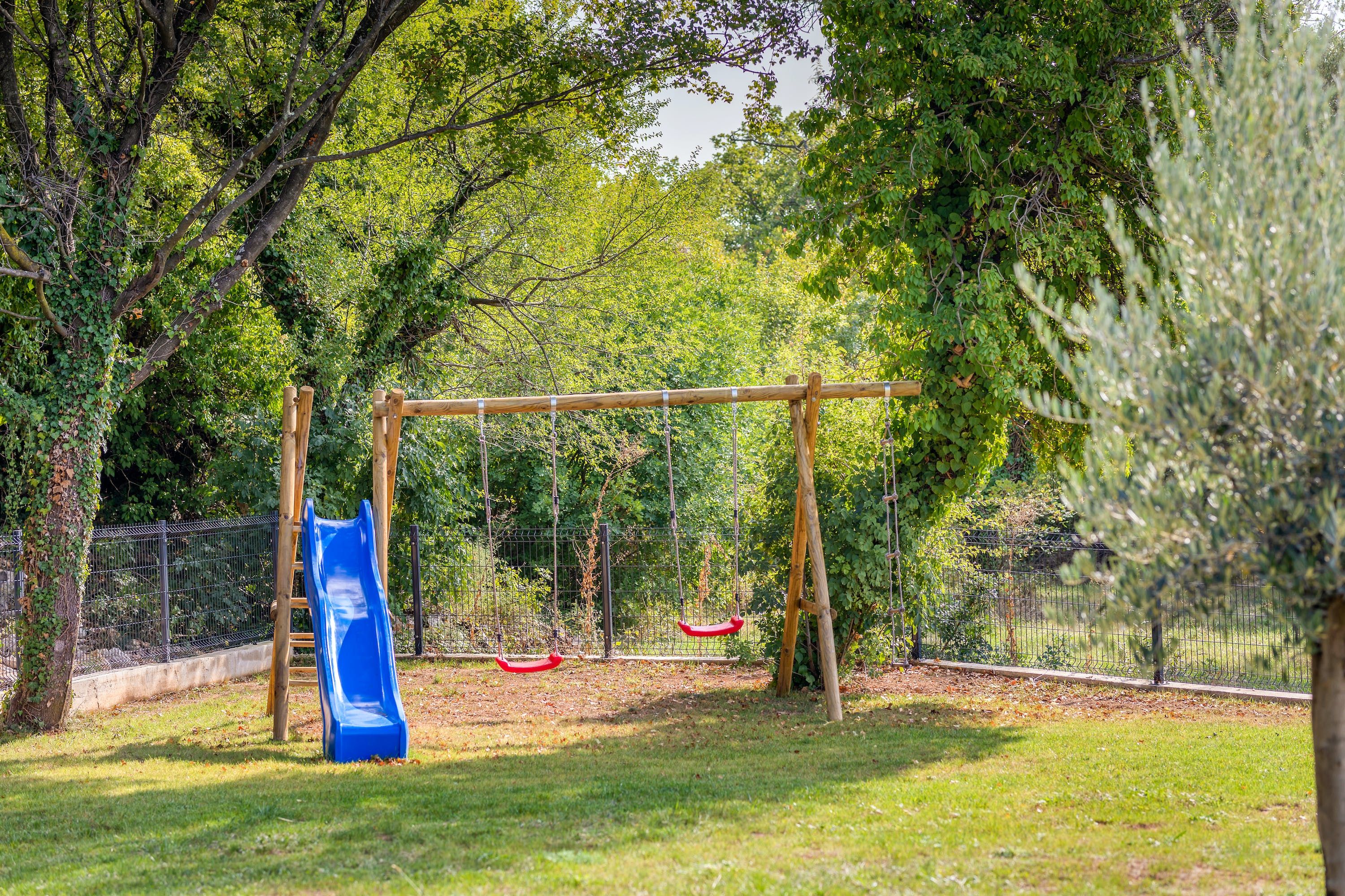 This luxurious villa is nestled on a hillside surrounded by lush greenery and old trees, offering stunning views of the surrounding landscape. The 15-meter pool, which can be heated upon request, is perfect for a refreshing swim or relaxing on the adjacent sun deck with comfortable sunbeds and shady umbrellas. The covered terrace features a dining table, two cosy lounges, and a gas grill, while the stone outhouse offers a seating area, brick barbecue, small tavern, and billiard table for an enjoyable end to the day. The open-plan living and dining area is elegantly designed with attention to detail and ample seating for all guests at the large dining table. The fully equipped kitchen leaves nothing to be desired. This six-bedroom villa on two floors is fully air-conditioned with each room having its own chic en suite bathroom and TV. Three bedrooms on the upper floor offer access to the balcony with a lounge area boasting magnificent views. Guests can also enjoy the wellness amenities of a sauna and Jacuzzi. This property is a glamorous complete package of not everyday amenities.