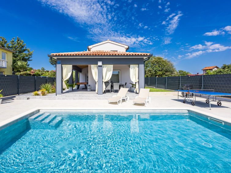 4-room villa 140 m2 on 2 levels. Beautiful and stylish furnishings: living/dining room with satellite TV (flat screen), air conditioning. Exit to the terrace, to the swimming pool. 1 room with 1 french bed (160 cm, length 200 cm), satellite TV (flat screen), air conditioning. Open kitchen (oven, dishwasher, 4 ceramic glass hob hotplates, toaster, kettle, microwave, freezer, electric coffee machine).