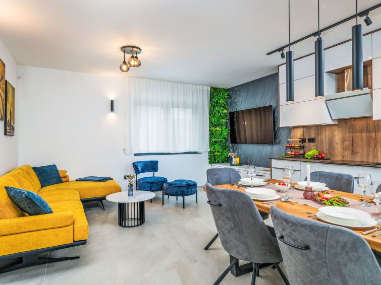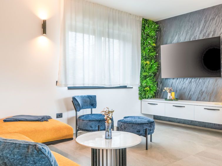 4-room semi-detached house 135 m2 on 2 levels. Luxurious and tasteful furnishings: living/dining room with satellite TV (flat screen), air conditioning. Exit to the terrace, to the swimming pool. 1 room with 1 french bed (180 cm, length 210 cm), satellite TV (flat screen), air conditioning.