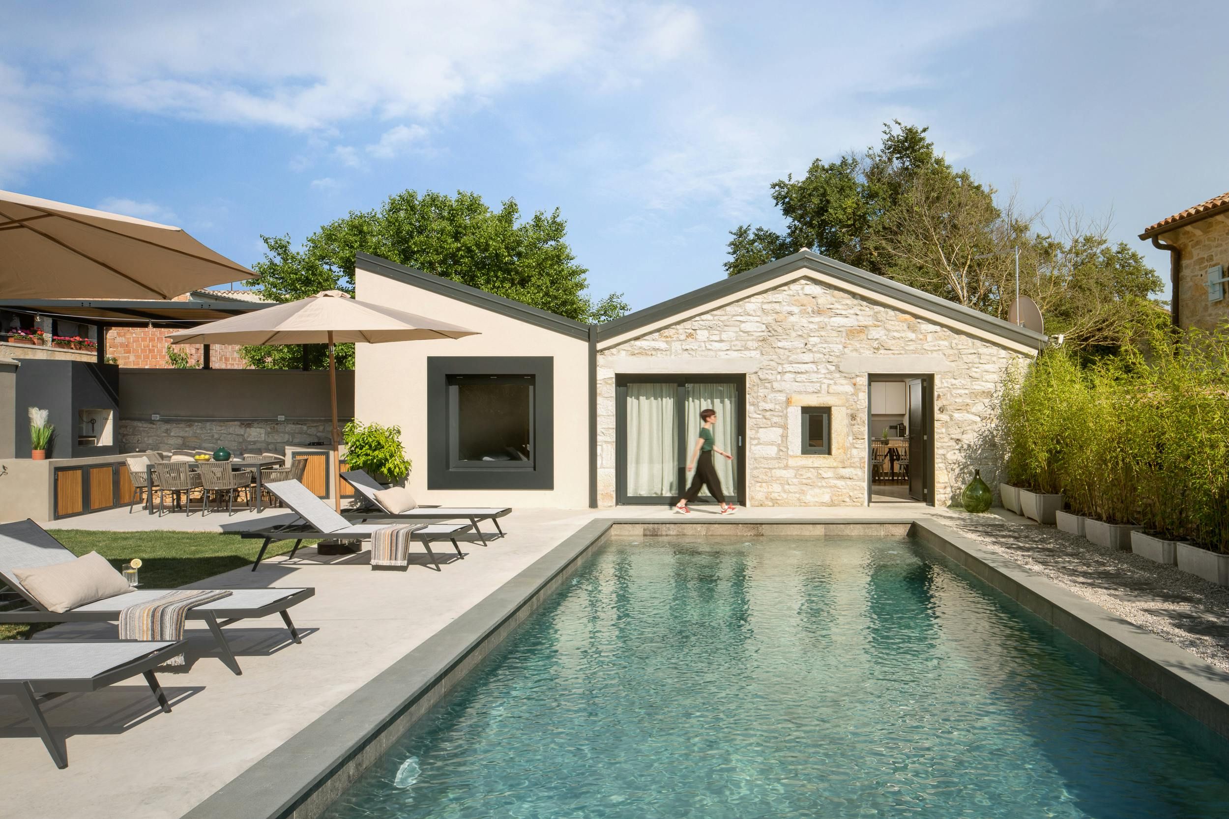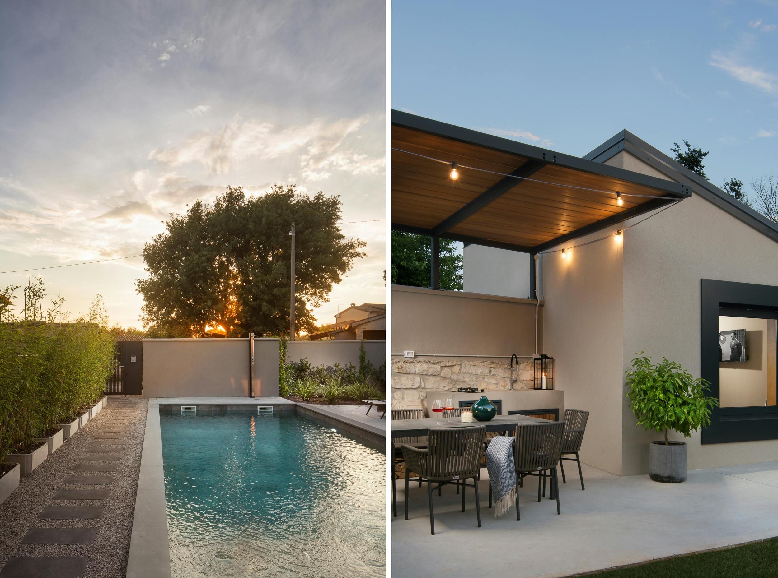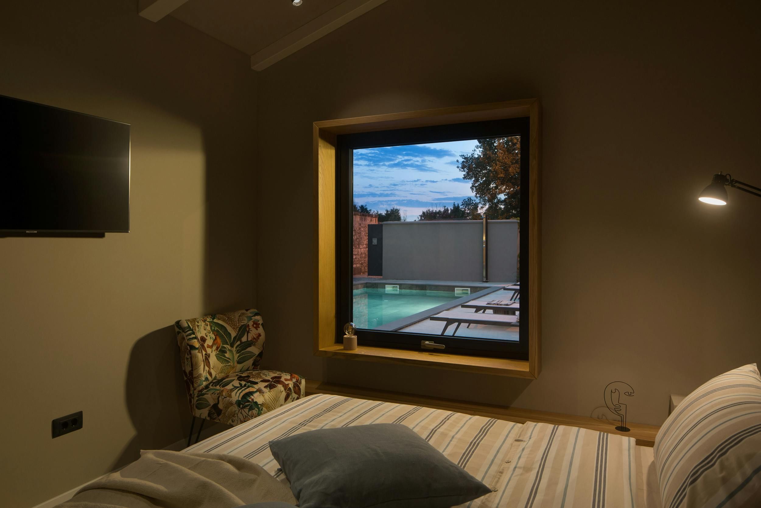 This home is a cosy two-person holiday rental located near the sea. The villa is situated on a 400 m² plot that offers complete privacy and a beautiful aesthetic design. The outdoor area features covered and open terraces with sunbeds, dining table, and a brick charcoal grill for self-catering under the open sky. The 48 m² pool is easily accessible via a staircase and pool towels are provided. The interior of the villa is modern and aesthetically pleasing, with a homely character and carefully selected accessories. The living area has an open concept with floor-to-ceiling windows that open to the pool terrace. The kitchen is well-equipped and integrated into the living area. The bedroom has air conditioning and TV for ultimate relaxation, while the stylish bathroom features a walk-in shower. The home is perfect for couples seeking privacy and comfort in a beautiful location.