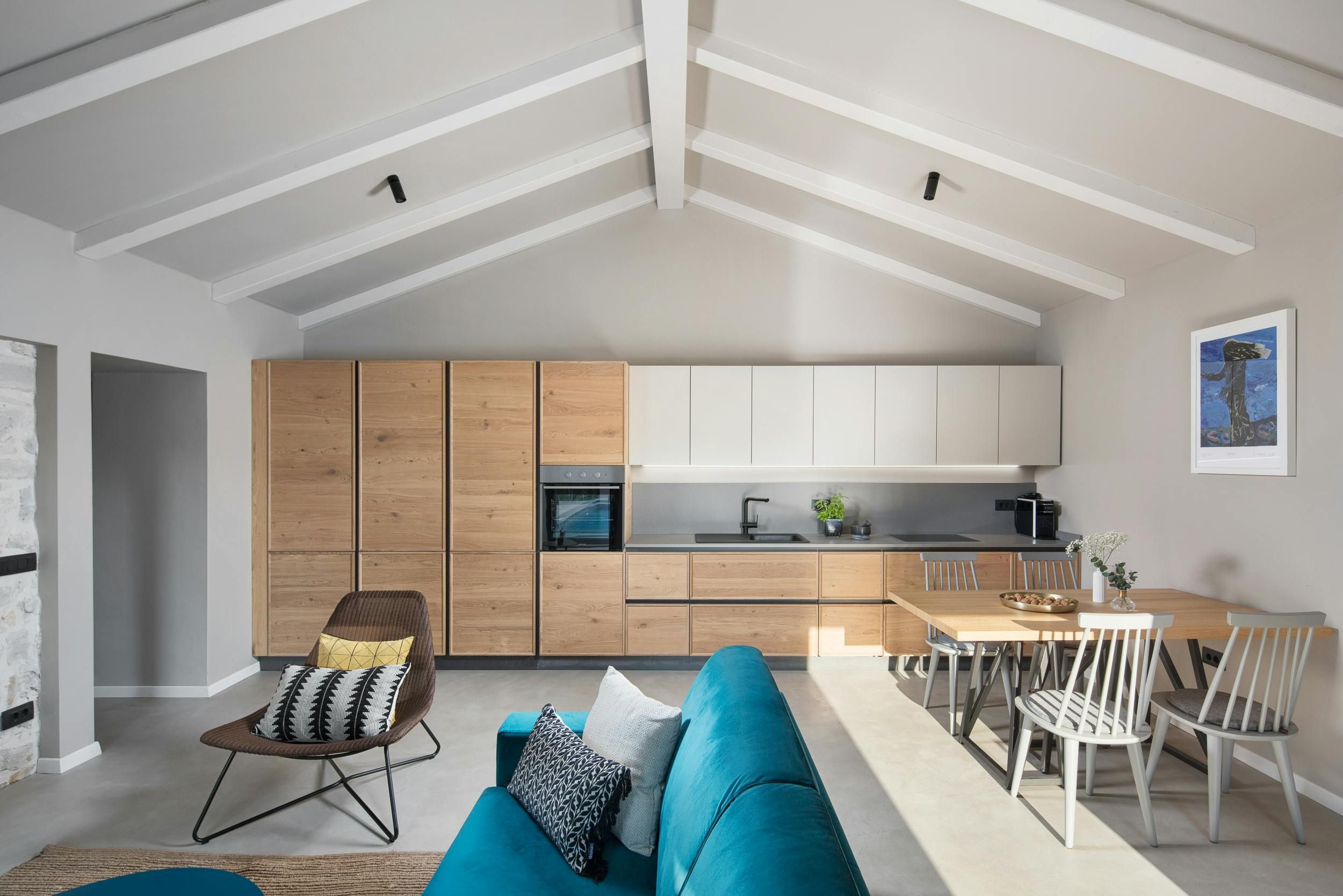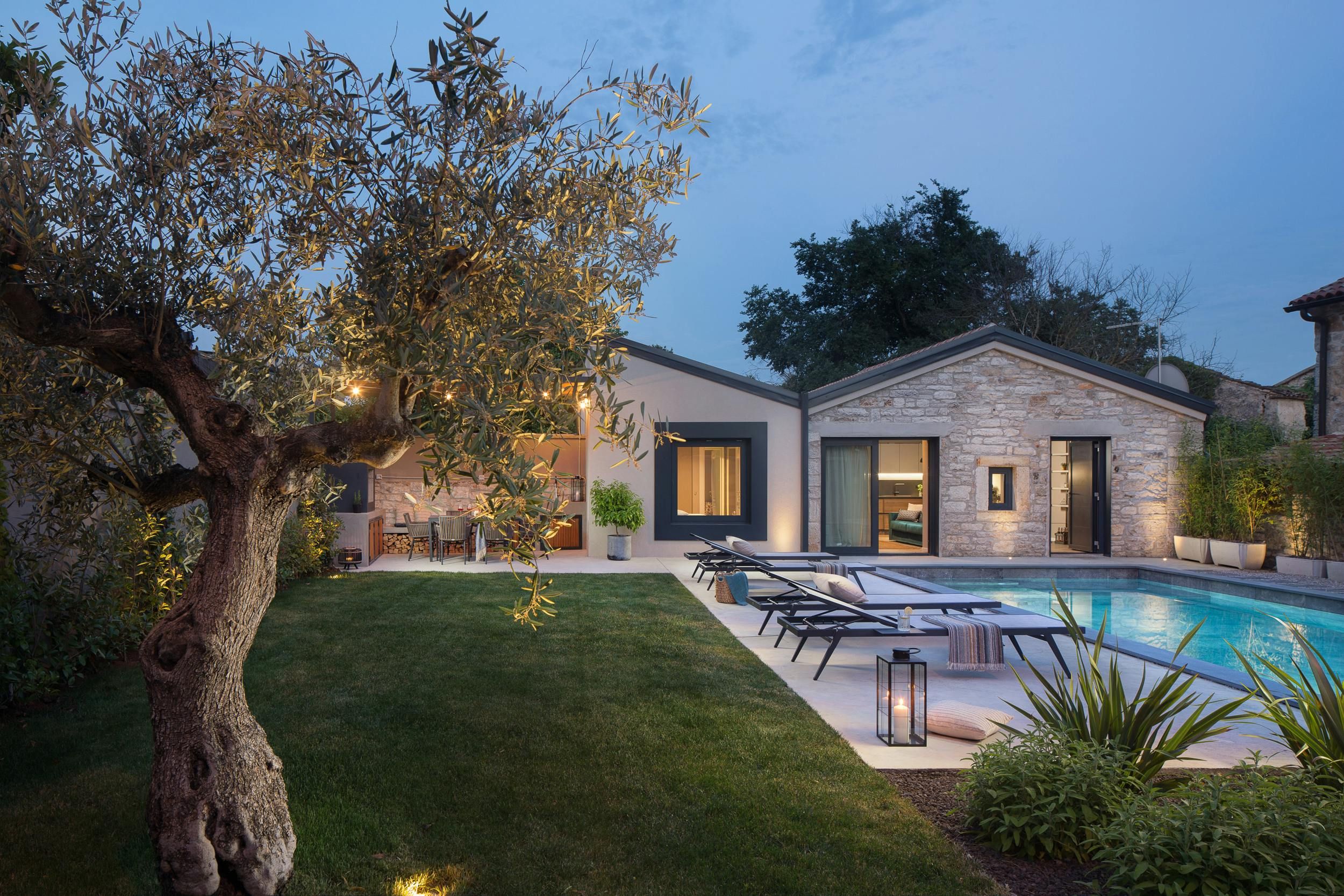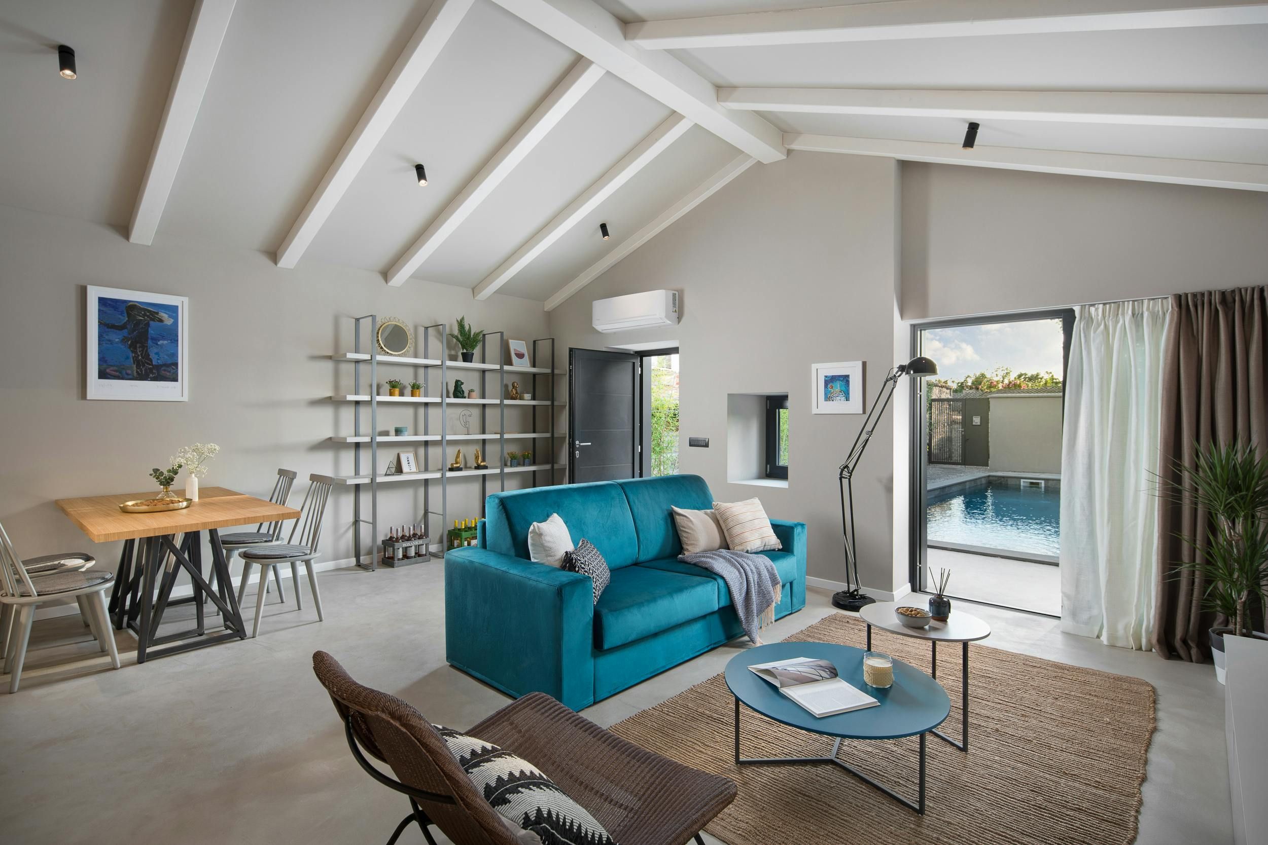 This home is a cosy two-person holiday rental located near the sea. The villa is situated on a 400 m² plot that offers complete privacy and a beautiful aesthetic design. The outdoor area features covered and open terraces with sunbeds, dining table, and a brick charcoal grill for self-catering under the open sky. The 48 m² pool is easily accessible via a staircase and pool towels are provided. The interior of the villa is modern and aesthetically pleasing, with a homely character and carefully selected accessories. The living area has an open concept with floor-to-ceiling windows that open to the pool terrace. The kitchen is well-equipped and integrated into the living area. The bedroom has air conditioning and TV for ultimate relaxation, while the stylish bathroom features a walk-in shower. The home is perfect for couples seeking privacy and comfort in a beautiful location.