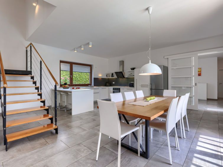 The house was perfect for us as a group of 7 people, it is connected to 3 other houses in a complex, but there is enough distance and hedges so that you don't disturb each other. The house was very clean and in new condition. We particularly used the outdoor area with pool, loungers, charcoal and gas grill, perfect for the summer! Communication and service was very good (e.g. exchange of gas bottles, key handover). We recommend:)