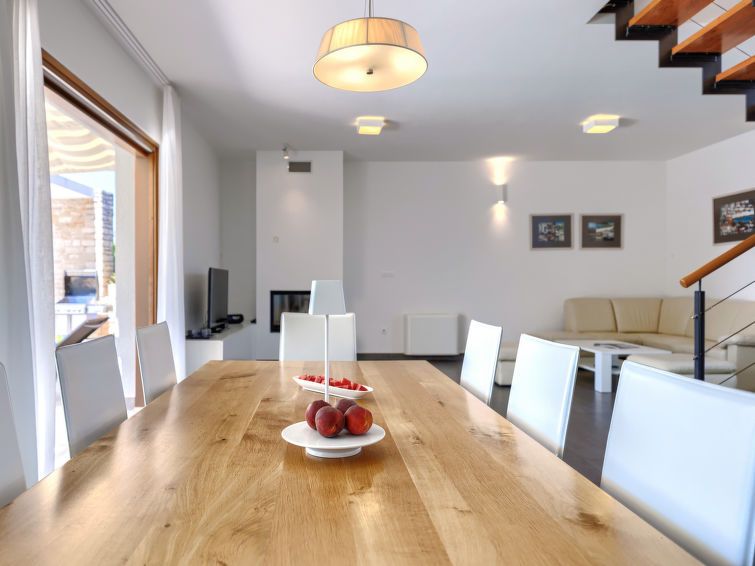 5-room villa 223 m2 on 2 levels. Beautiful furnishings: living/dining room 66 m2 with open-hearth fireplace (only for decoration), satellite TV (flat screen), hi-fi system, DVD and air conditioning. Exit to the terrace, to the swimming pool. 1 room with 1 french bed (180 cm, length 200 cm), bath/shower/bidet/WC and air conditioning.
