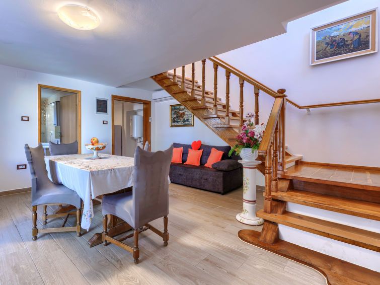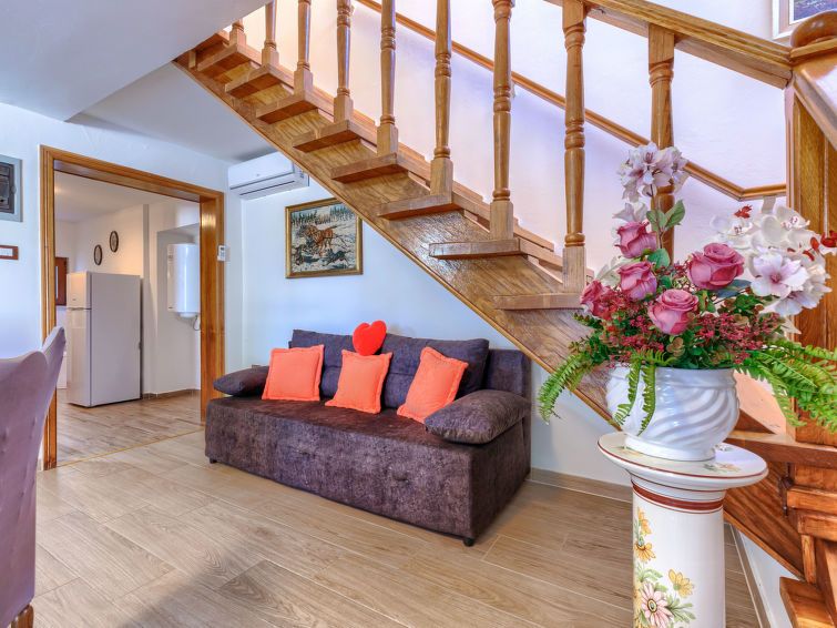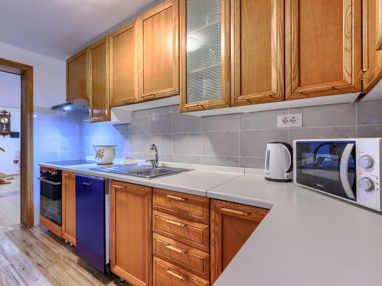 3-room semi-detached house 70 m2 on 2 levels. Living/dining room with 1 sofabed (140 cm, length 200 cm), satellite TV (flat screen), air conditioning. Exit to the terrace. Open kitchen (oven, dishwasher, 4 ceramic glass hob hotplates, kettle, microwave, freezer, electric coffee machine).