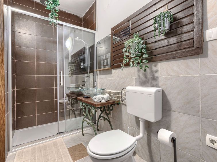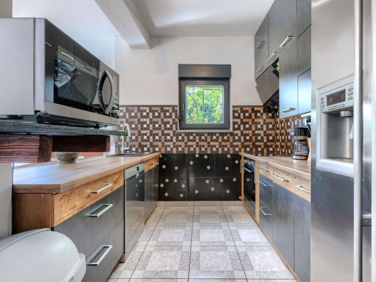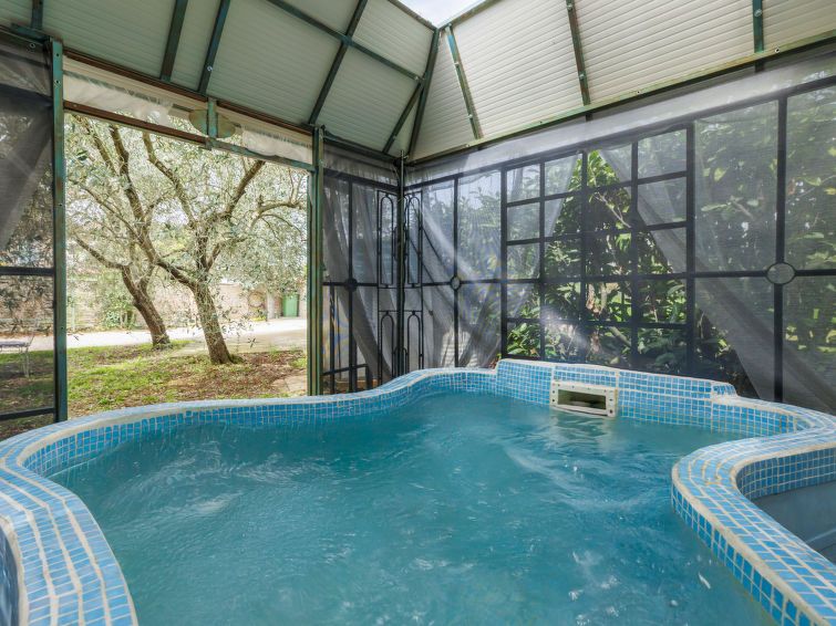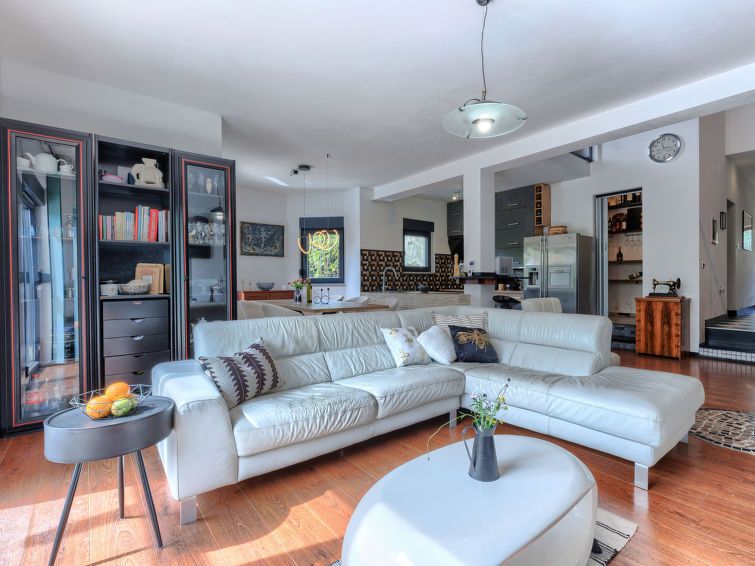 4-room house 180 m2. Tasteful furnishings: living/dining room with satellite TV. Exit to the garden, to the terrace, to the swimming pool. 1 room with 1 french bed (180 cm, length 200 cm), satellite TV and air conditioning. Exit to the garden. 1 room with 1 french bed (160 cm, length 200 cm), shower/WC, satellite TV and air conditioning.