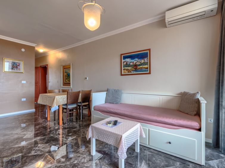"Pepe", 2-room apartment 40 m2, on the upper floor. Comfortable and cosy furnishings: living/dining room with 1 double sofabed (160 cm, length 200 cm), satellite TV. Exit to the terrace. 1 room with 1 french bed (160 cm, length 200 cm). Open kitchen (4 gas rings, kettle, freezer) with air conditioning.