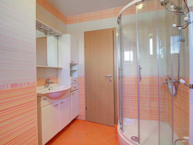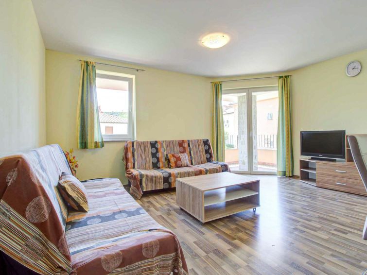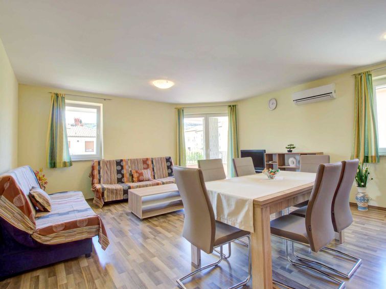 "Apartment Valdi", 3-room apartment 70 m2 on 1st floor. Simple furnishings: with 1 double sofabed and cable TV (flat screen). Exit to the balcony. 1 room with 1 double bed. Exit to the balcony. 1 room with 1 double bed. Open kitchen (oven, dishwasher, 4 ceramic glass hob hotplates, freezer) with dining table.