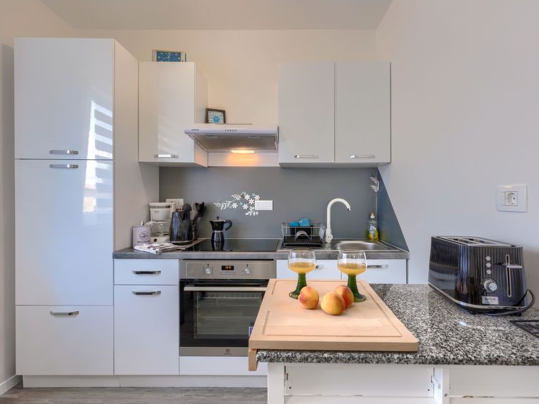 "Mary", 2-room apartment 28 m2 on 1st floor. Renovated in 2024, beautiful and cosy furnishings: living/dining room with satellite TV and air conditioning. 1 room with 1 french bed (160 cm, length 200 cm), TV. Open kitchen (oven, 4 ceramic glass hob hotplates, toaster, kettle, microwave, freezer, electric coffee machine).