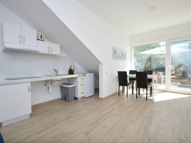 The apartment, which consists of a bedroom and combined kitchen/sofa bed, is suitable for two adults and one child. Everything is fresh and new, the pictures do it justice. Very quiet and peaceful area, but still close to everything. Perfect accommodation with a dog on the ground floor. Could wish for a small freezer and for the terrace to be tiled instead of carpeted.