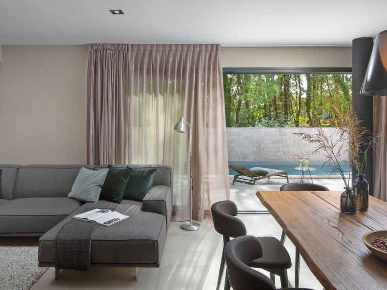 10-room villa 520 m2 on 4 levels. Comfortable and beautiful furnishings: living/dining room with open-hearth fireplace (only for decoration), kitchen corner and satellite TV (flat screen), air conditioning. Exit to the terrace. Living/dining room with open-hearth fireplace and satellite TV (flat screen), air conditioning.